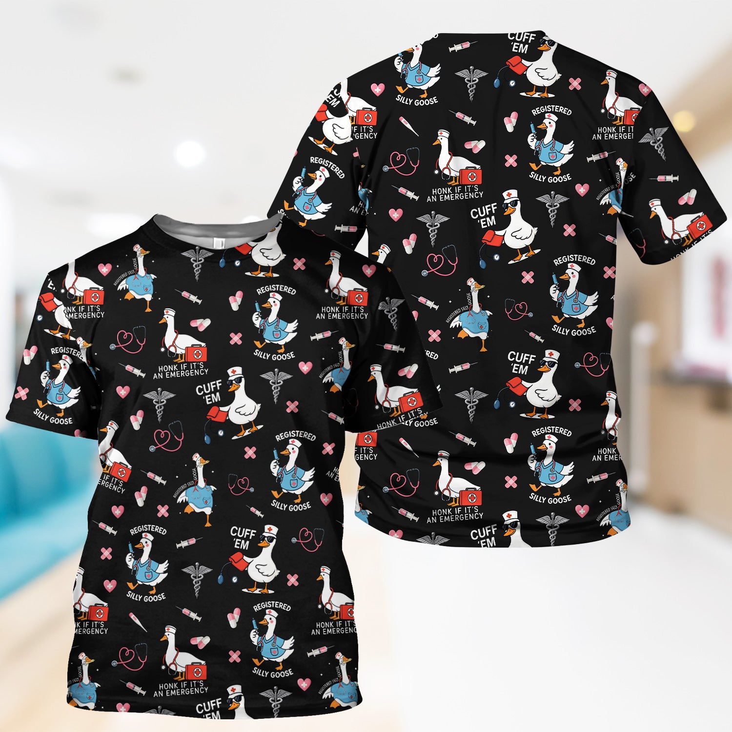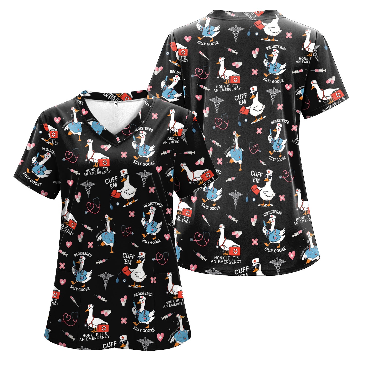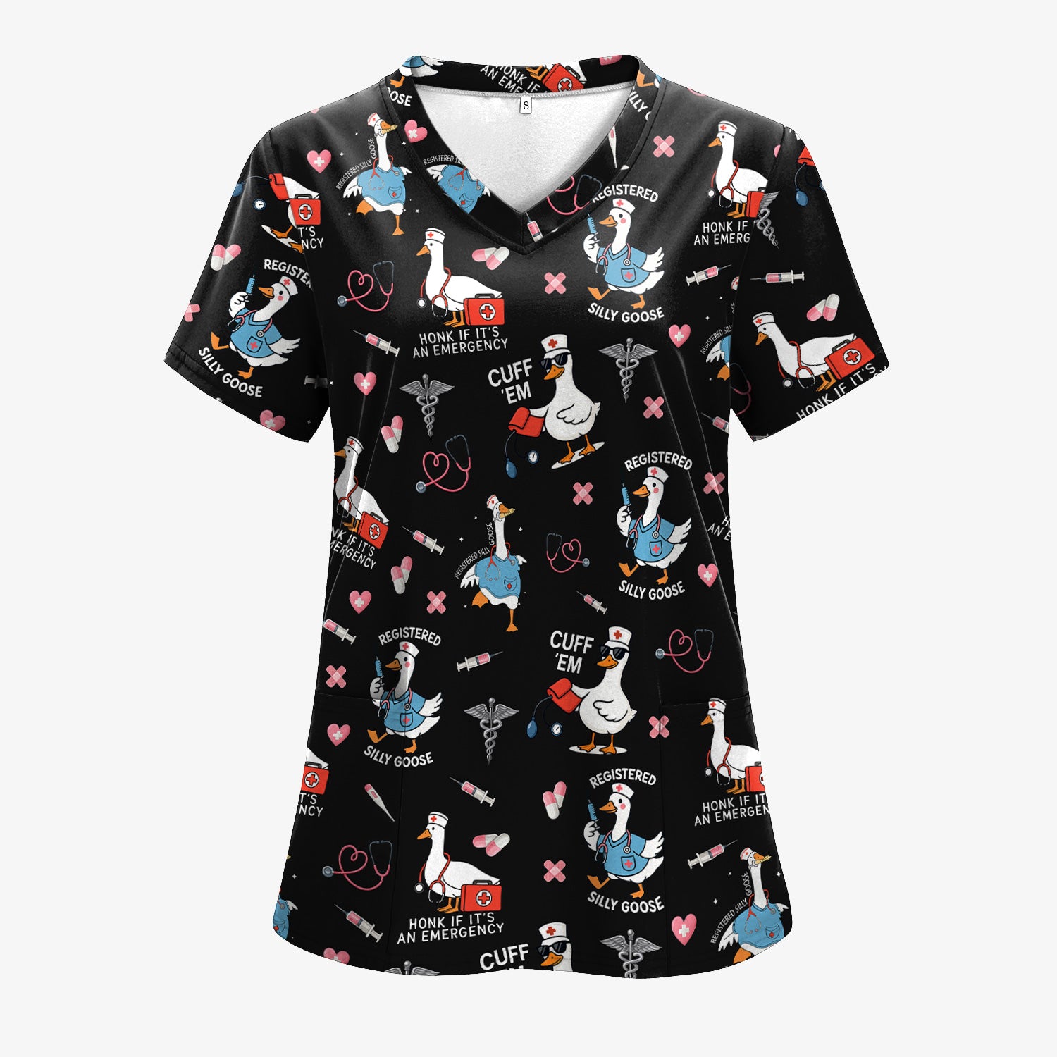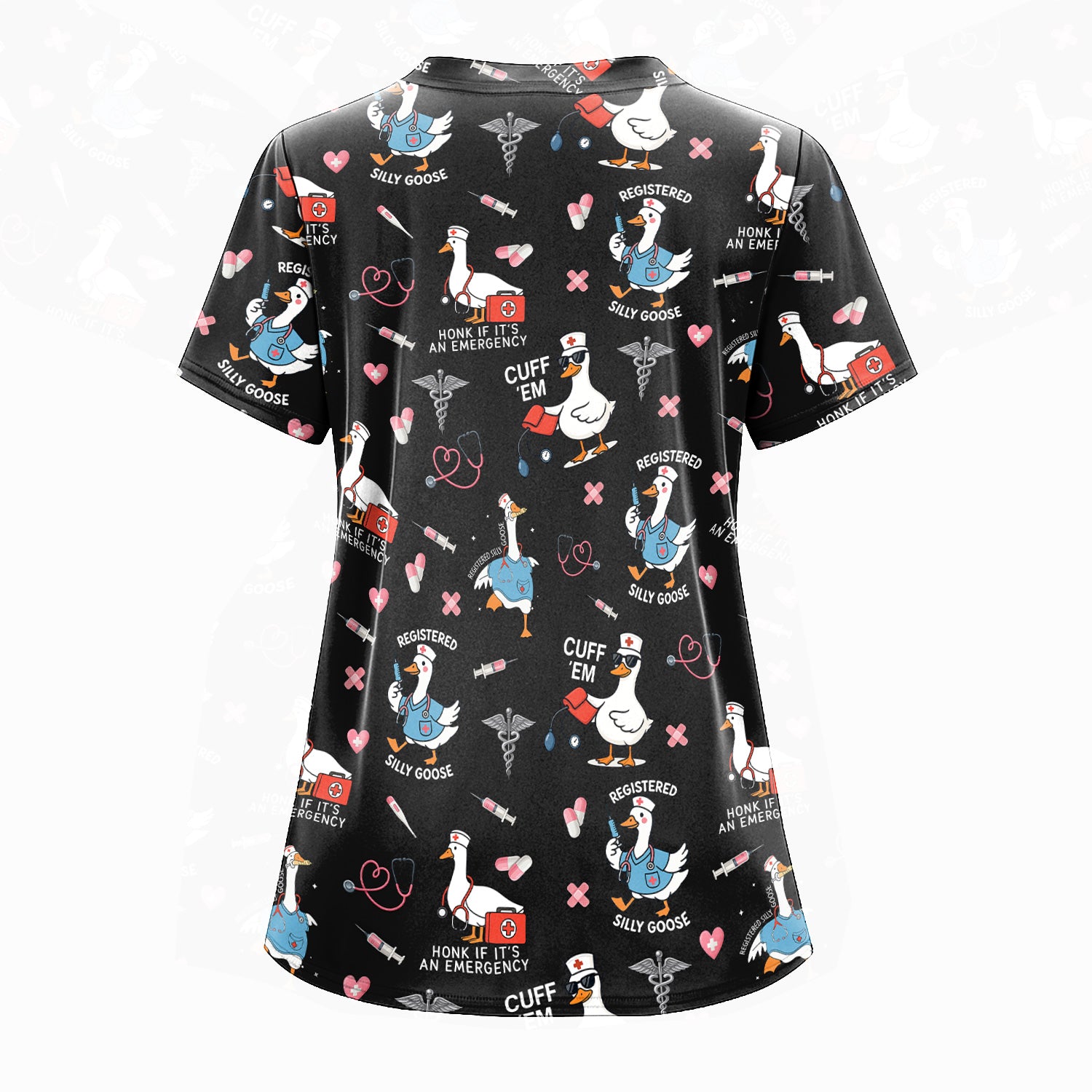 Goose Nurse Graphic T-Shirt for Women - Cute Medical Work Tee with Stethoscope & Heart Icons - Gift for RN, CNA, LPN