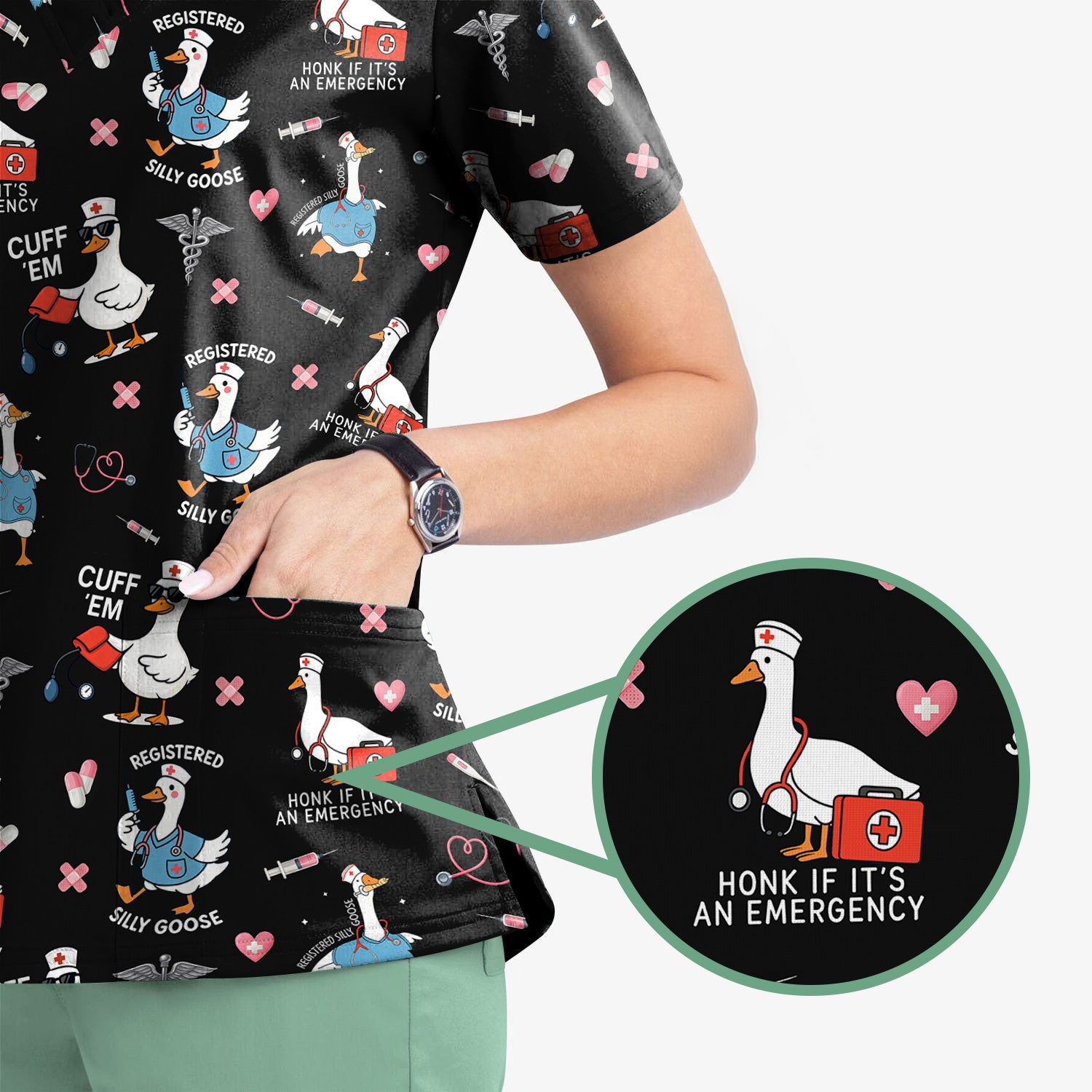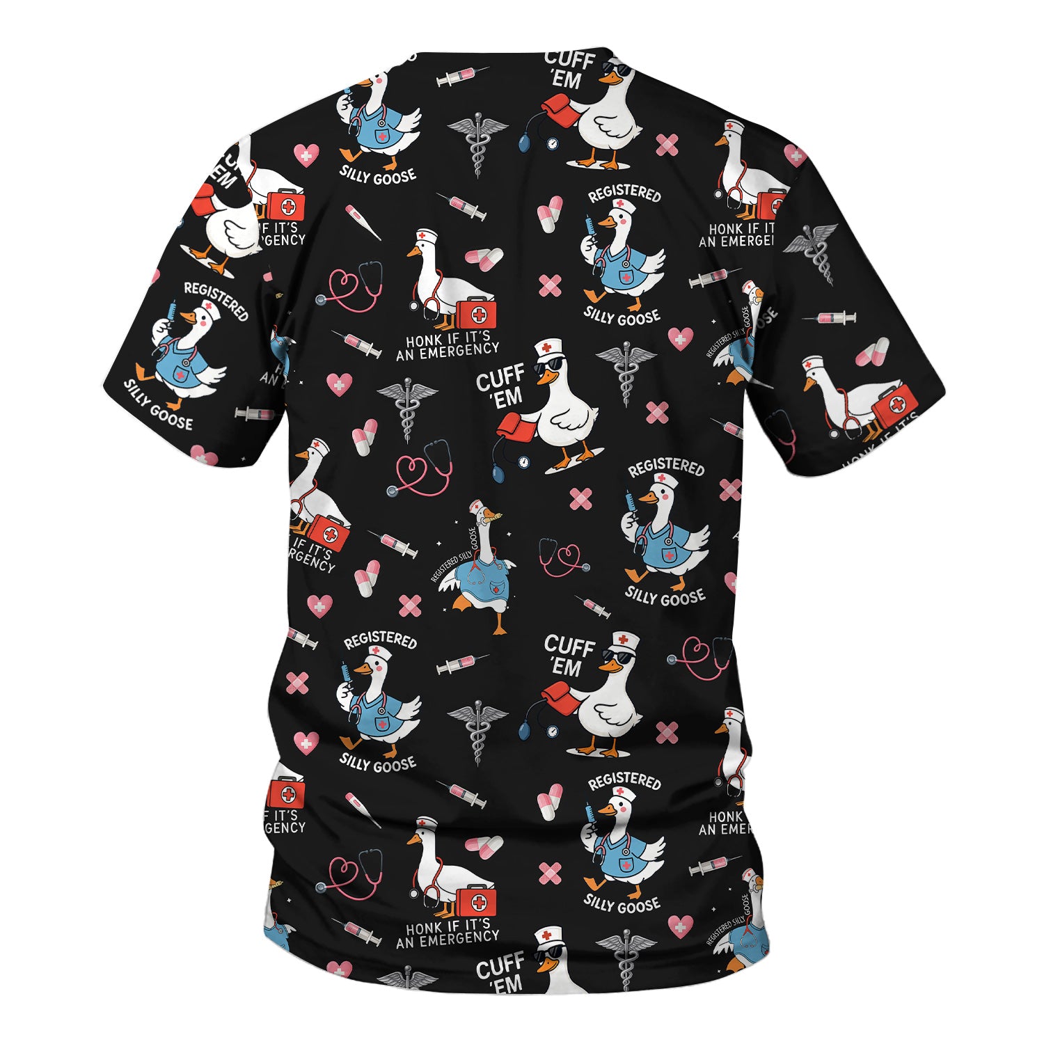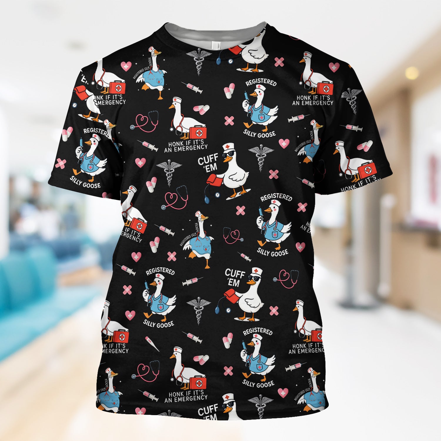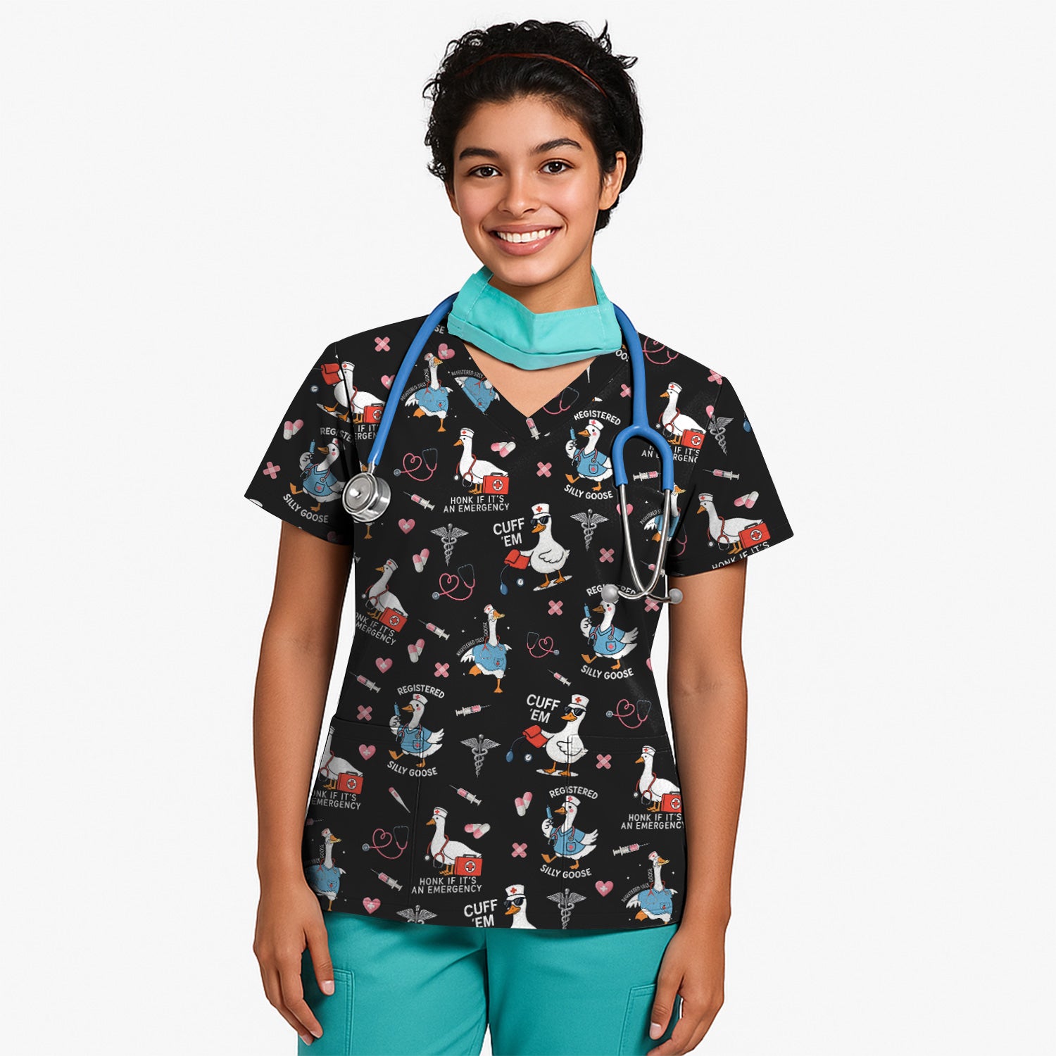 Goose Nurse Graphic T-Shirt for Women - Cute Medical Work Tee with Stethoscope & Heart Icons - Gift for RN, CNA, LPN