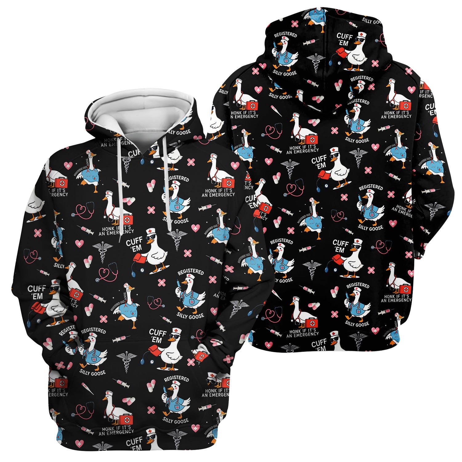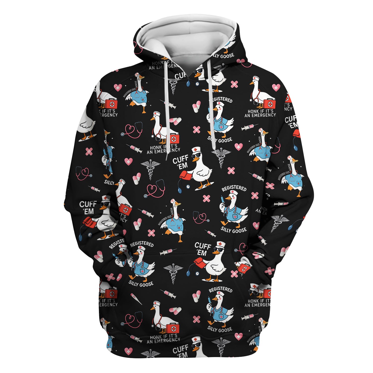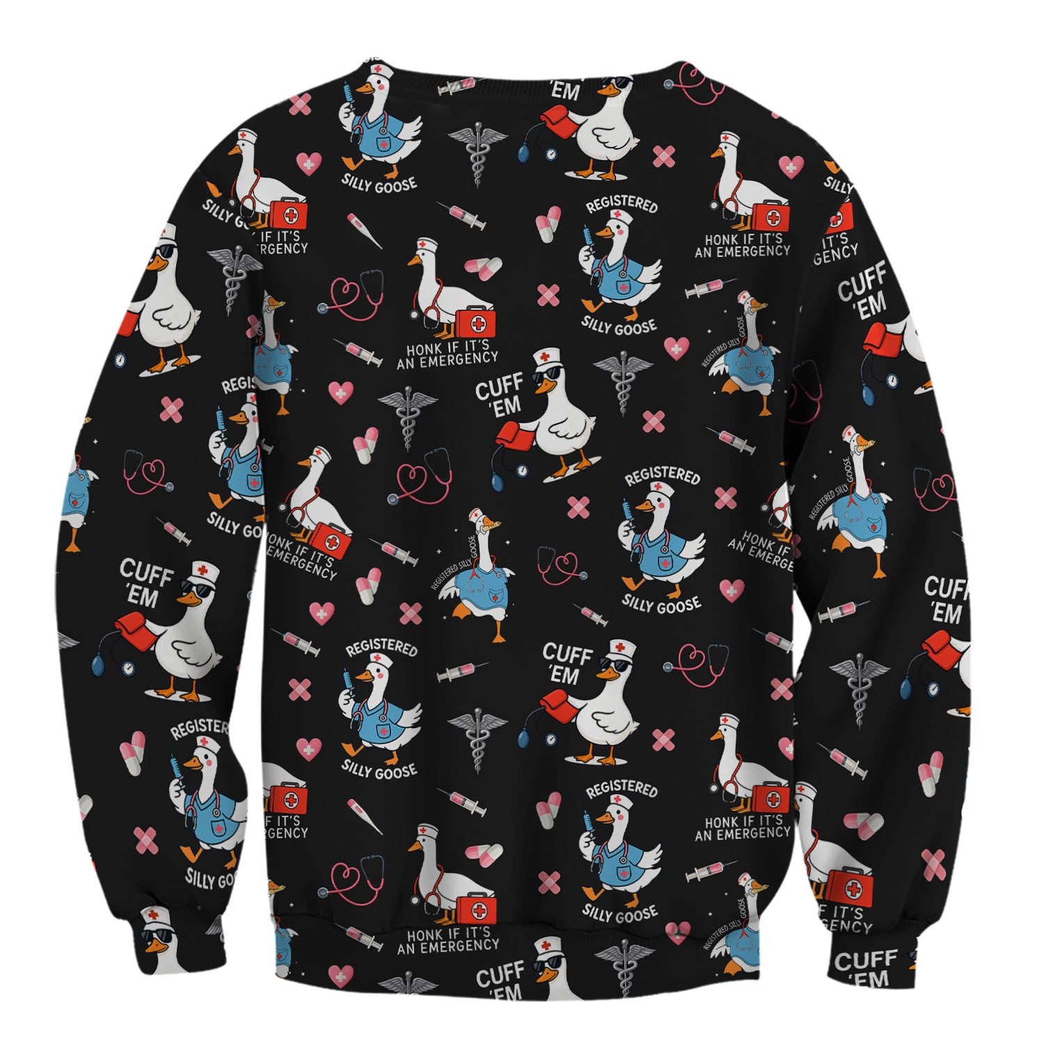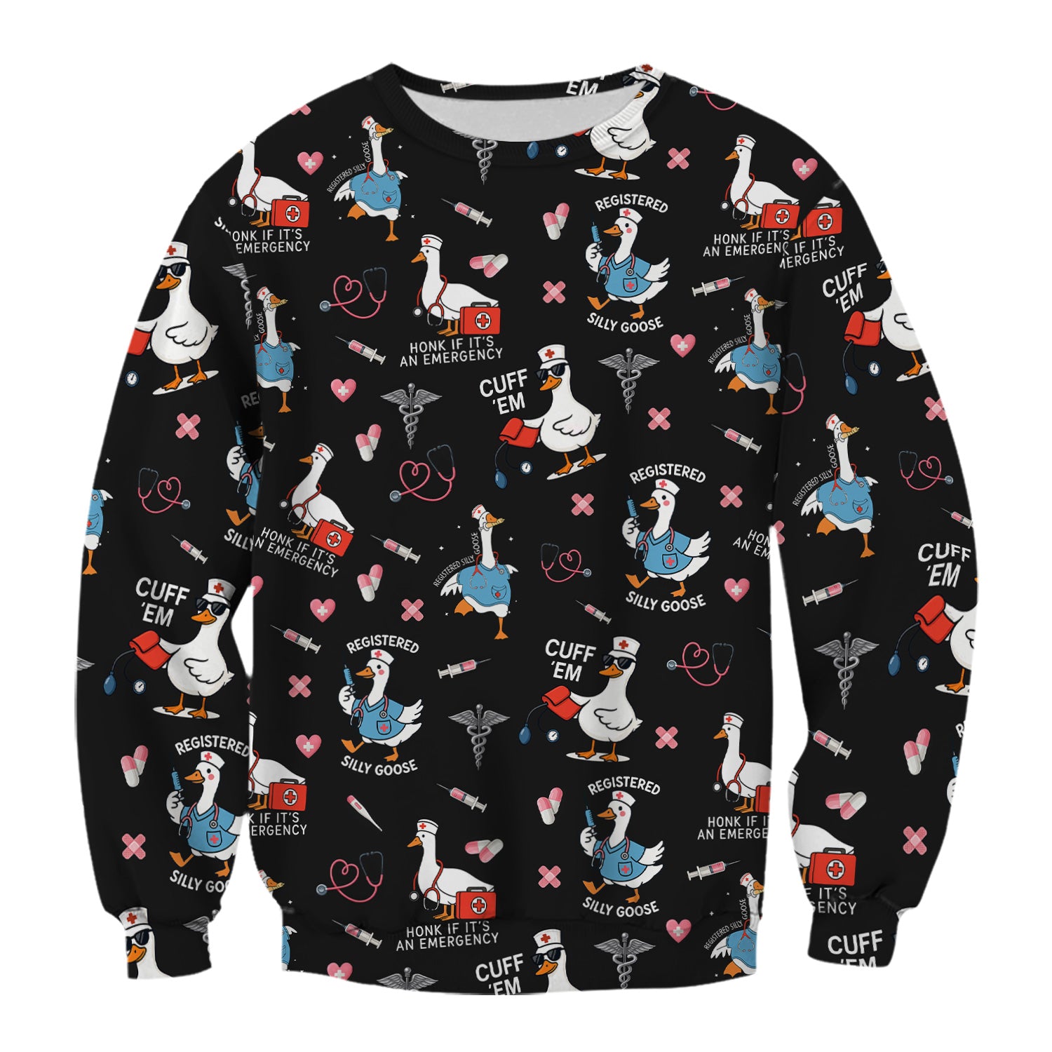 Goose Nurse Graphic T-Shirt for Women - Cute Medical Work Tee with Stethoscope & Heart Icons - Gift for RN, CNA, LPN