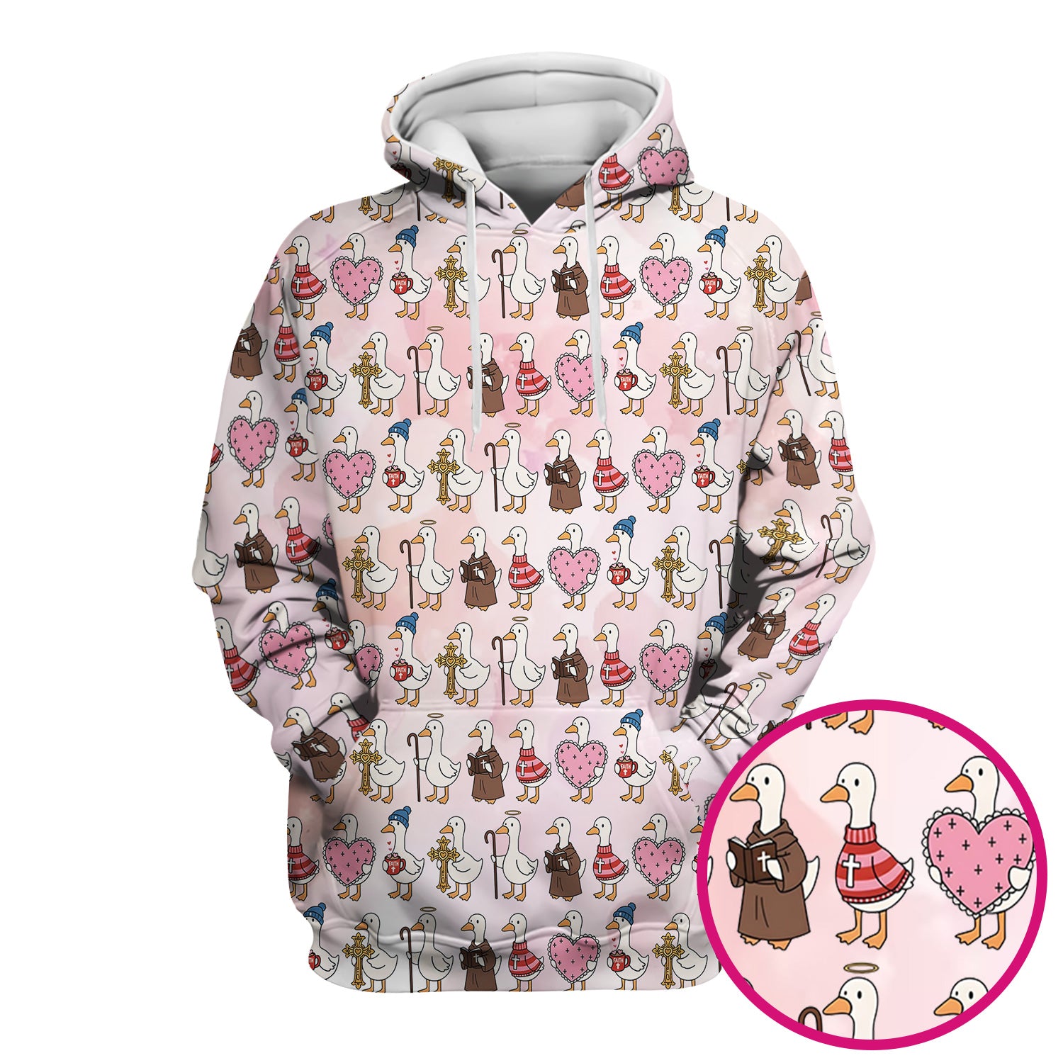 Goose Valentine Heart Illustration Design Scrubs Top, Breathable Fabrics Nursing Uniform