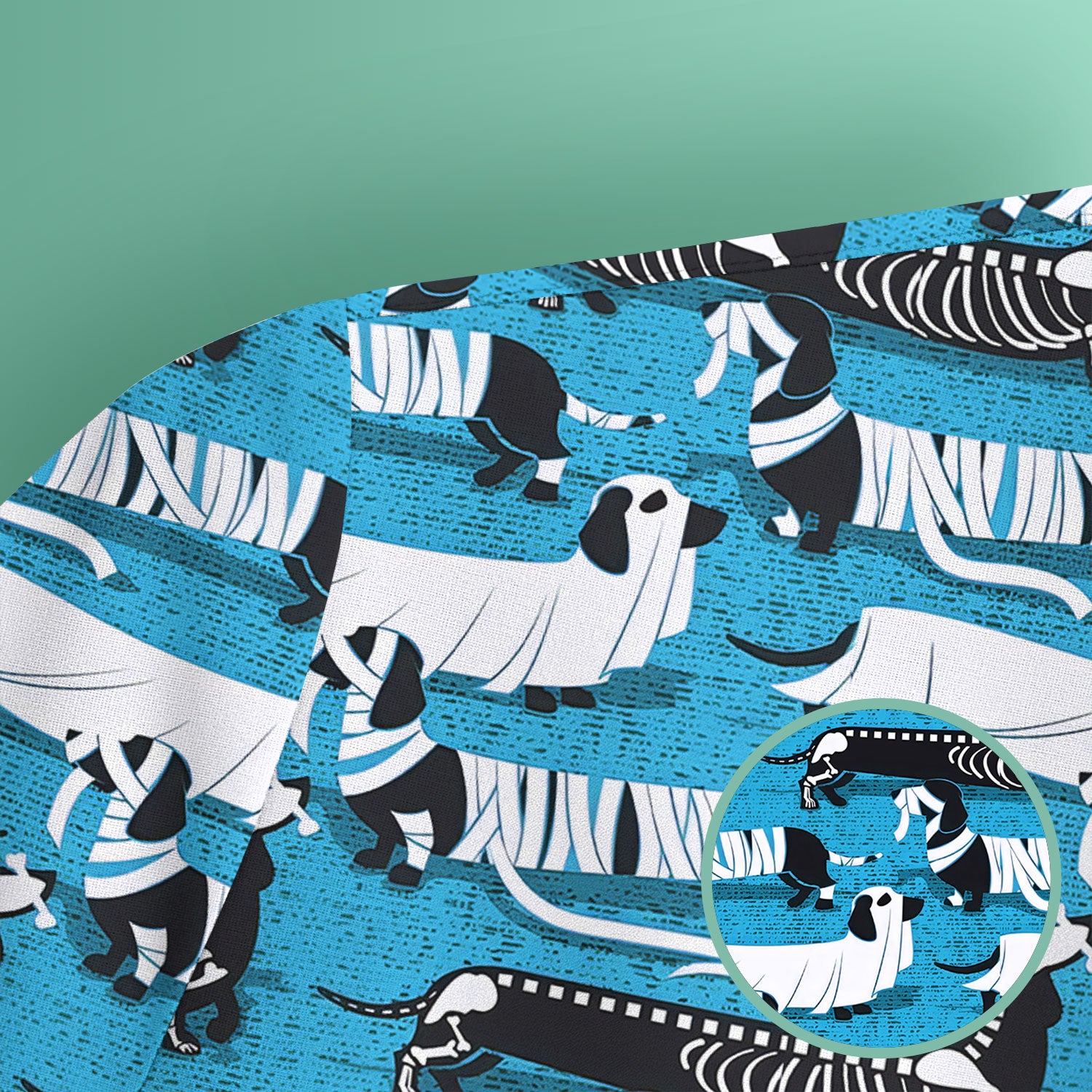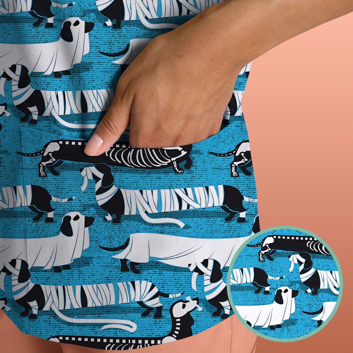Halloween Dachshund Scrub Top - Funny Dog Skeleton Scrub Shirt Multi Color - Cute Halloween Scrubs Gift for Nurse, CNA, RN, Doctor