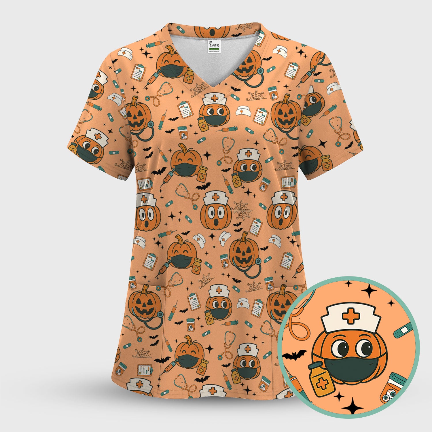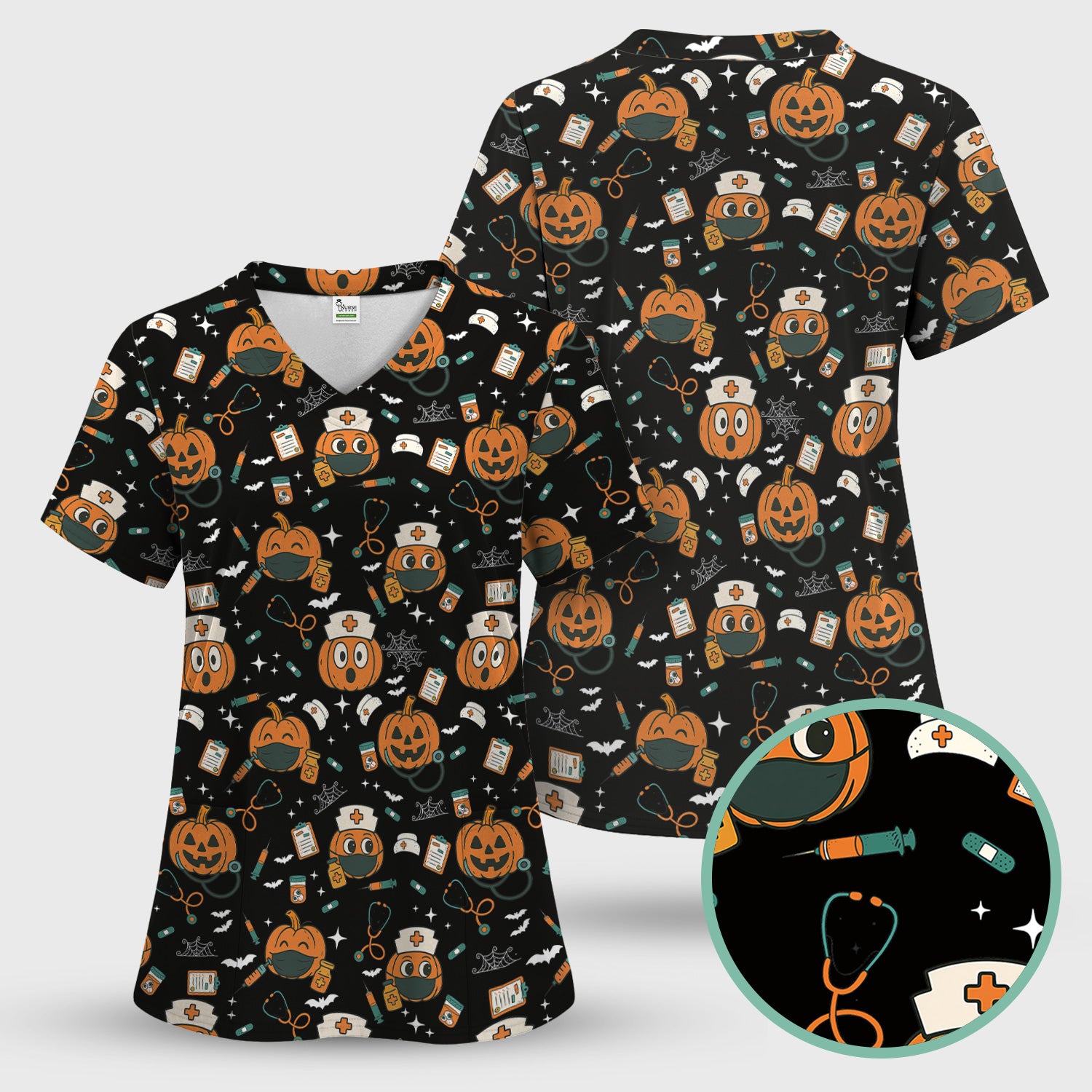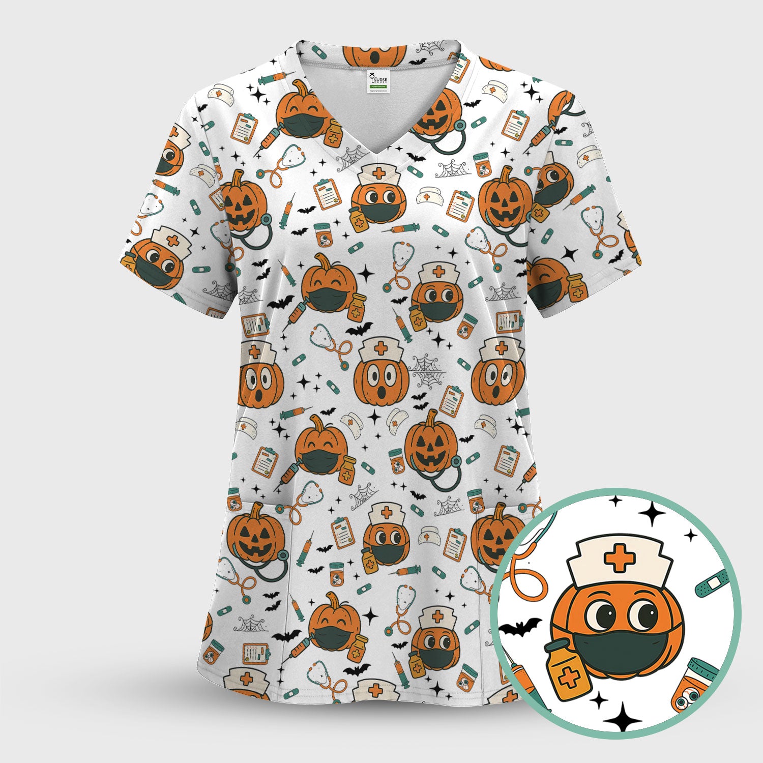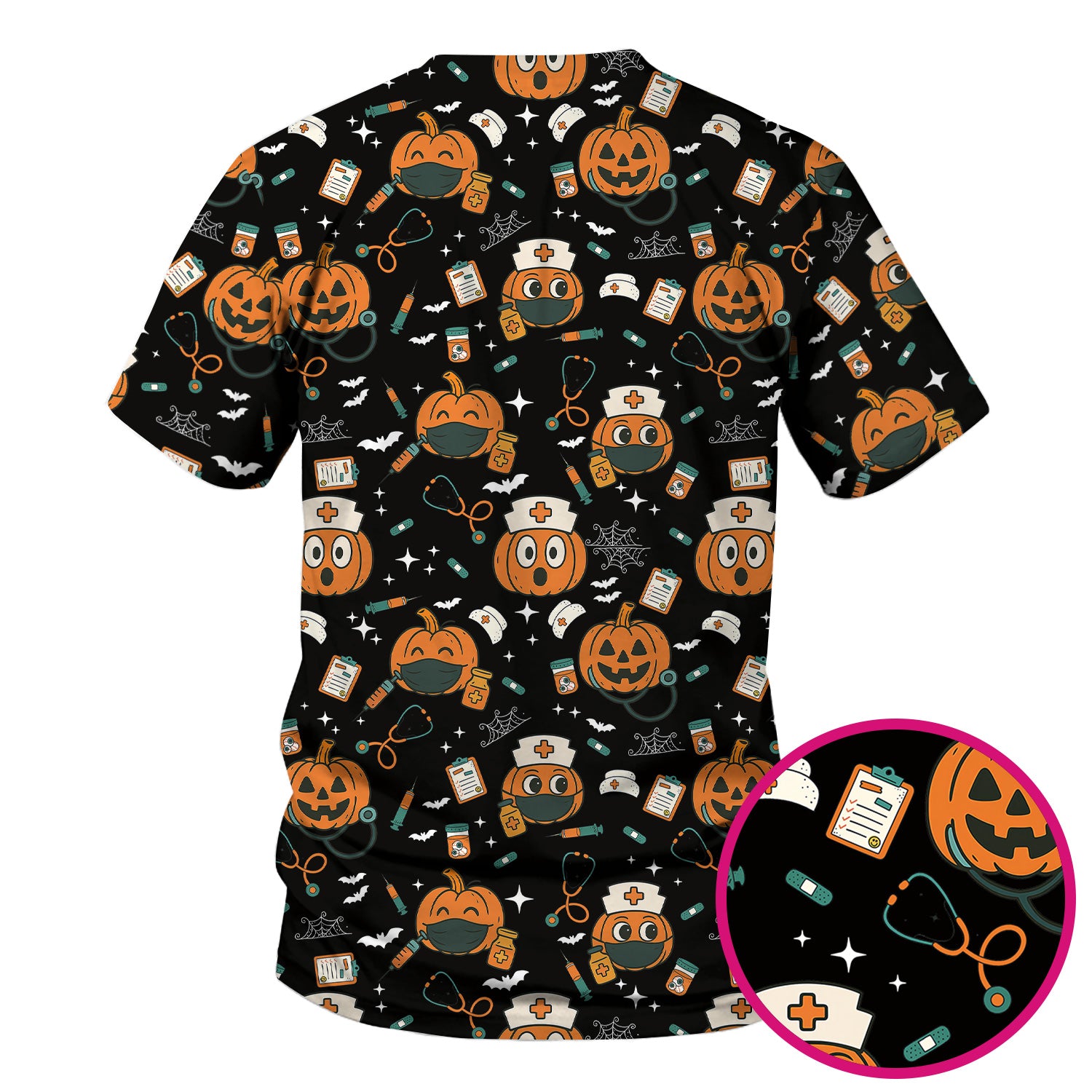 Halloween Nurse Scrub Top - Cute Holiday Scrub for Nurse - Spooky Halloween Gift for CNA RN LPN