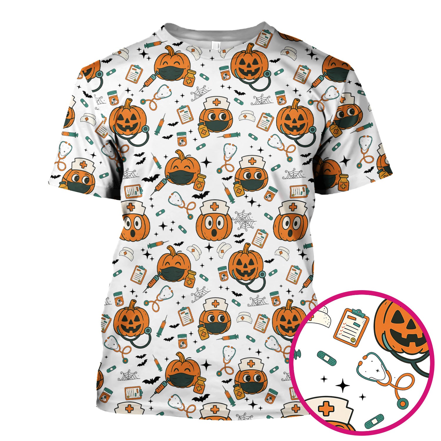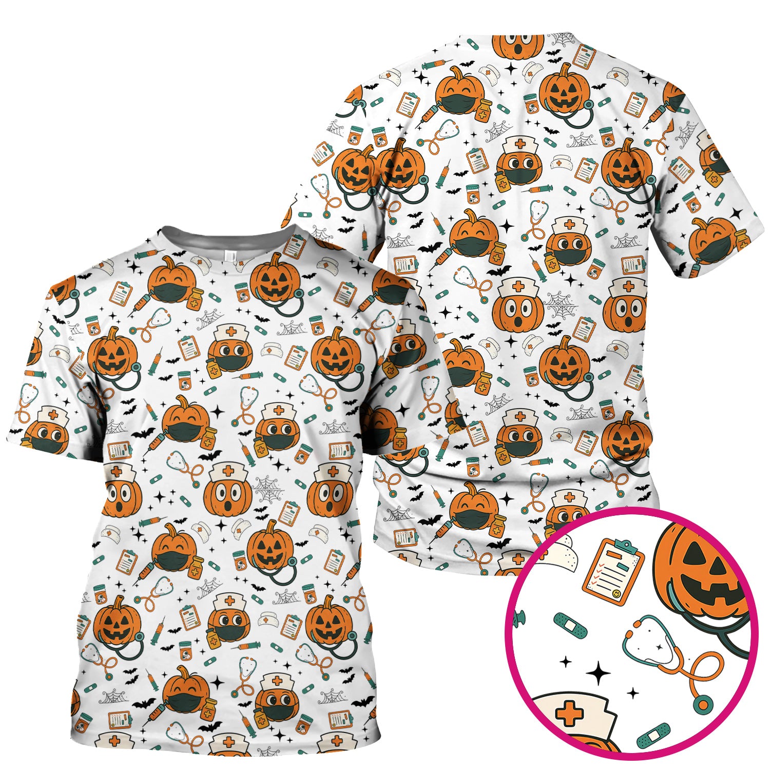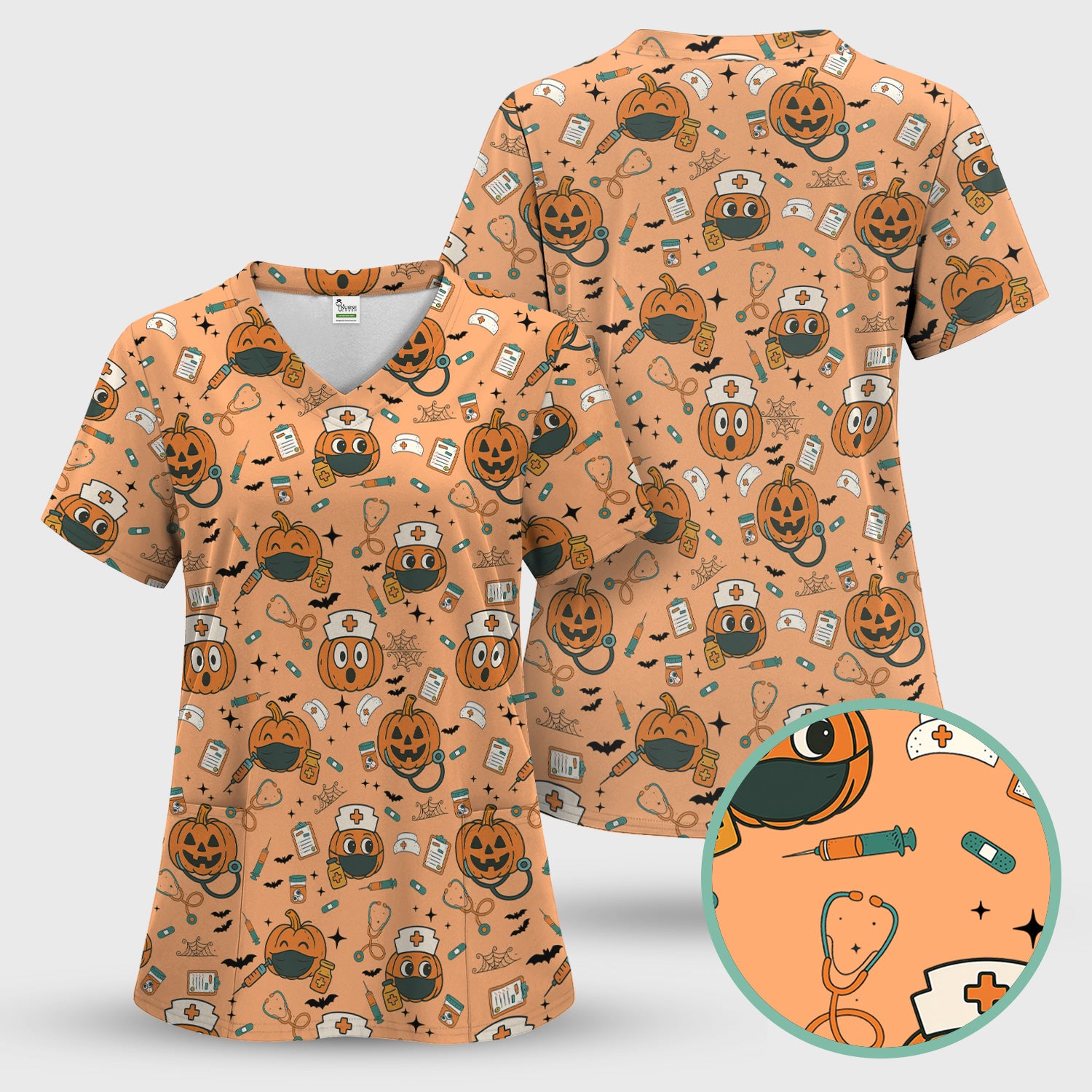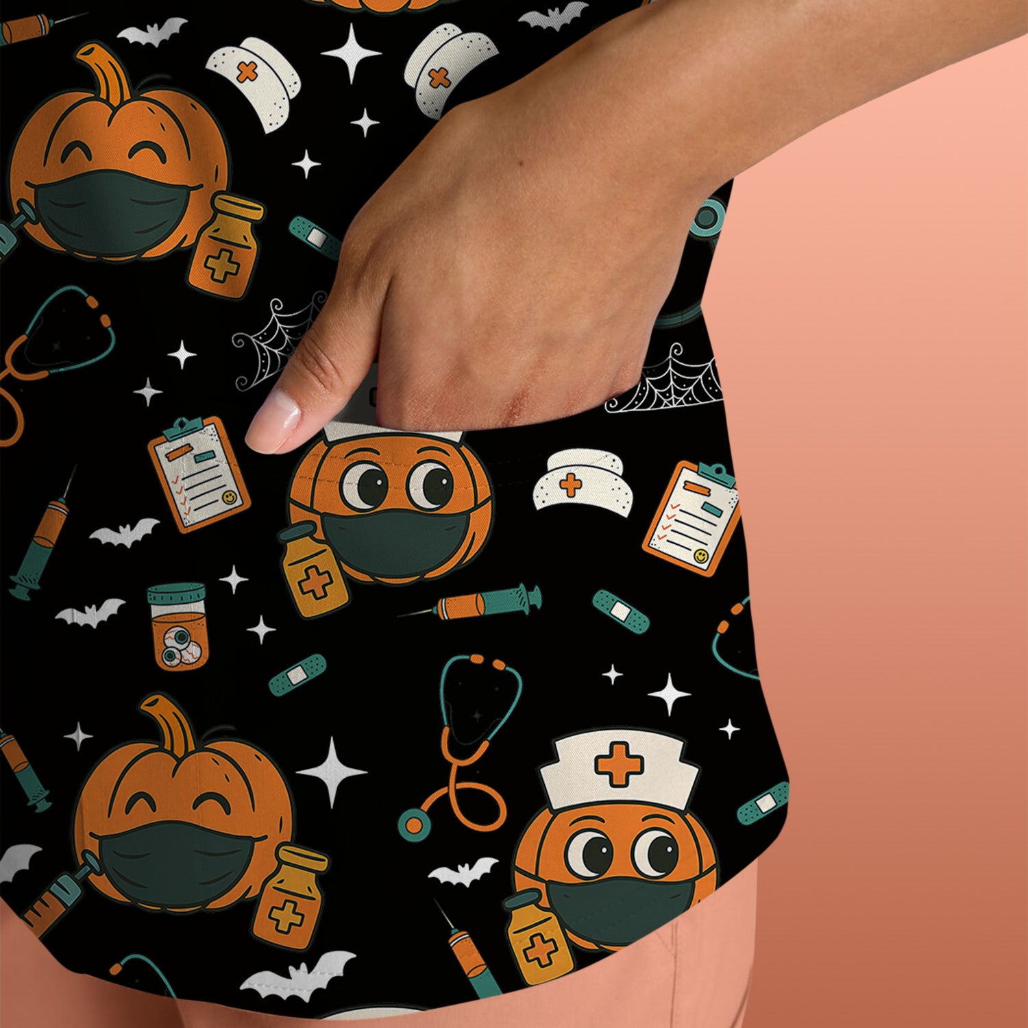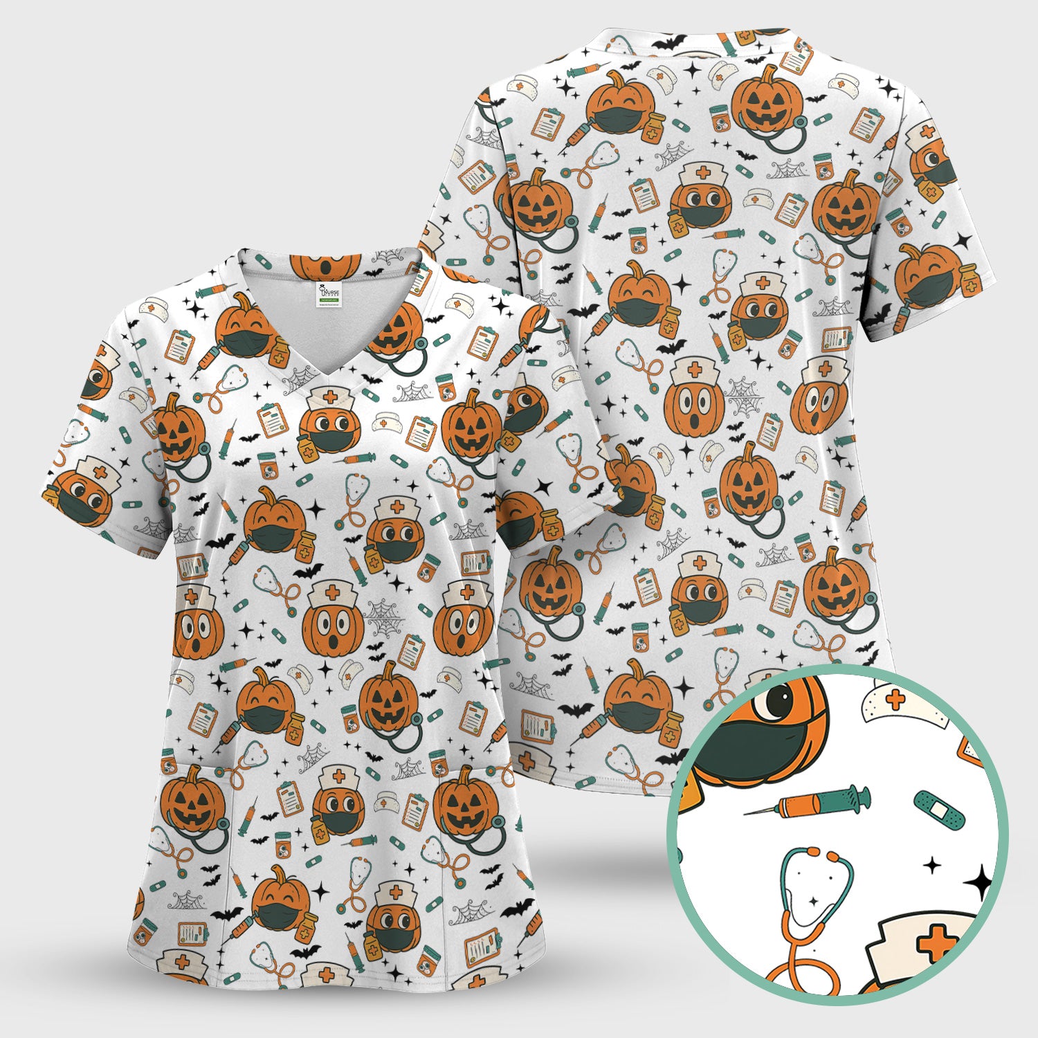 Halloween Nurse Scrub Top - Cute Holiday Scrub for Nurse - Spooky Halloween Gift for CNA RN LPN