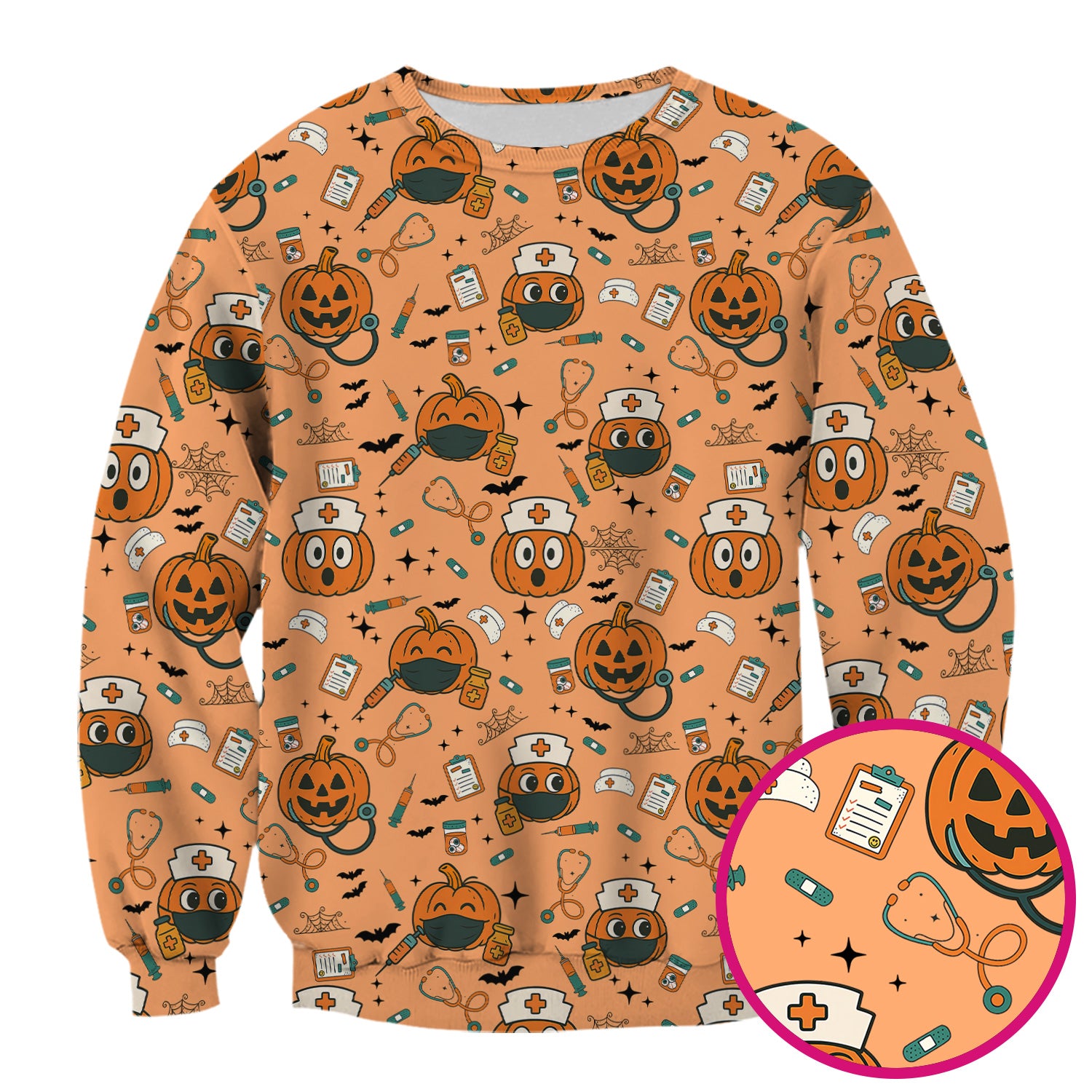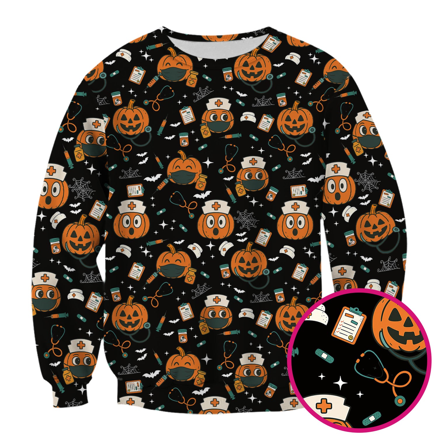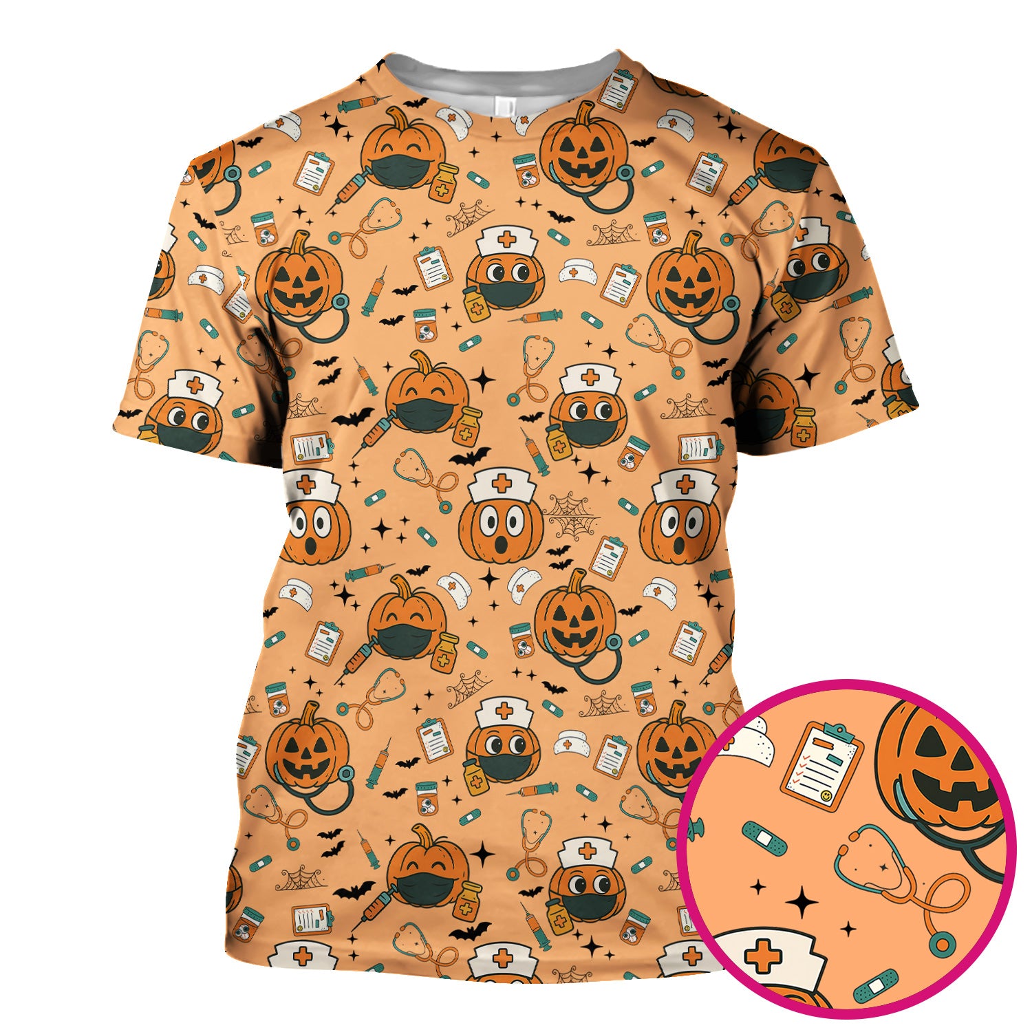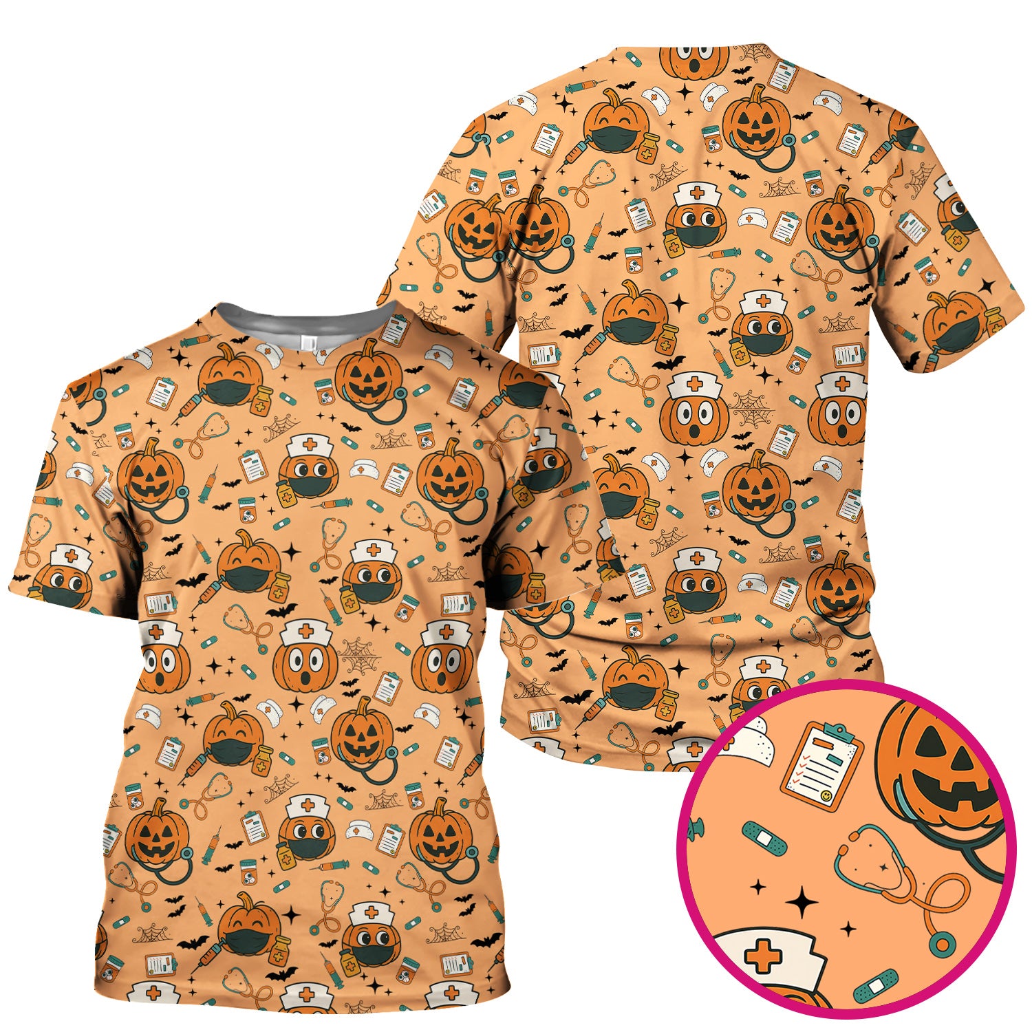 Halloween Nurse Scrub Top - Cute Holiday Scrub for Nurse - Spooky Halloween Gift for CNA RN LPN