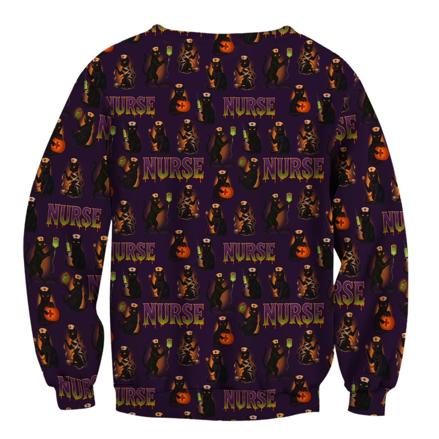 Halloween Nurse Scrub Top for Women - Cute Black Cat and Pumpkin Medical Design - Spooky Gift for RN LPN CNA