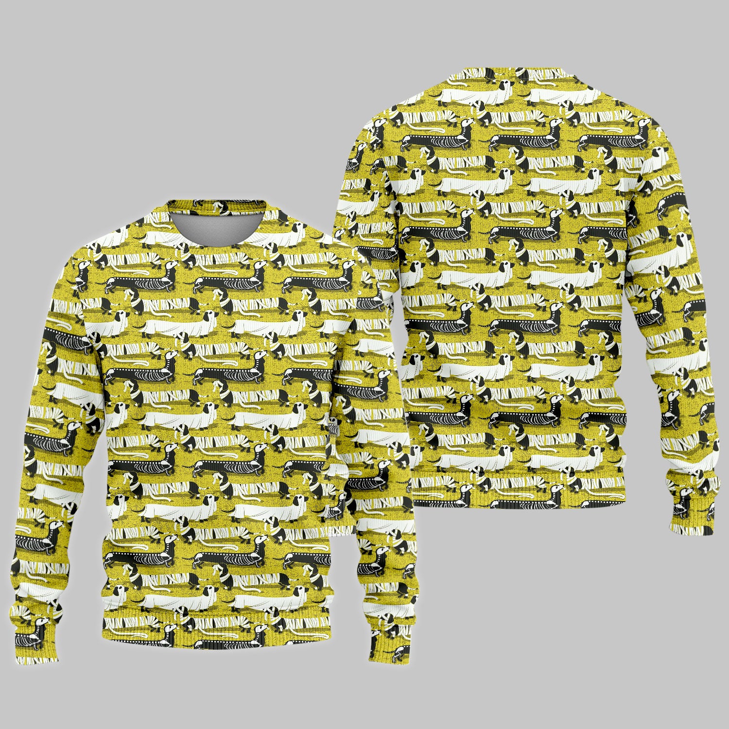 Halloween Scrub Set for Women - Spooky Dachshund Skeleton Med Uniform - Comfortable Nursing Pants - Ugly Sweater for Pet Lover