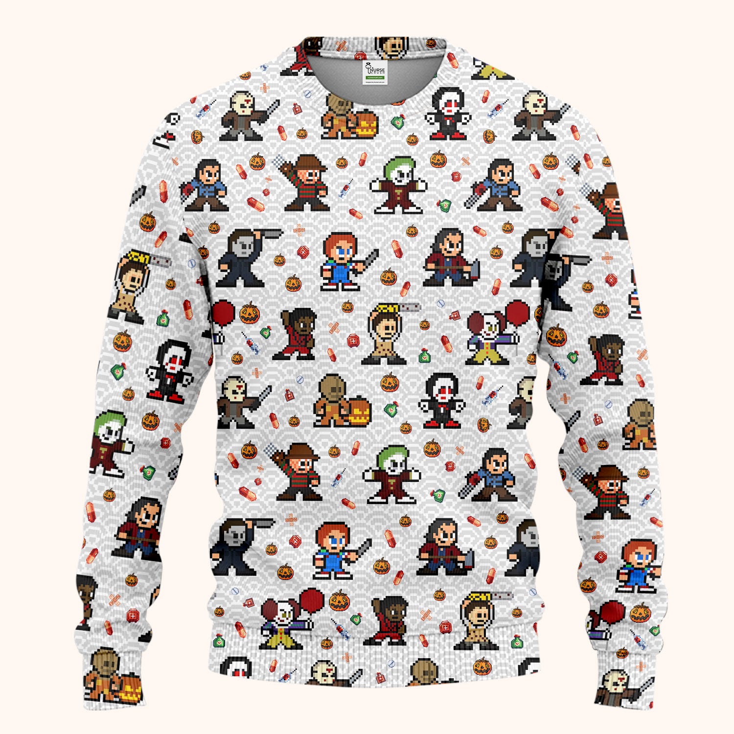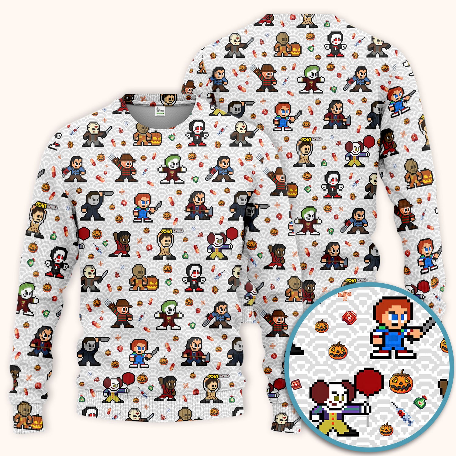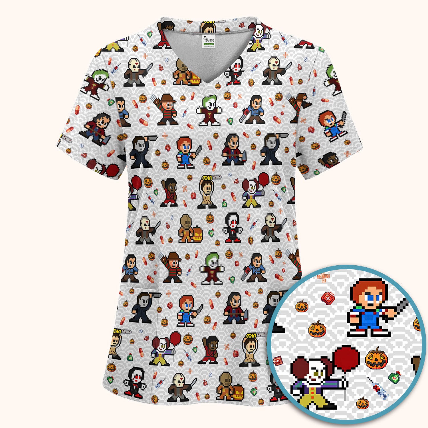 Halloween Women's Scrub Sets - Comfortable Scrubs for Nurses - Horror Movie Scrub Pants and V Neck Top - Breathable Med Uniform