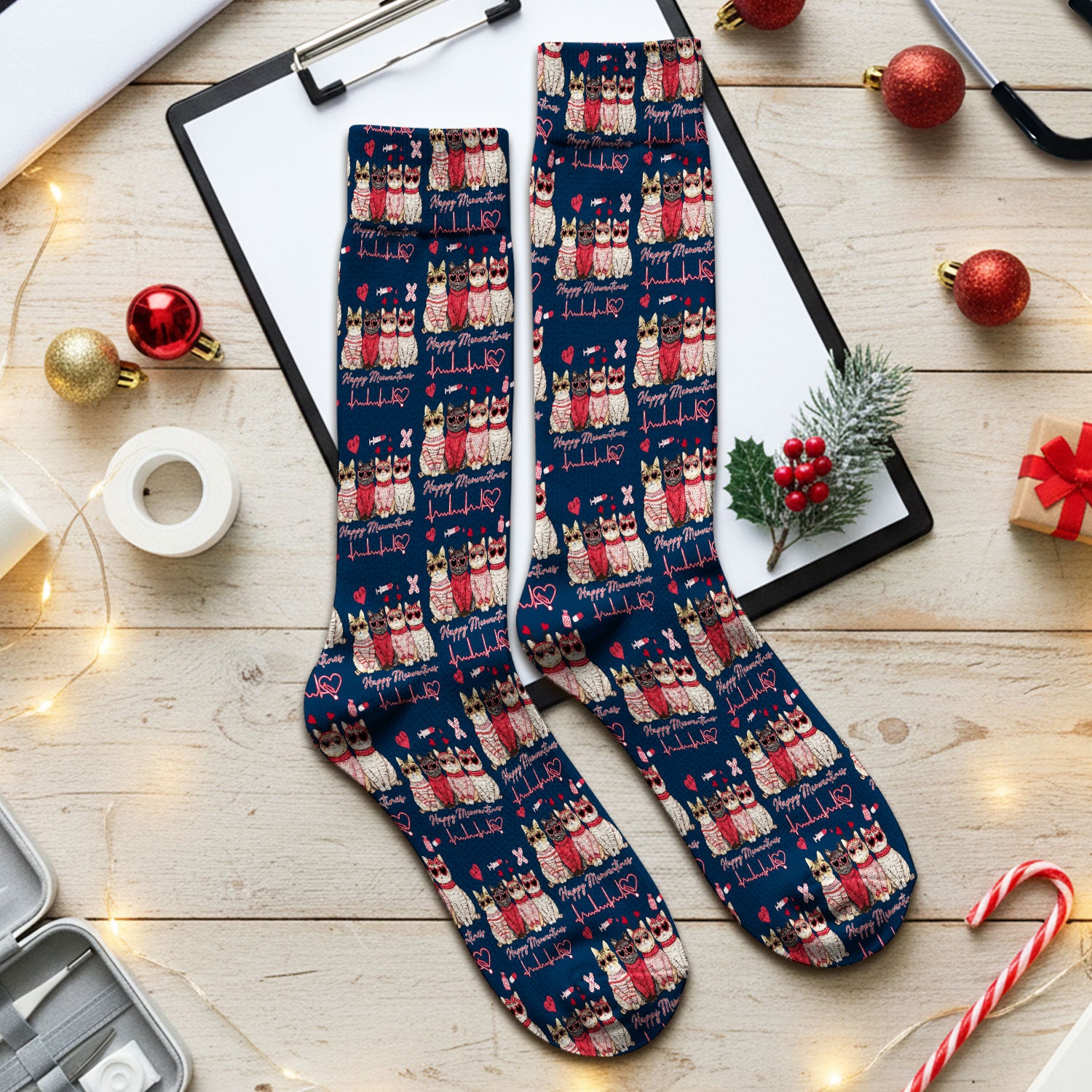 Built with a reinforced interior lining and anti-pilling knit structure, these Christmas nurse socks maintain their shape wash after wash. They are easy to clean, reusable, and ideal as a holiday nurse gift, nurse appreciation gift, or thoughtful stocking stuffer for any medical professional.