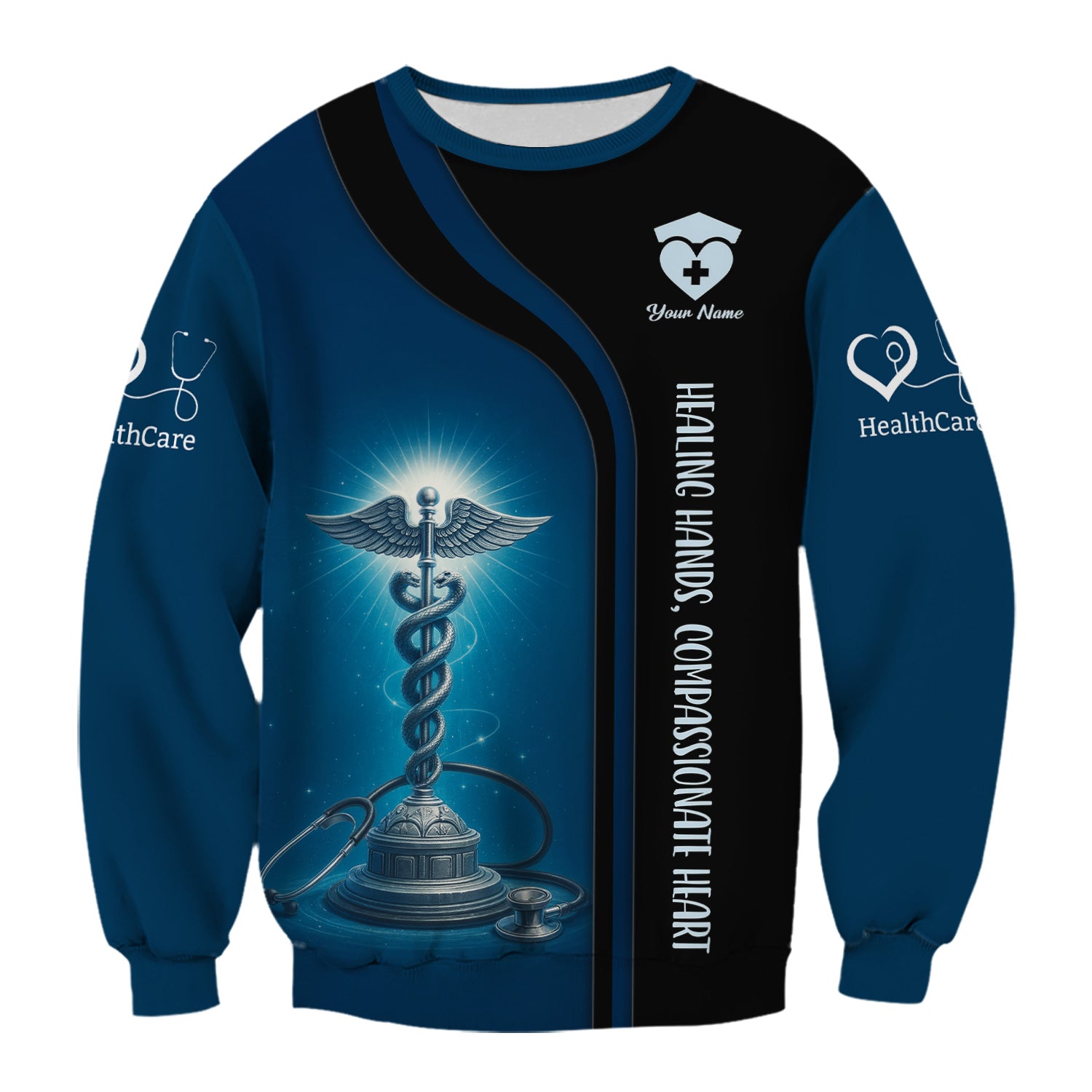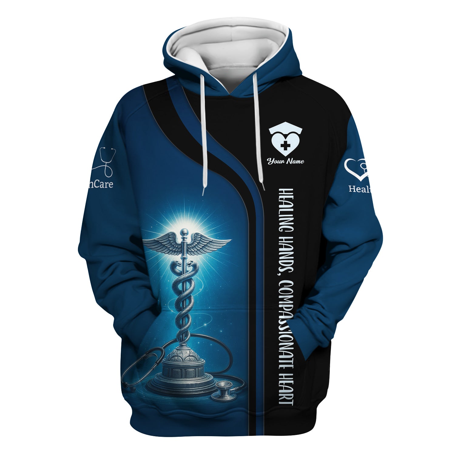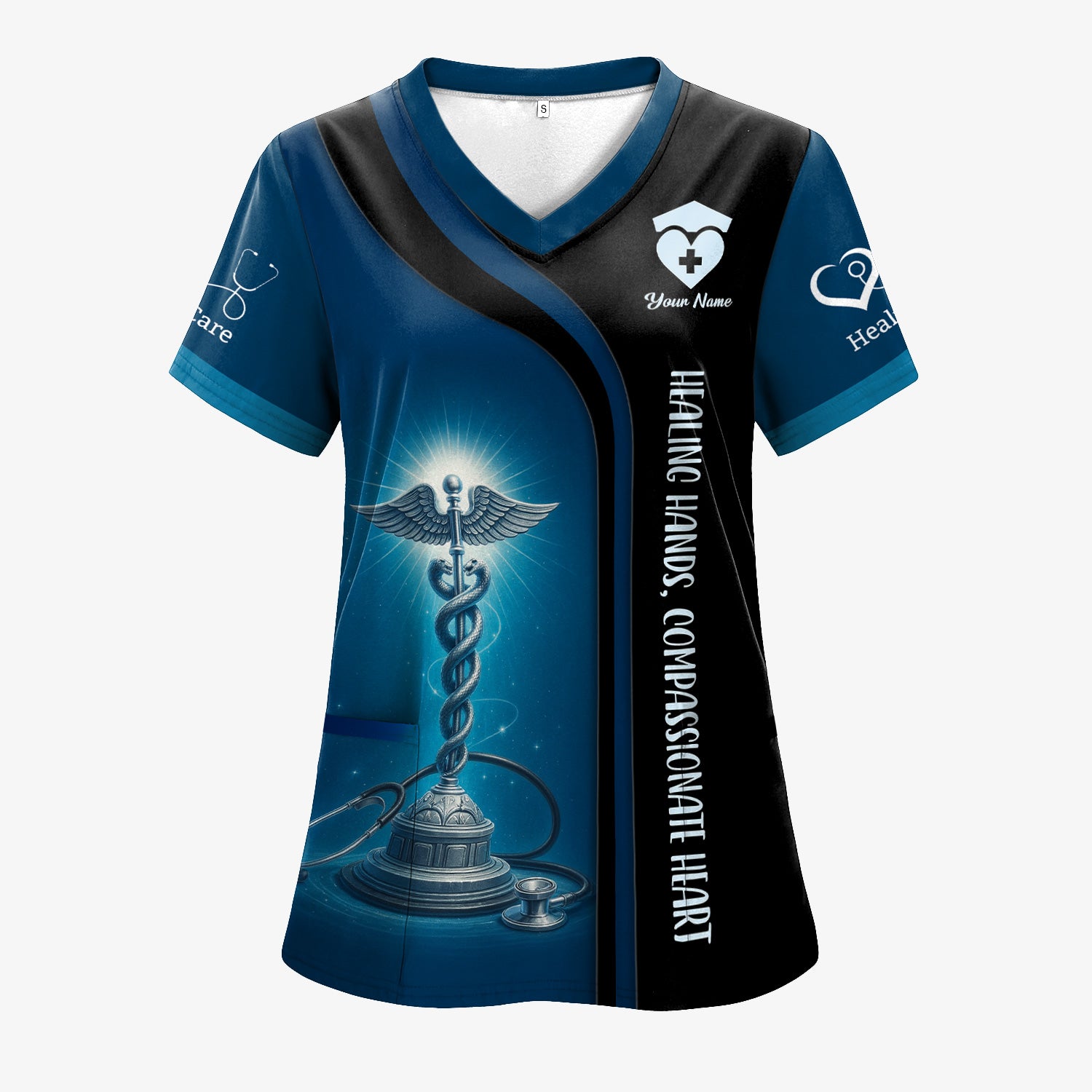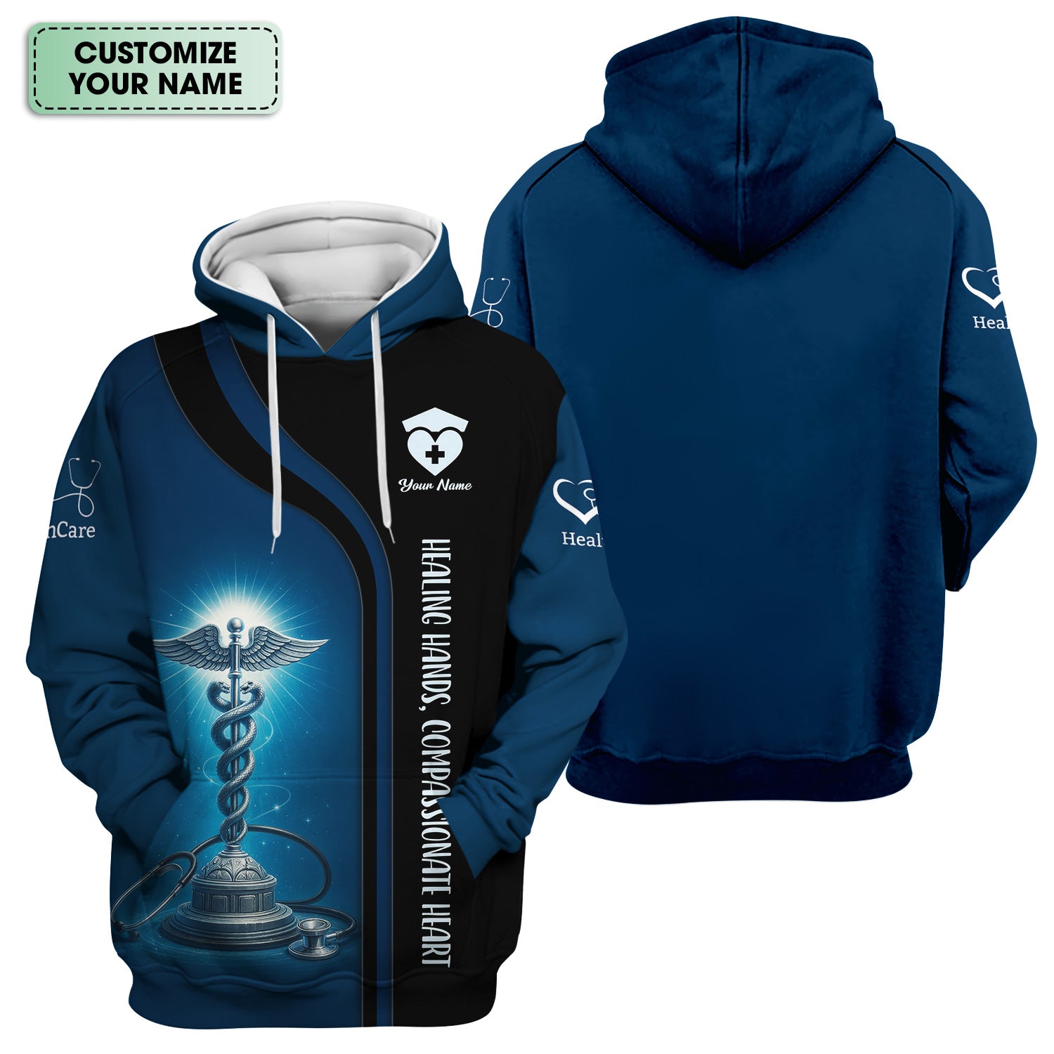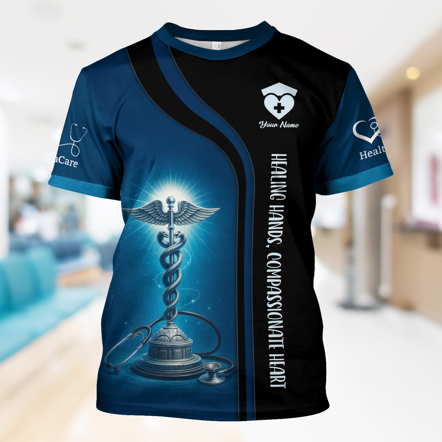 Healing Hands Compassionate Heart Shirt - Personalized Medical Apparel Gift - Caduceus Design for Nurse RN CNA LPN Healthcare Workers