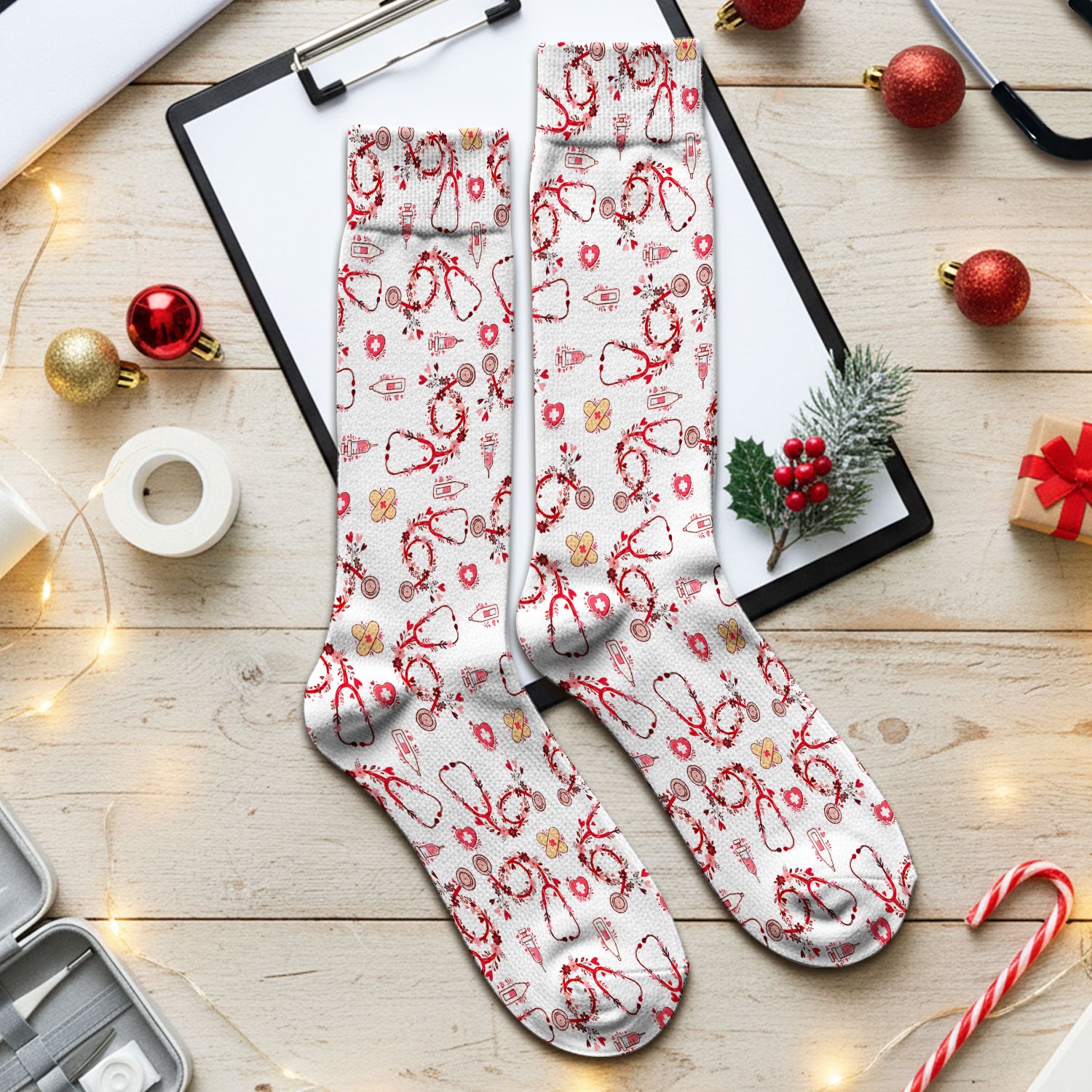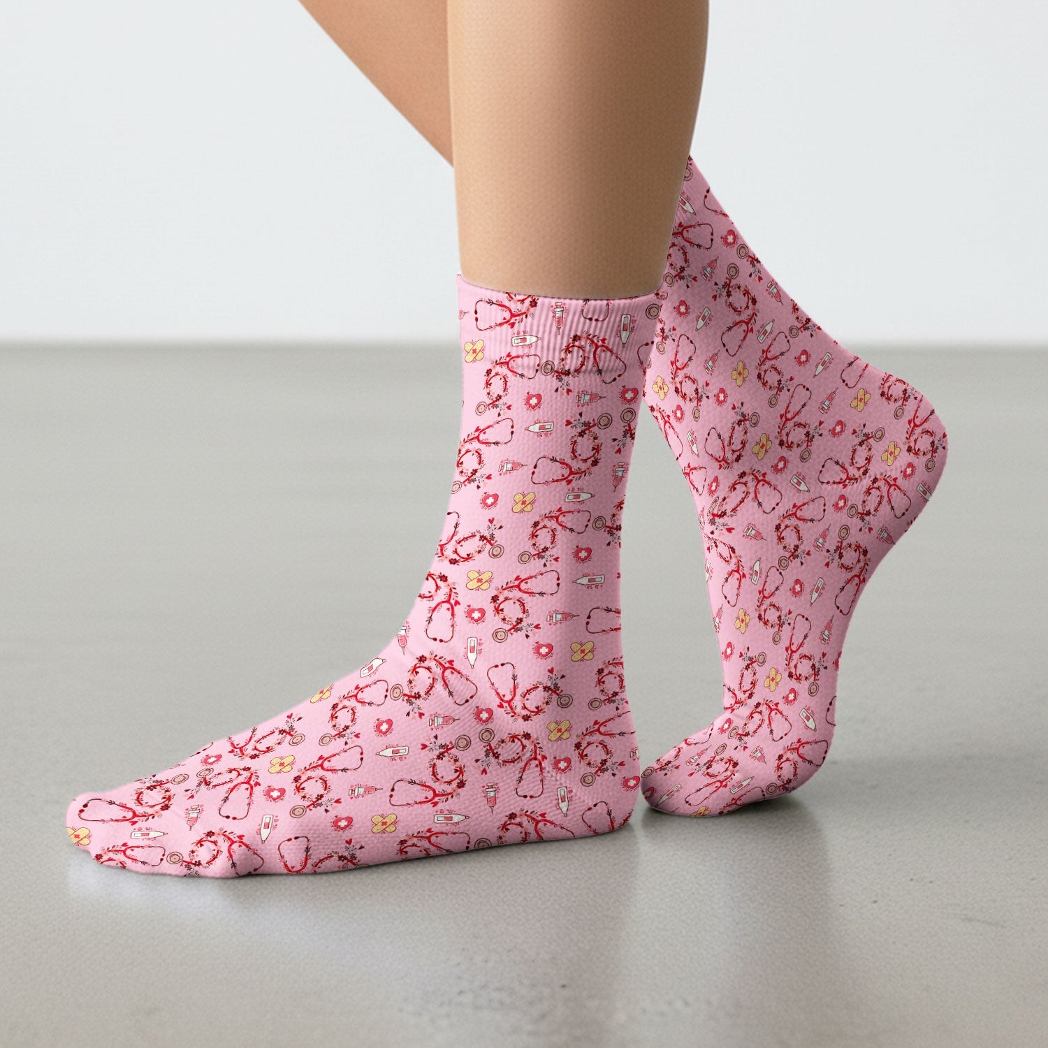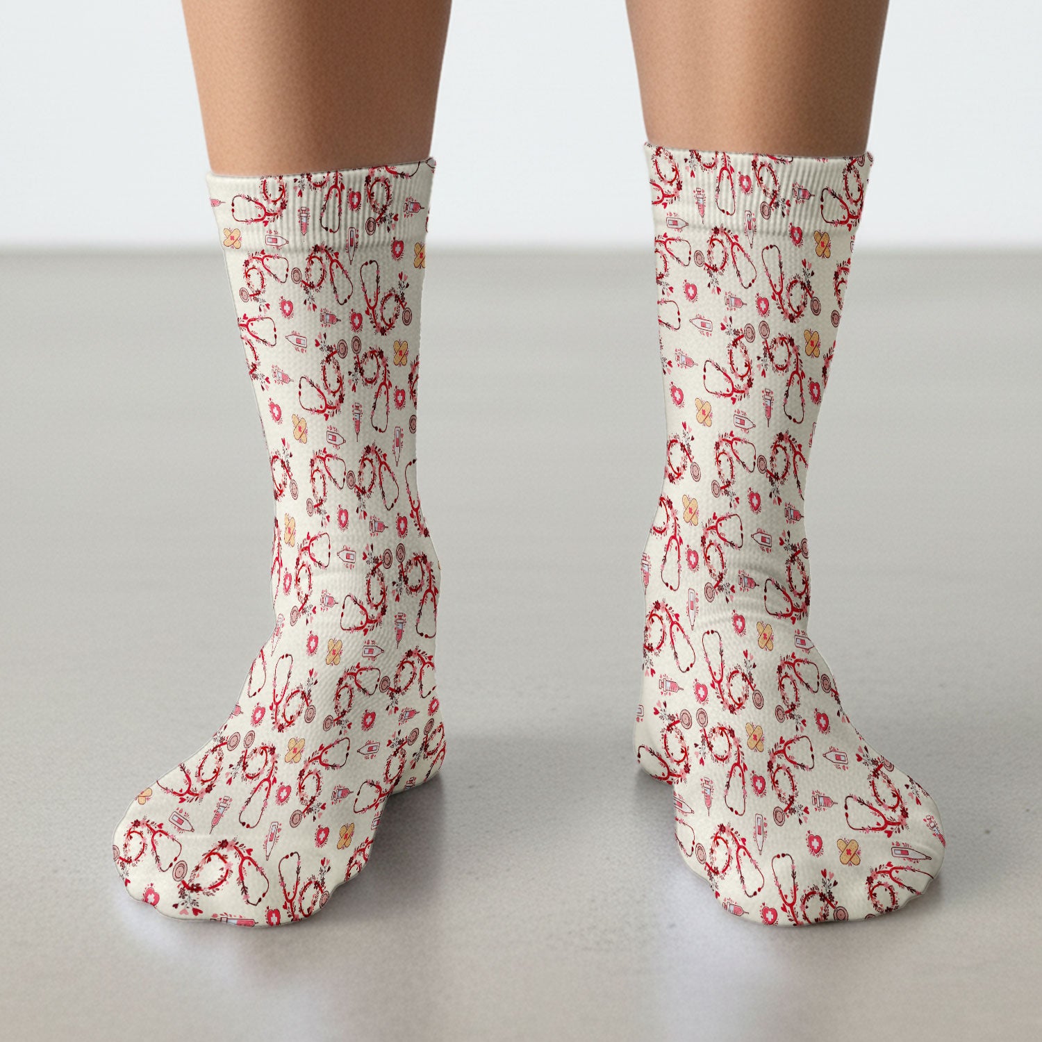 Heart Stethoscope Medical Pattern, Socks for Nurse Doctor