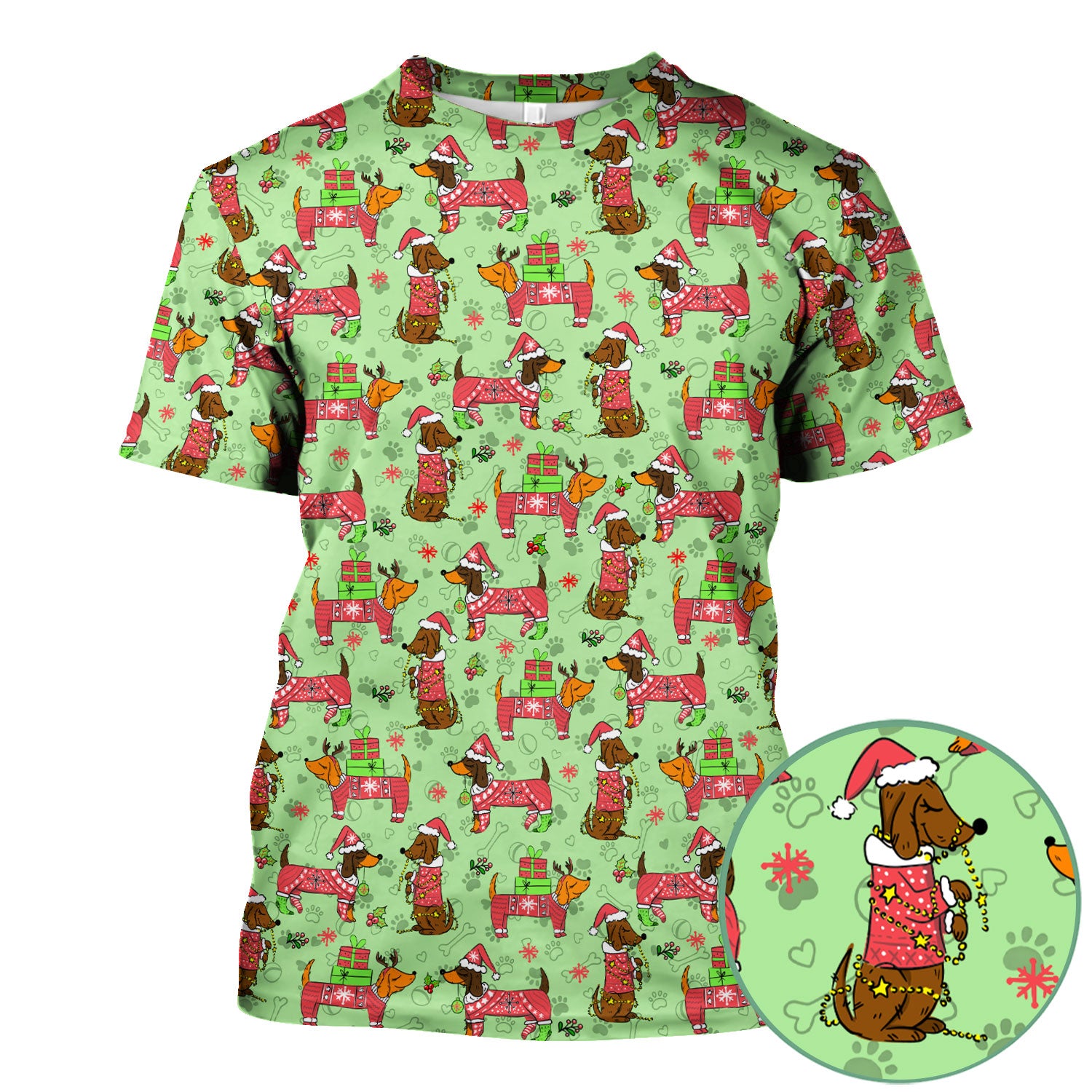 Holiday Dachshund Scrub Top for Nurses - Christmas Sausage Dog Santa with Paw Prints - Funny Medical Shirt RN LPN CNA Gift