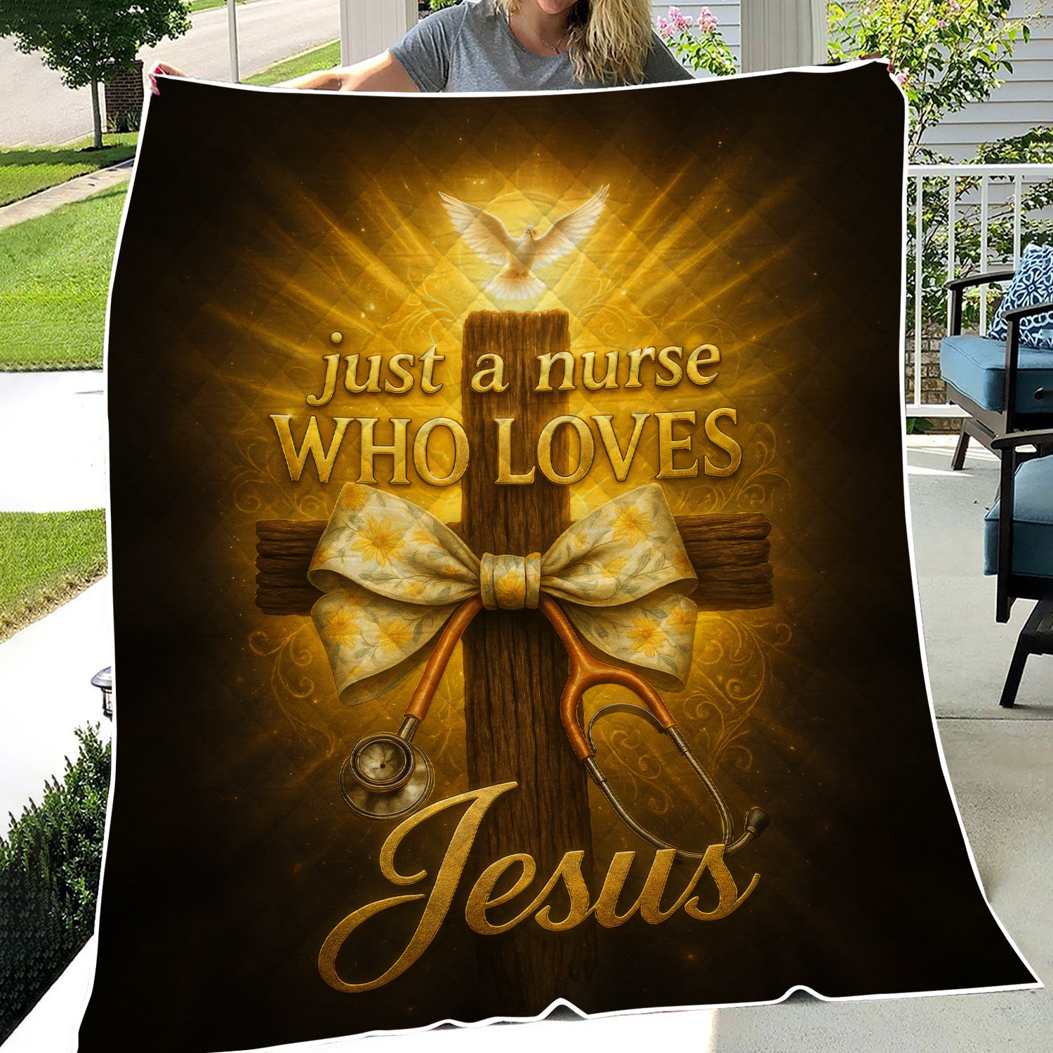 Just a Nurse Who Loves Jesus Blanket - Christian Fleece Throw for RN CNA - Personalized Faith Gift for Religious Nurses Women