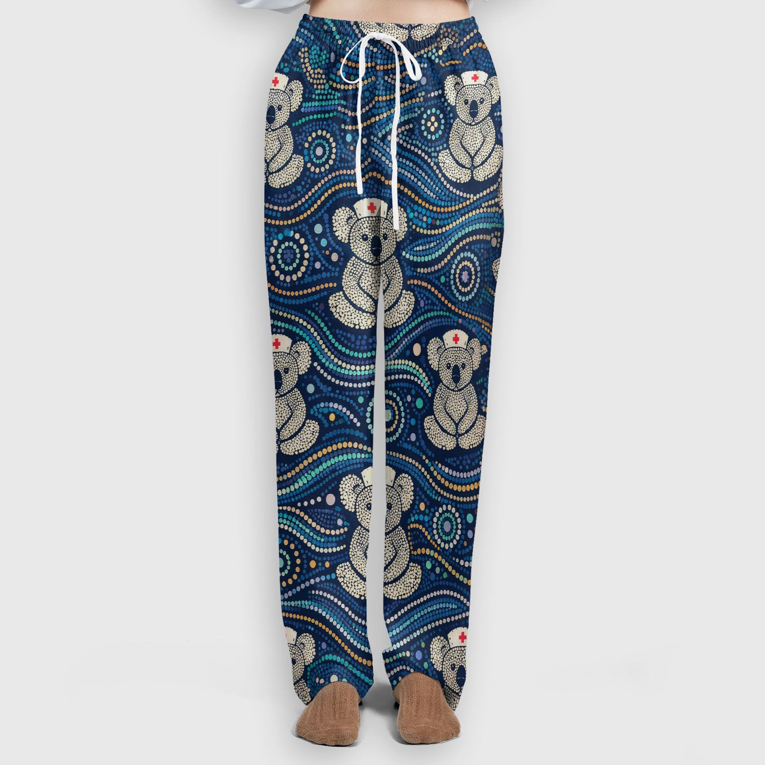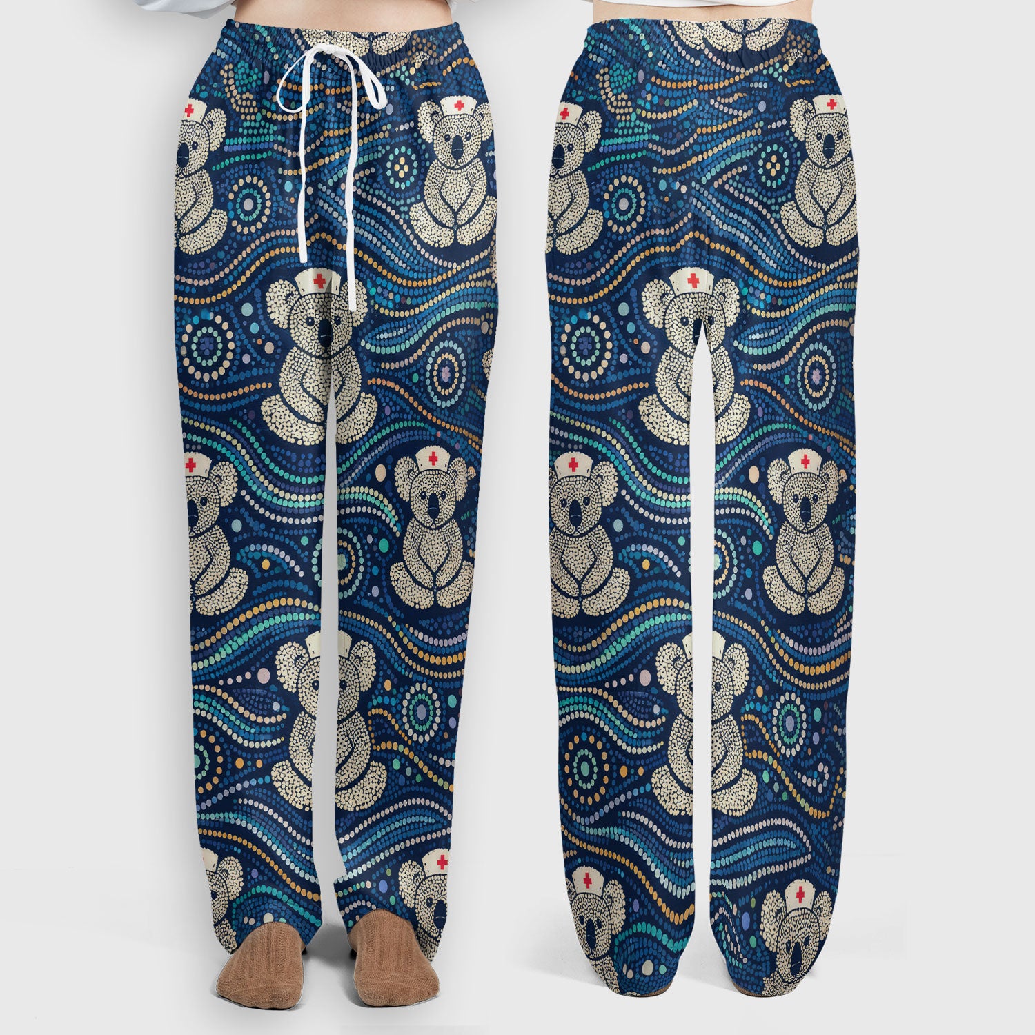 Koala Pattern Nurse Scrub Set, Aboriginal Dot Art Medical Shirt For Women, Breathable Fabrics Nursing Uniform