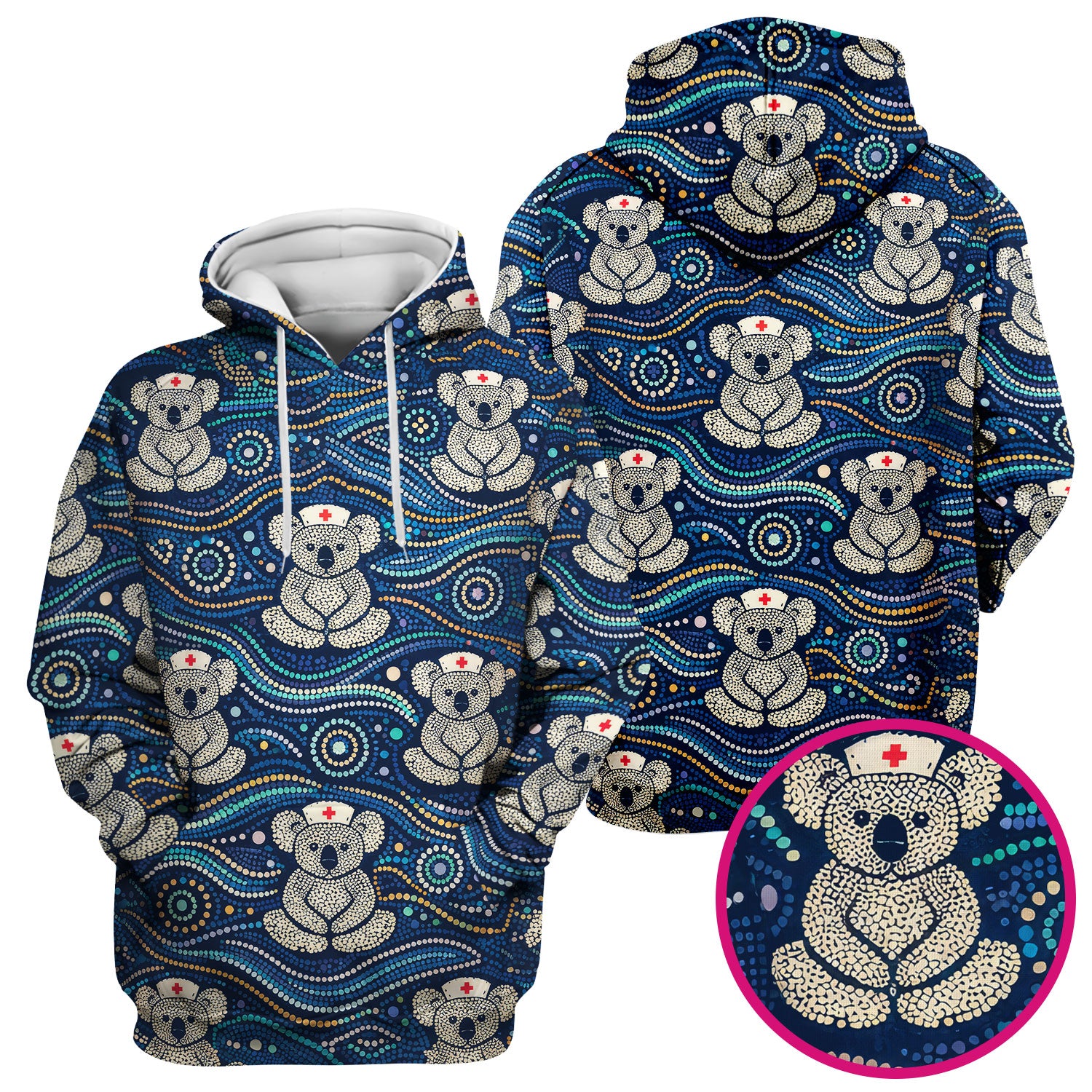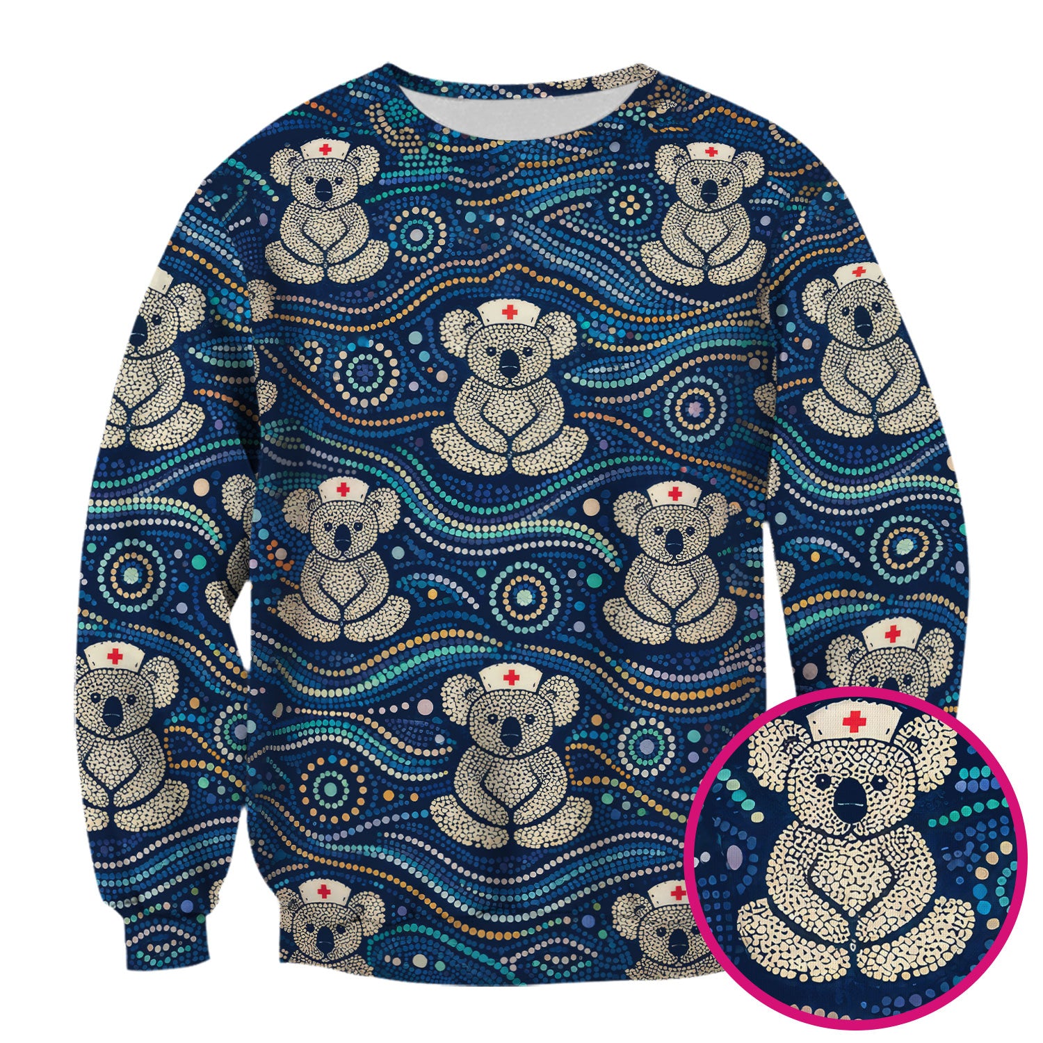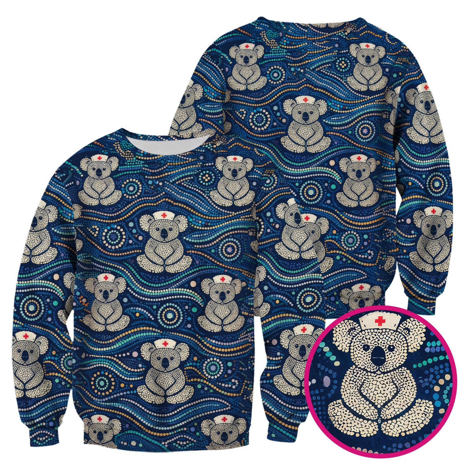 Koala Pattern Nurse Scrub Top, Aboriginal Dot Art Medical Shirt For Women, Breathable Fabrics Nursing Uniform
