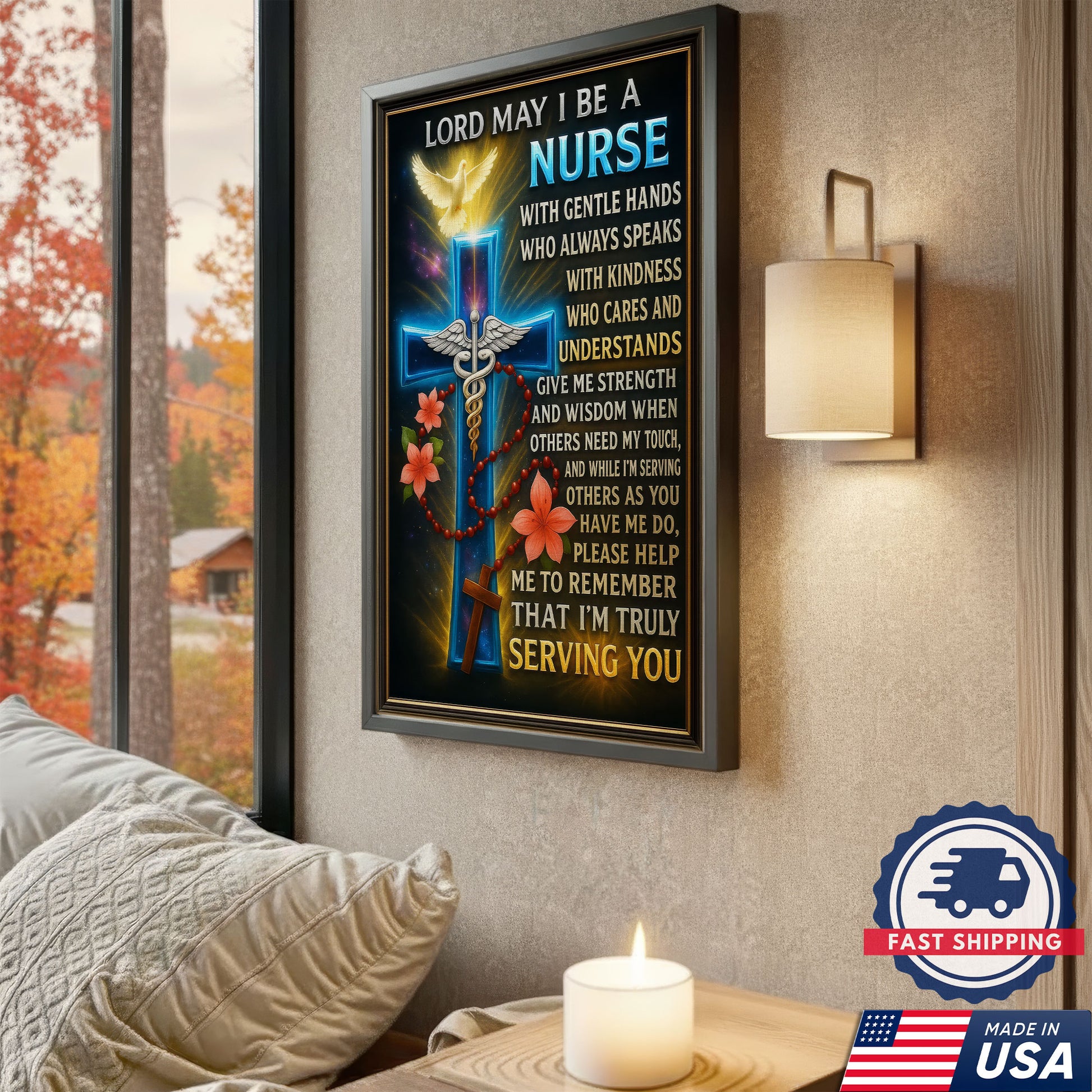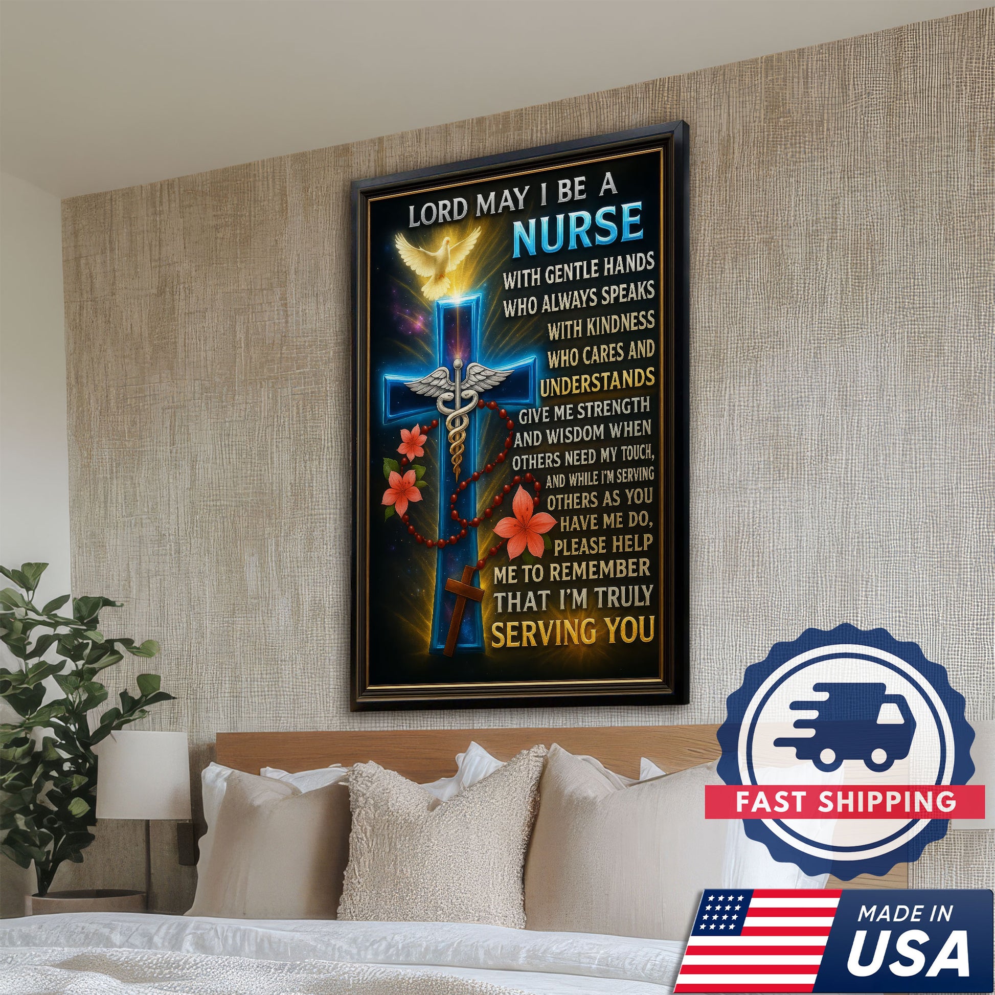 Lord May I Be A Nurse Prayer Canvas, Christian Faith Gift for RN LPN CNA, Religious Home Office Decoration