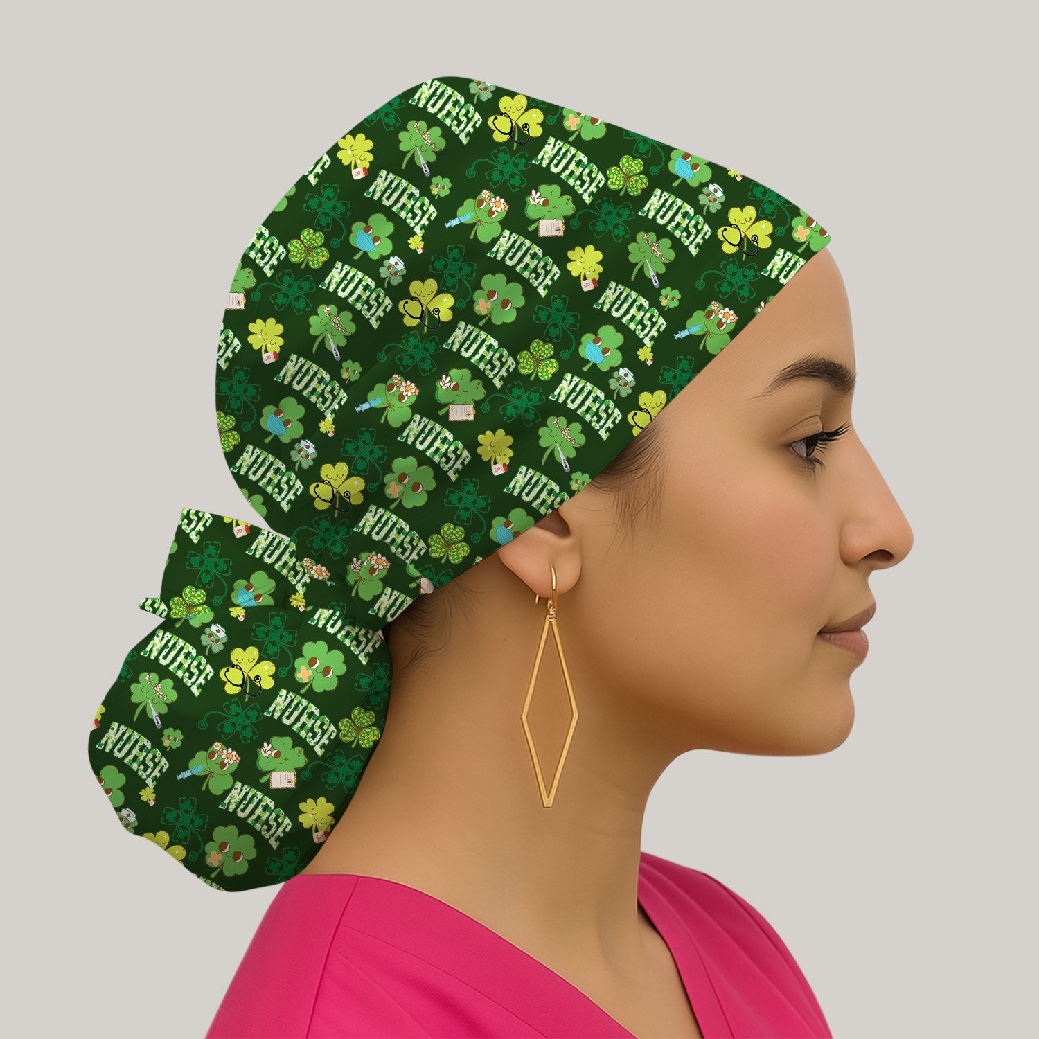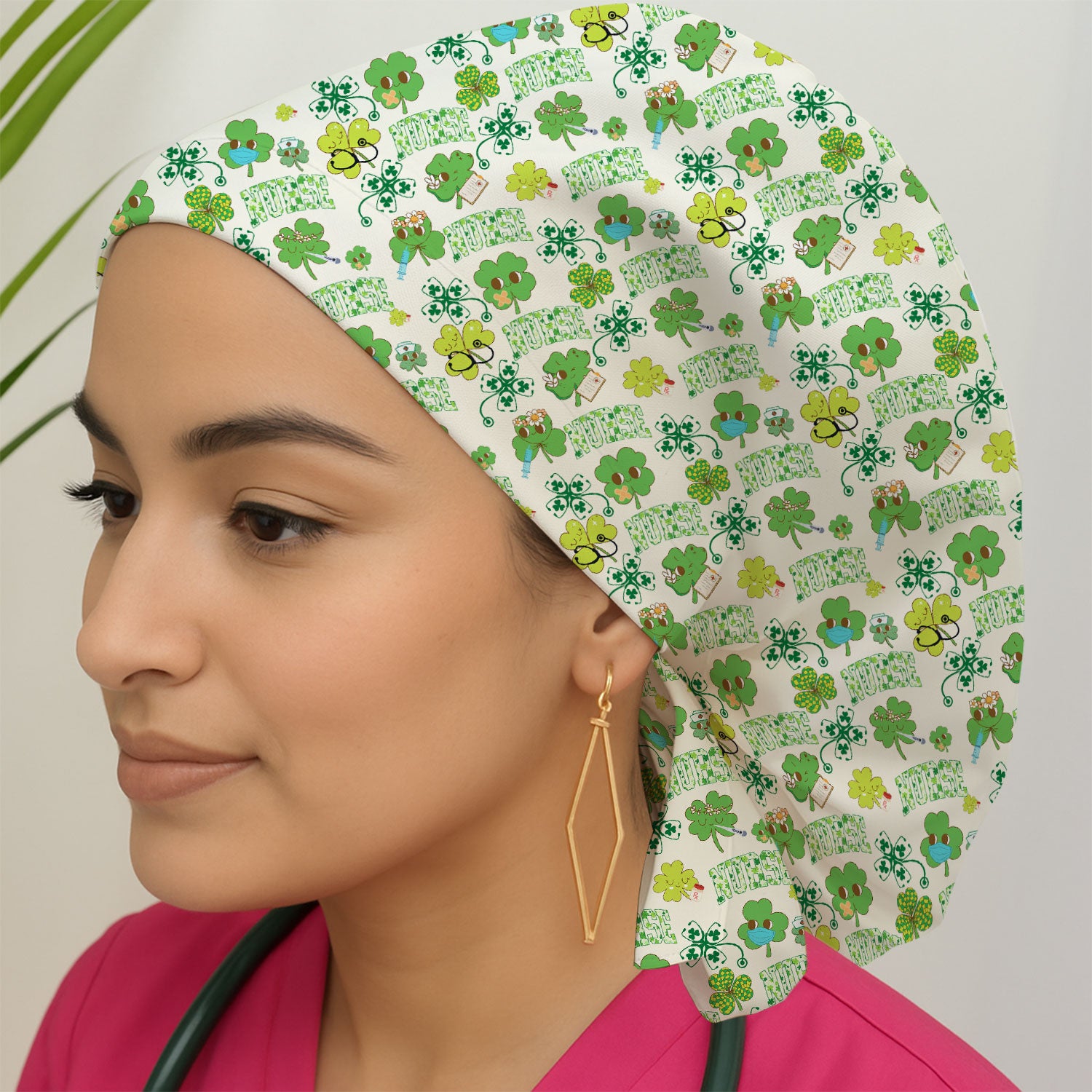 Lucky Shamrock Nurse Scrub Cap, St. Patrick’s Day Nursing Hat, Breathable Fabrics Nursing Uniform