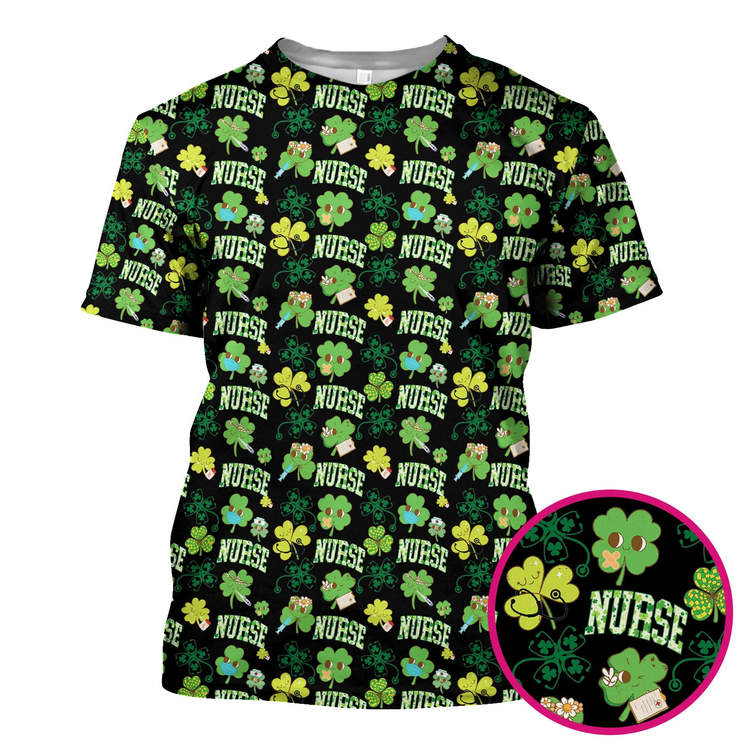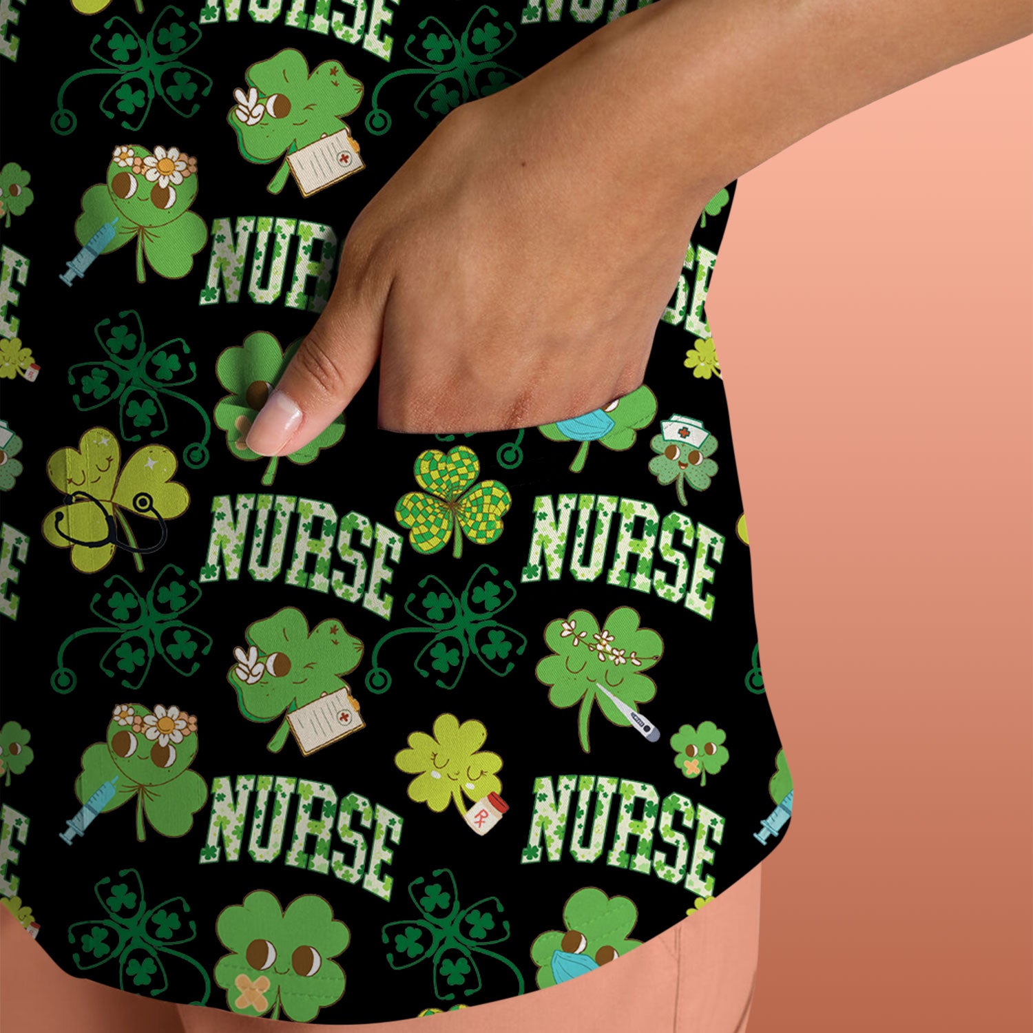Lucky Shamrock Nurse Scrub Top, St. Patrick’s Day Nursing Shirt, Breathable Fabrics Nursing Uniform