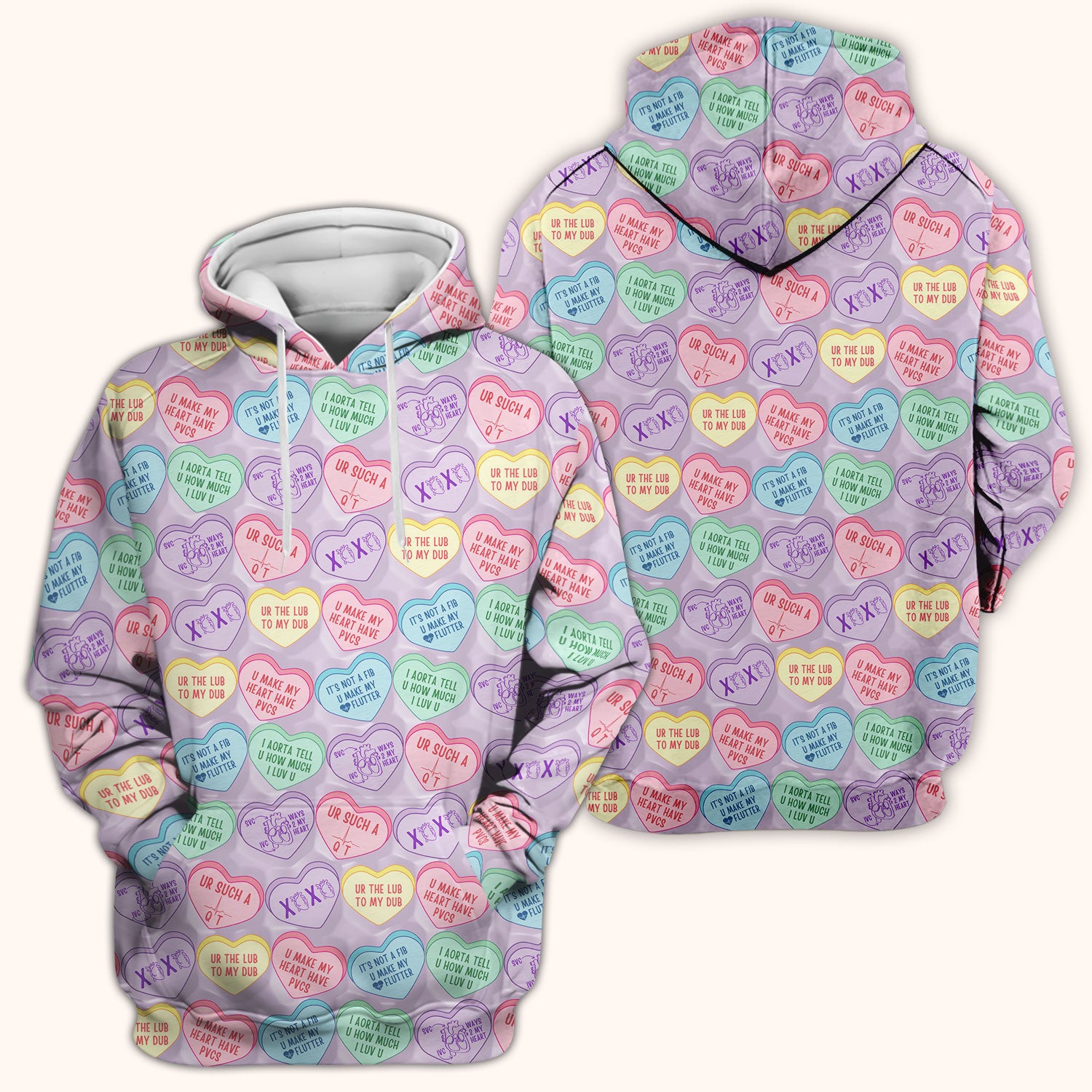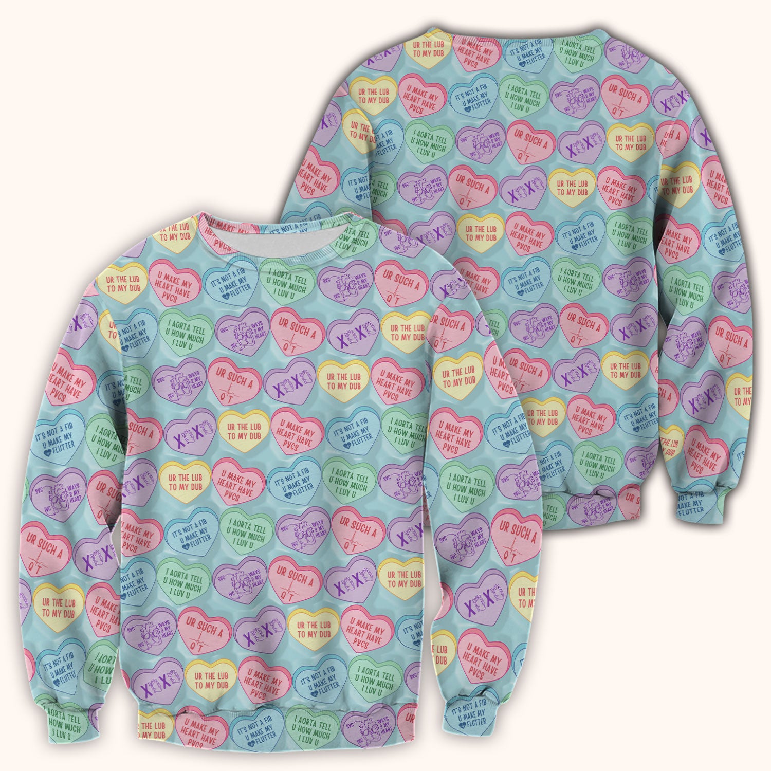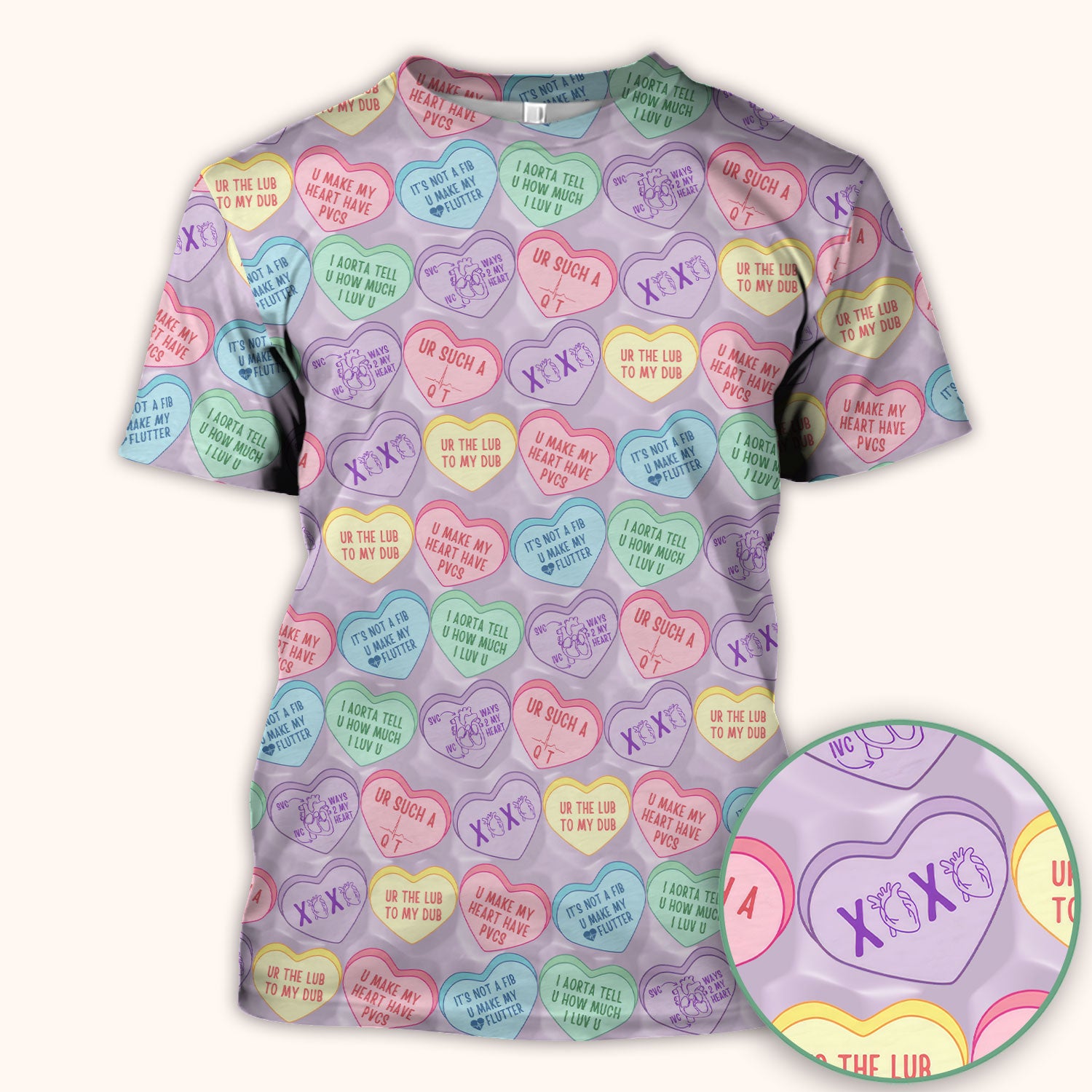 Medical Candy Heart Valentine Pattern Scrub Top, Fun Medical Pattern, Comfortable Scrubs for Nurses