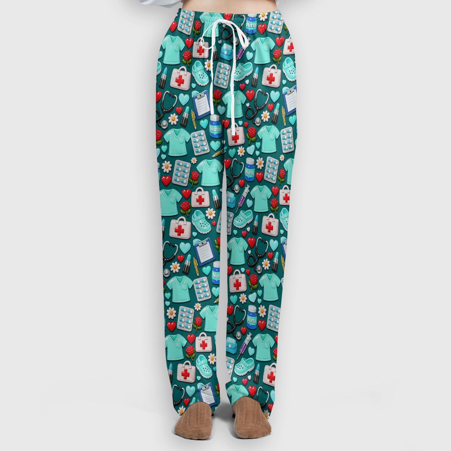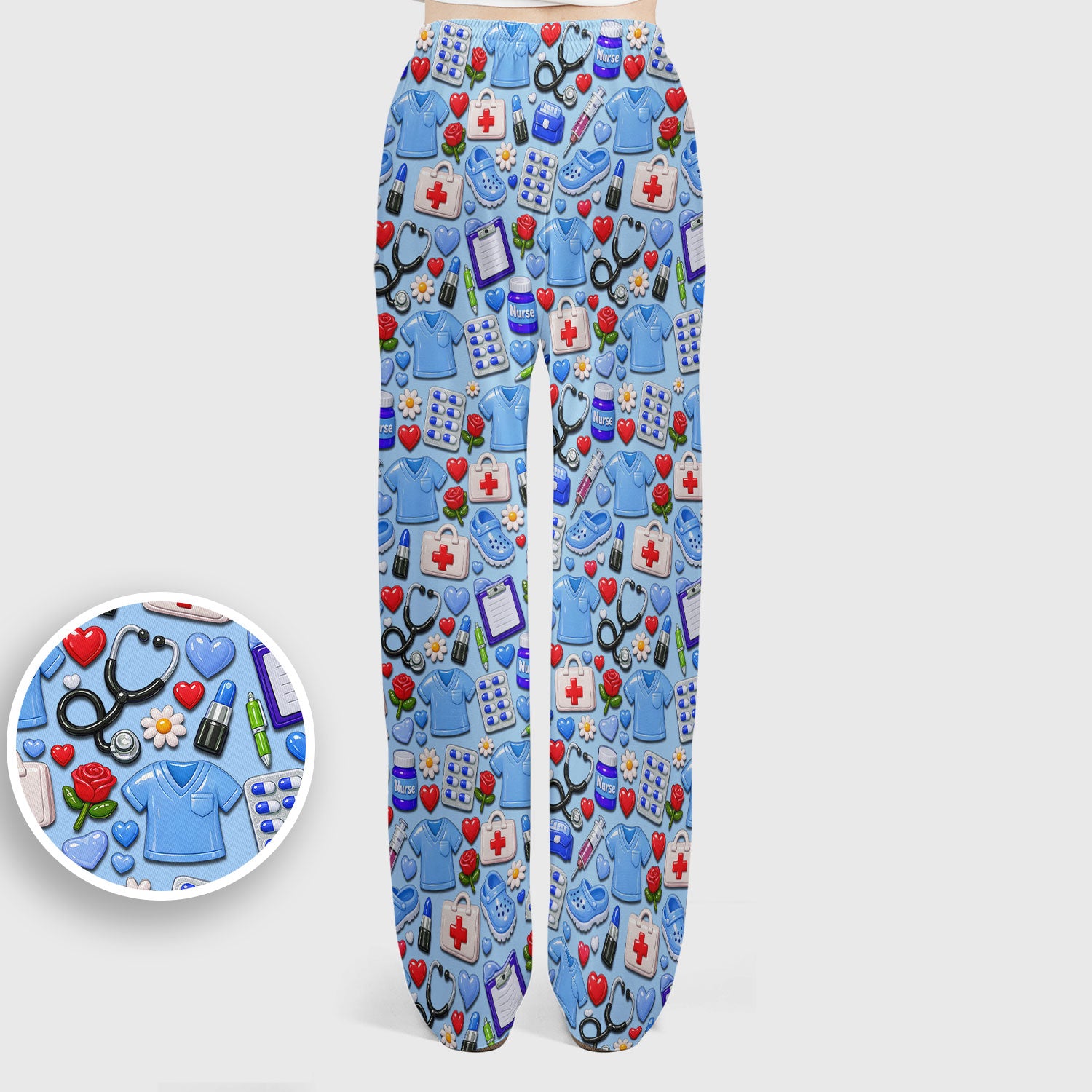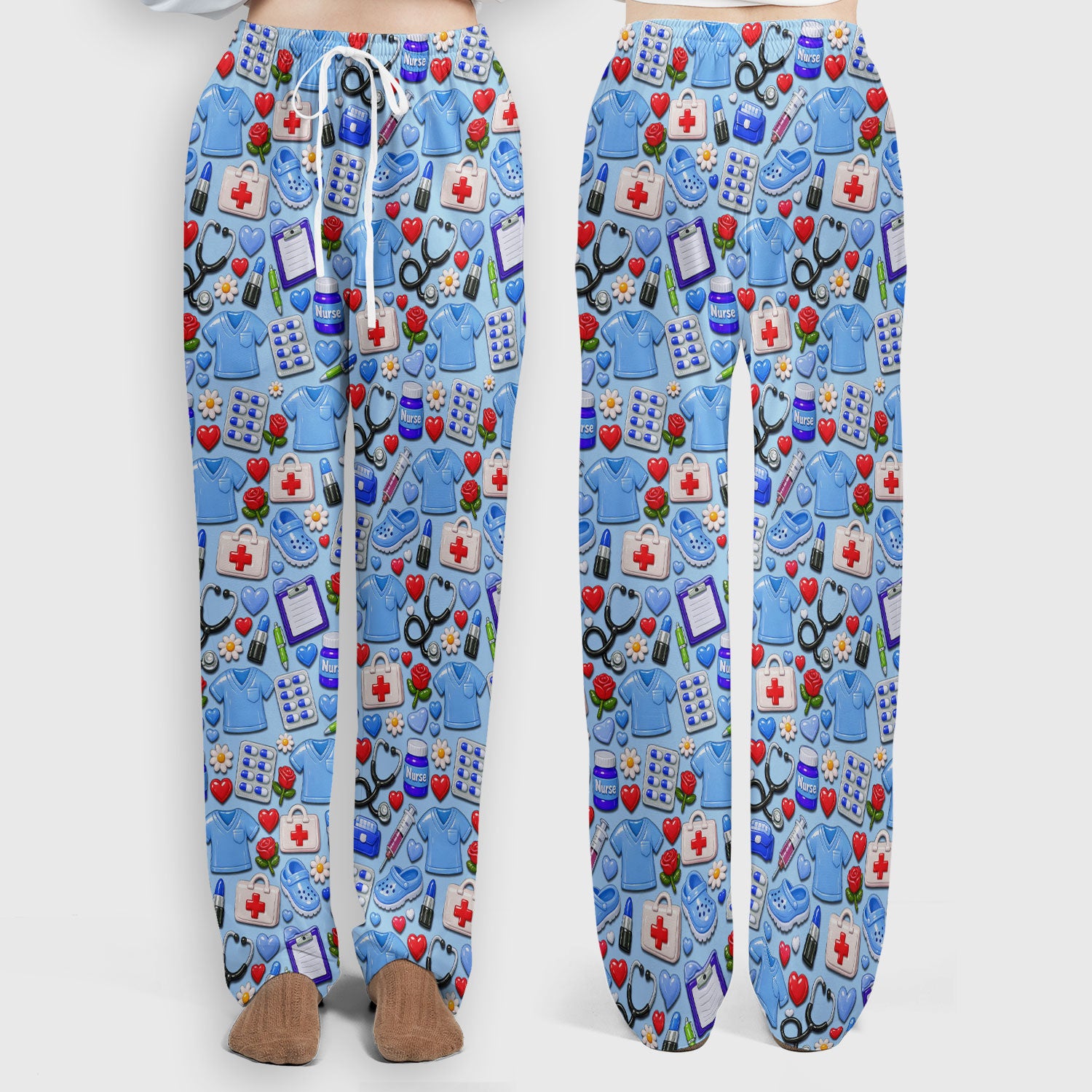 Medical Icons Scrub Set, Cute Pattern Nurse Shirt, Breathable Fabrics Nursing Uniform