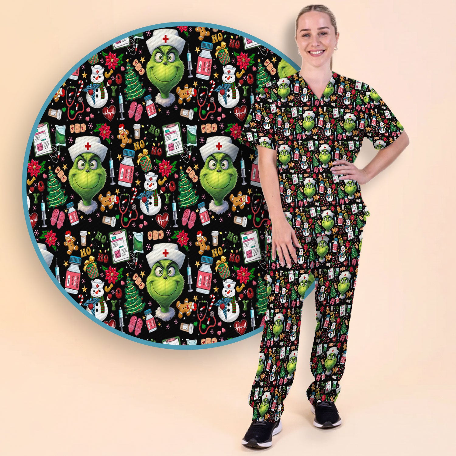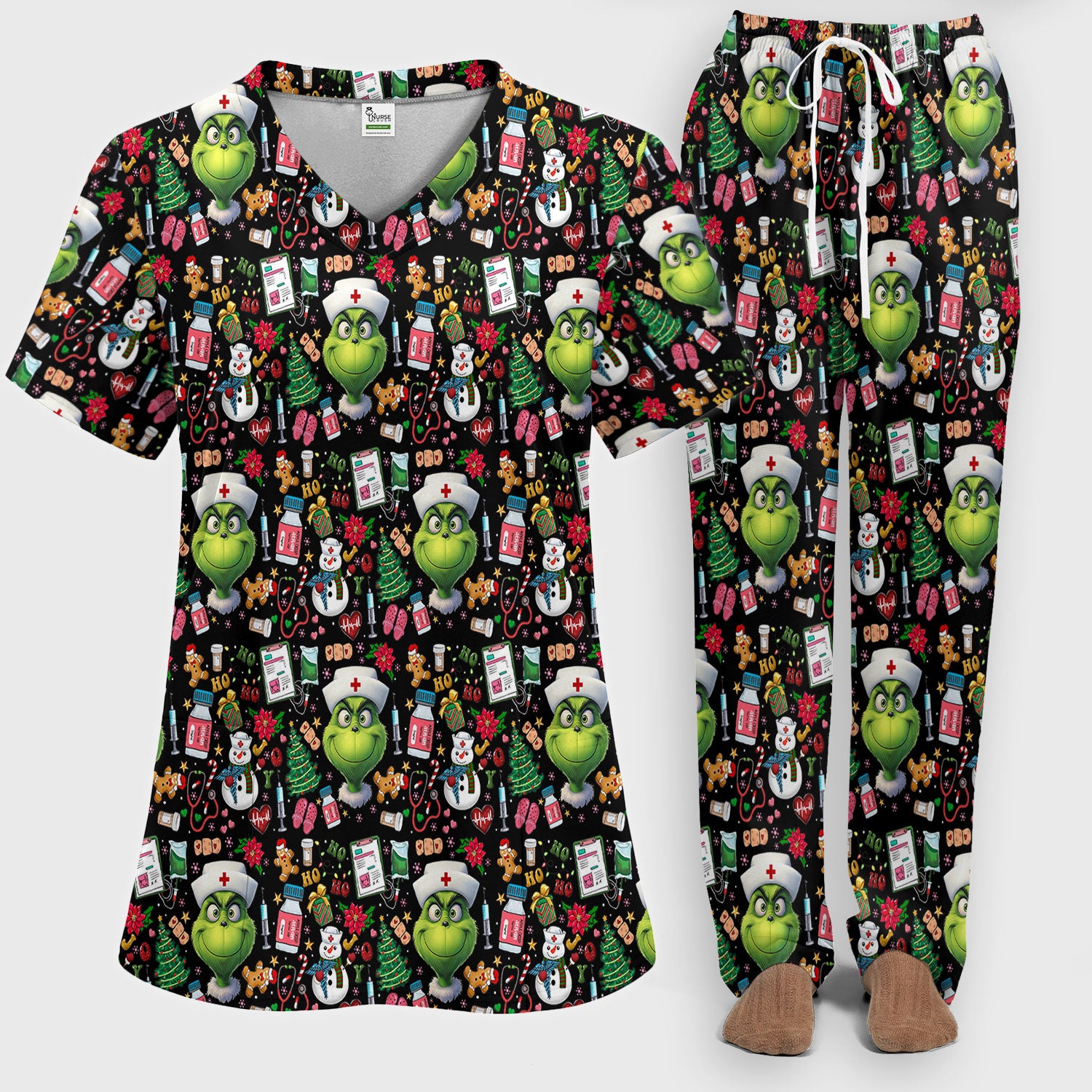 Merry Grinchmas Scrub Set for Women - Comfortable Nursing Pants - Christmas Medical Uniform - Holiday Ugly Sweater Gift for Her
