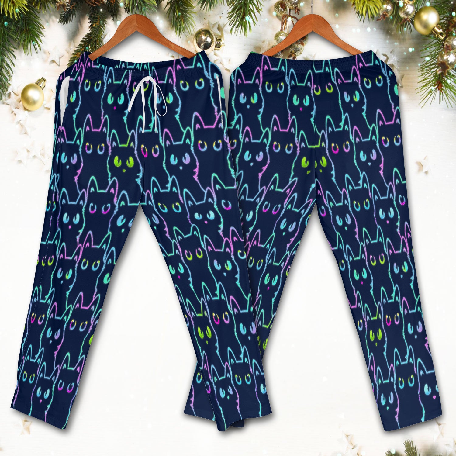 Neon Cat Pattern Scrub Set, Black Cat Scrub Shirt, Breathable Fabrics Nursing Uniform