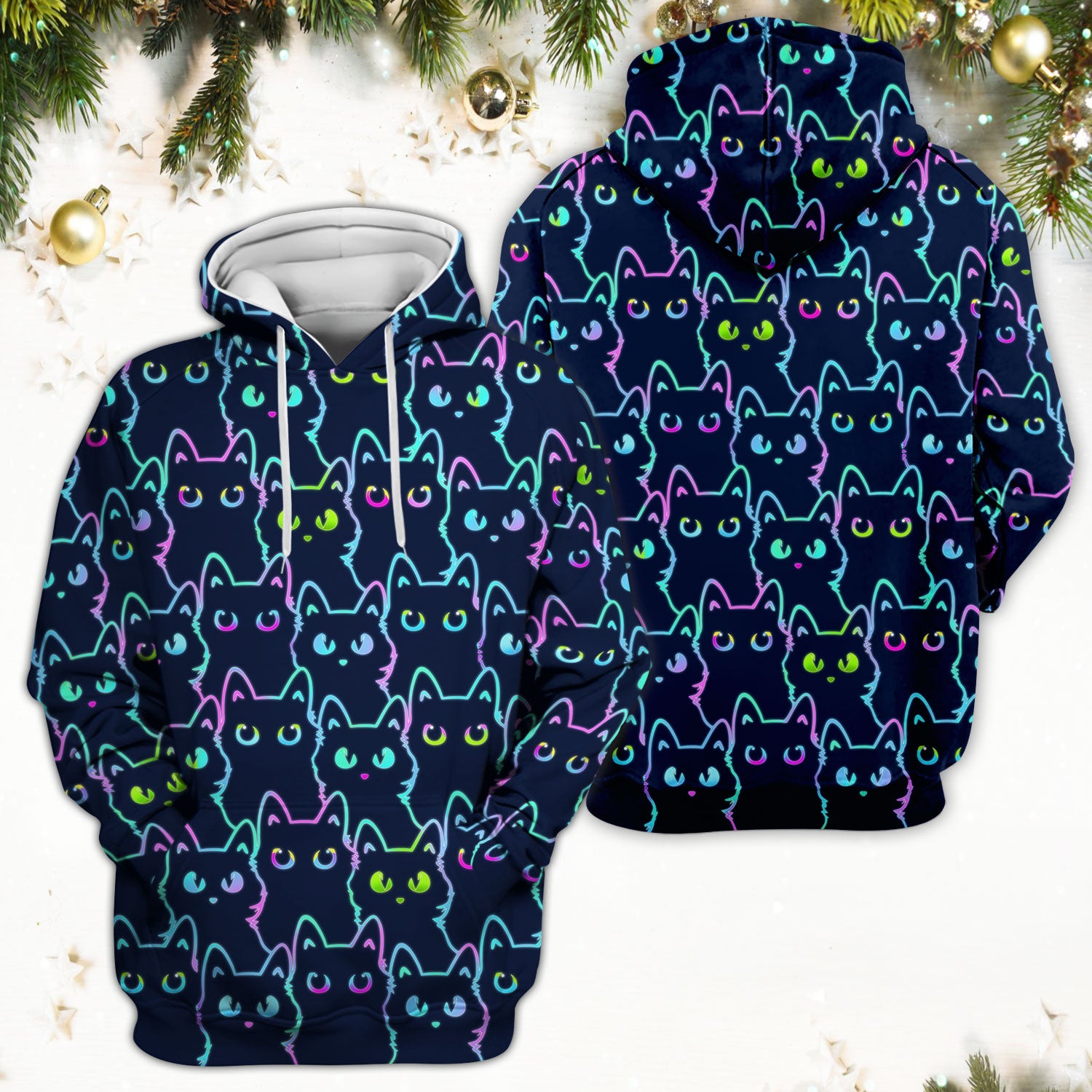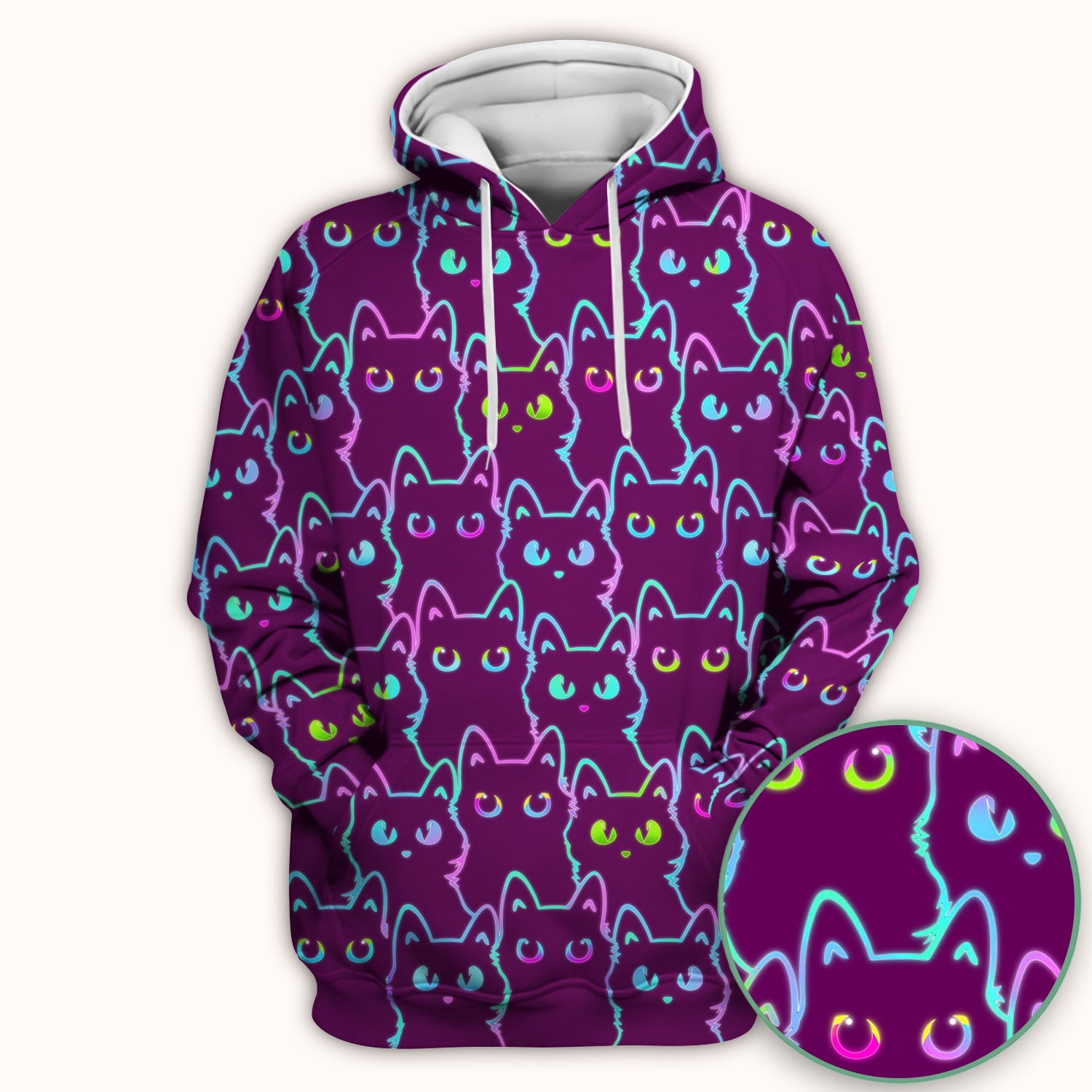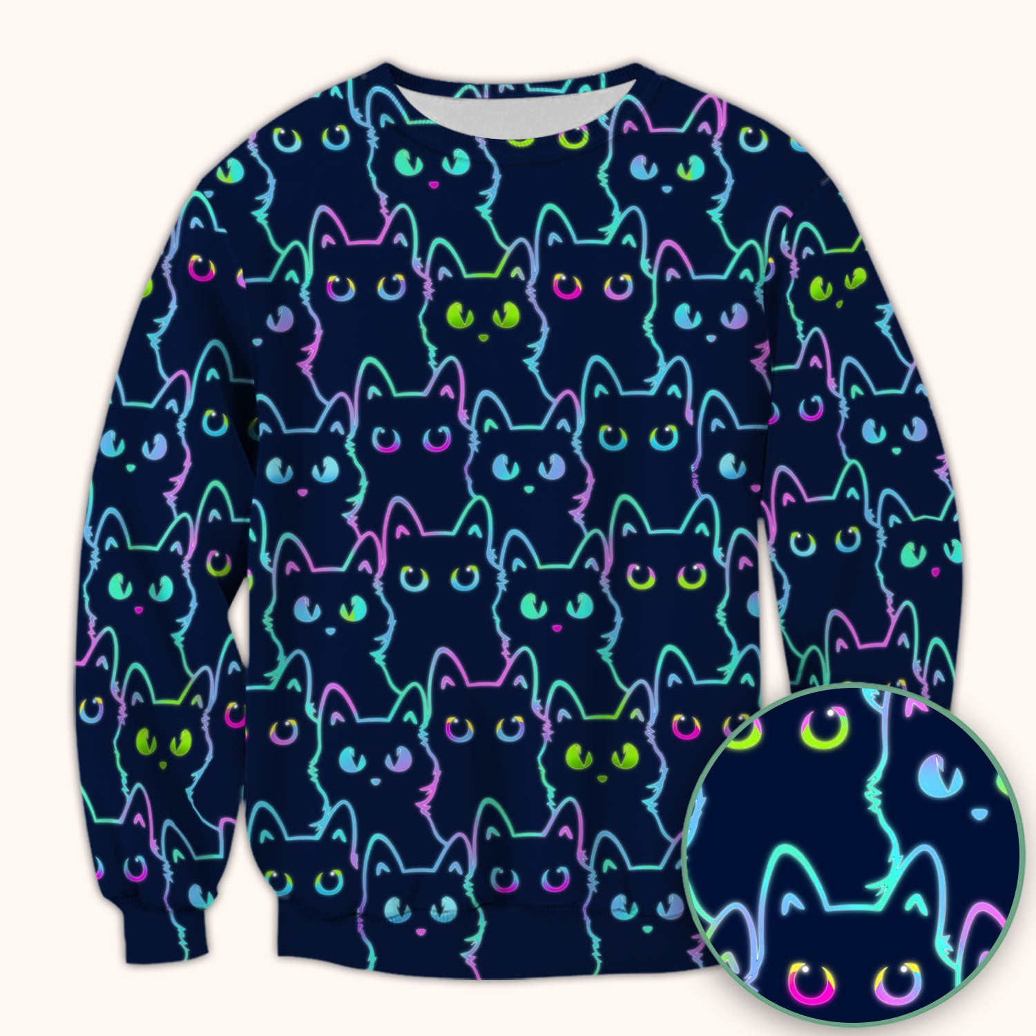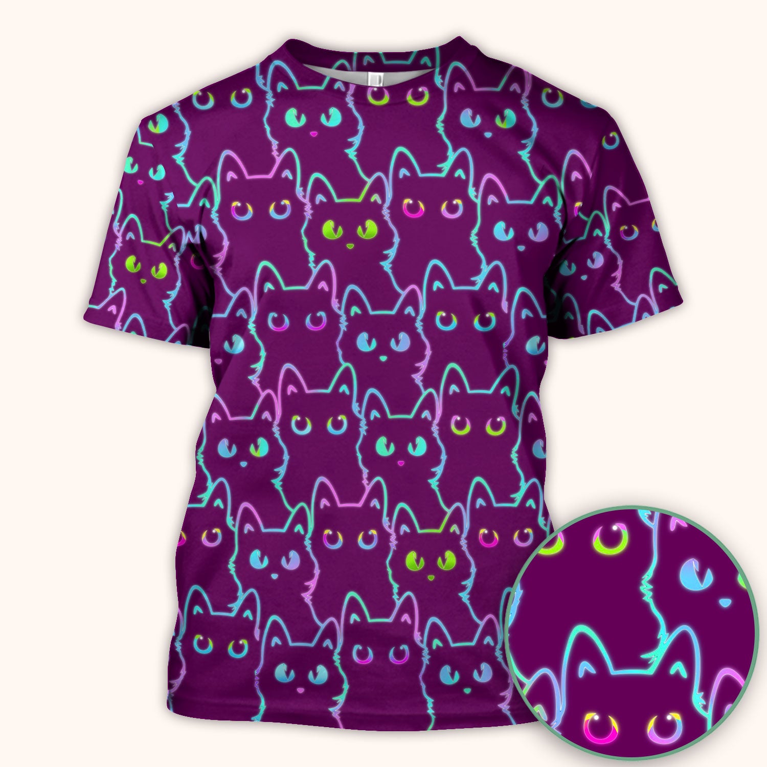 Neon Cat Pattern Scrub Top, Black Cat Scrub Shirt, Breathable Fabrics Nursing Uniform