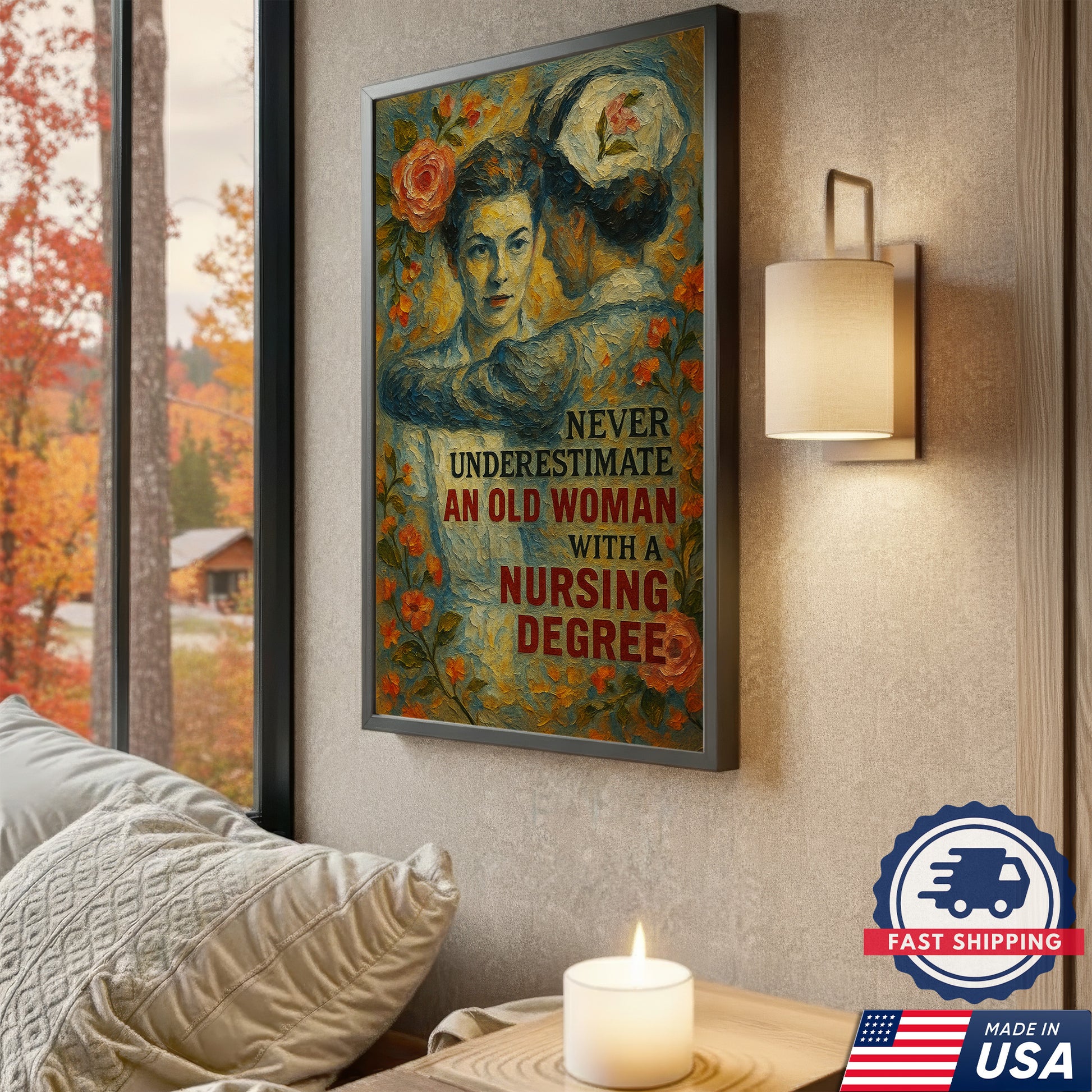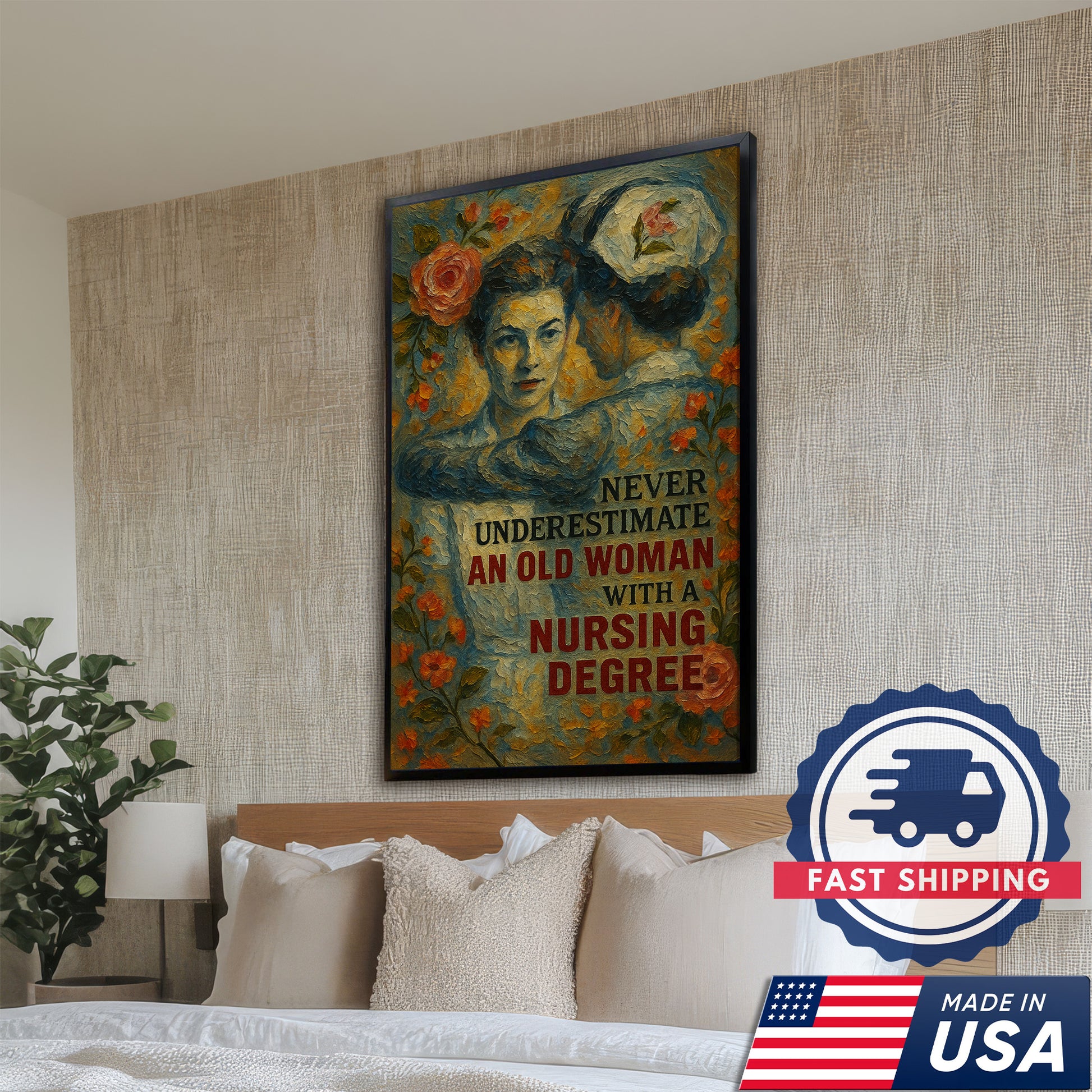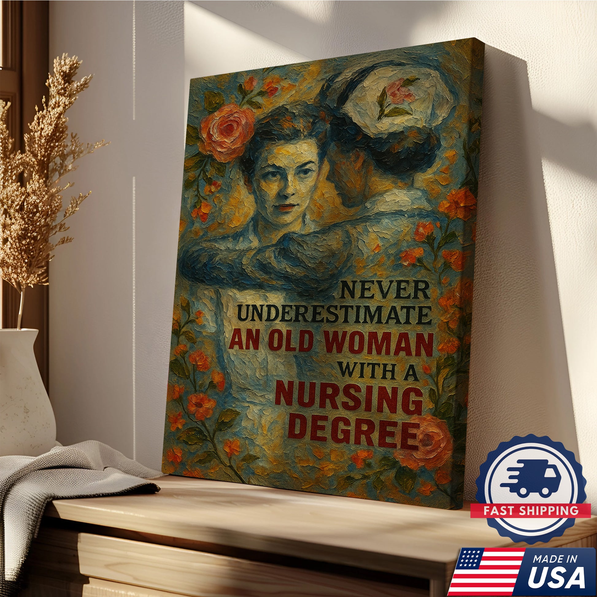 Nurse Canvas Wall Art, Nursing Degree Quote Vintage, Gift for RN LPN CNA Medical Staff