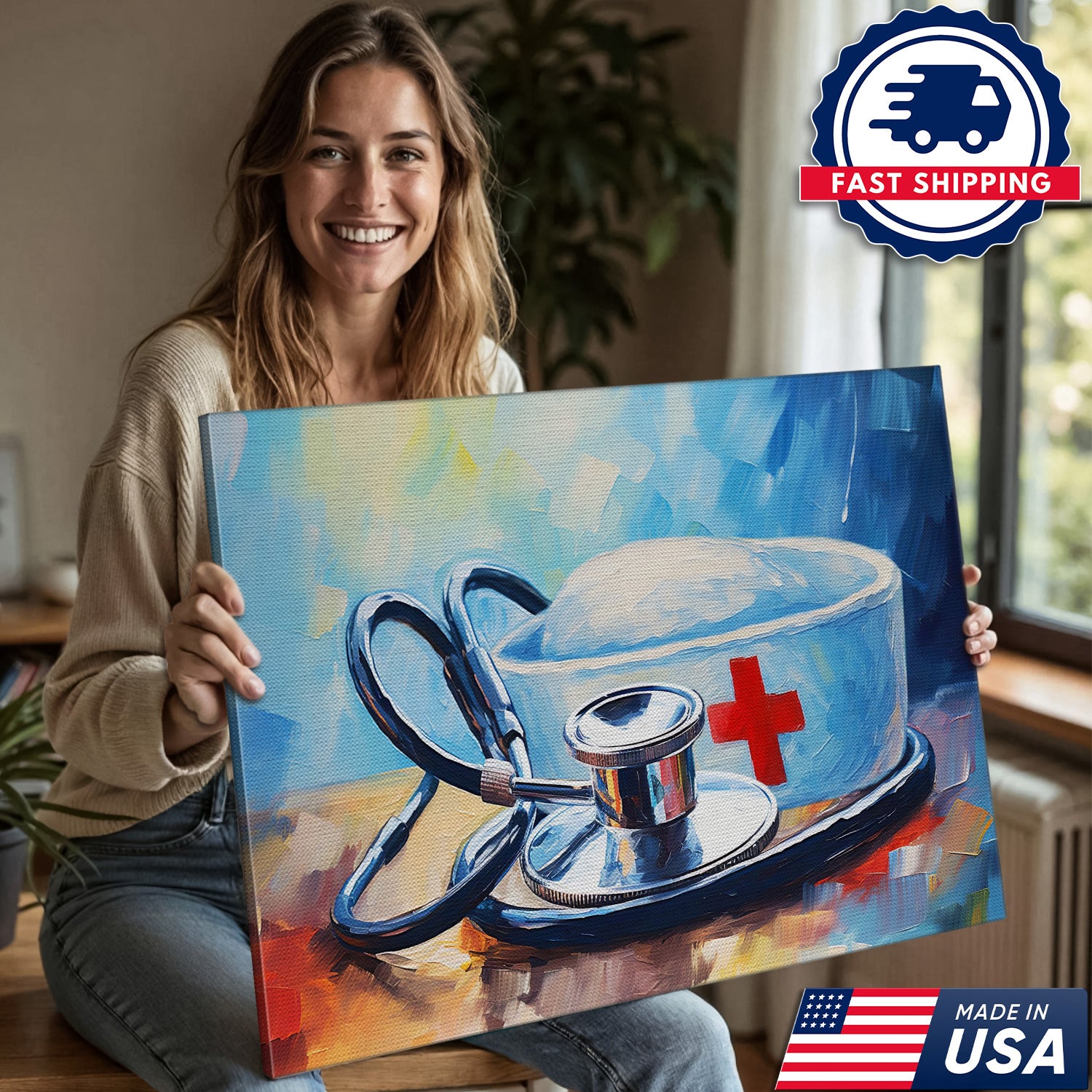 Nurse Hat and Stethoscope Canva, Medical Appreciation Gift for RN LPN CNA, Home Office Wall Decor