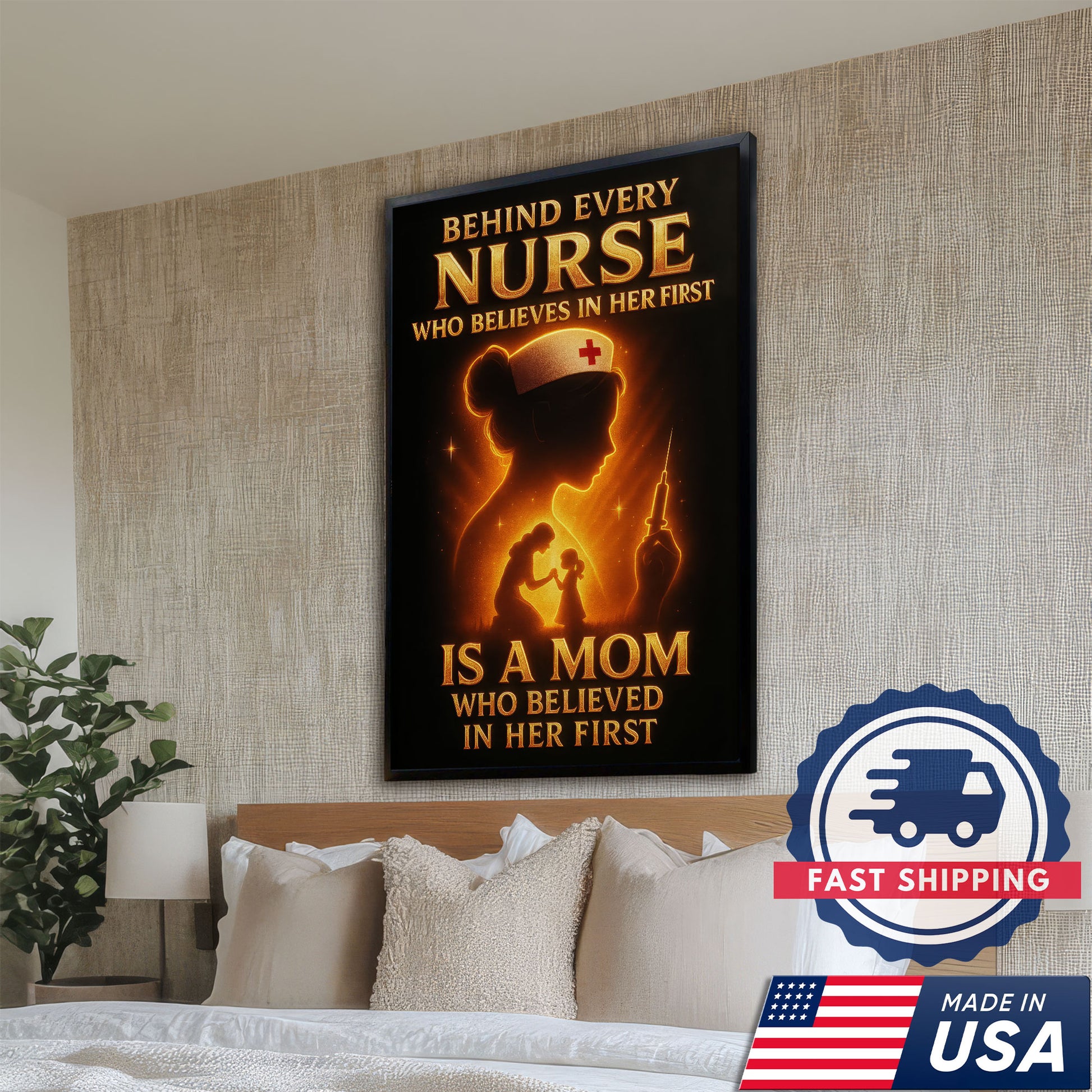 Nurse Mom Canvas Wall Art Inspirational Gift, Behind Every Nurse Quote, RN LPN CNA Gift