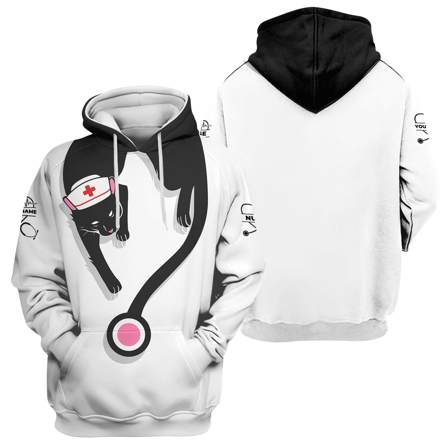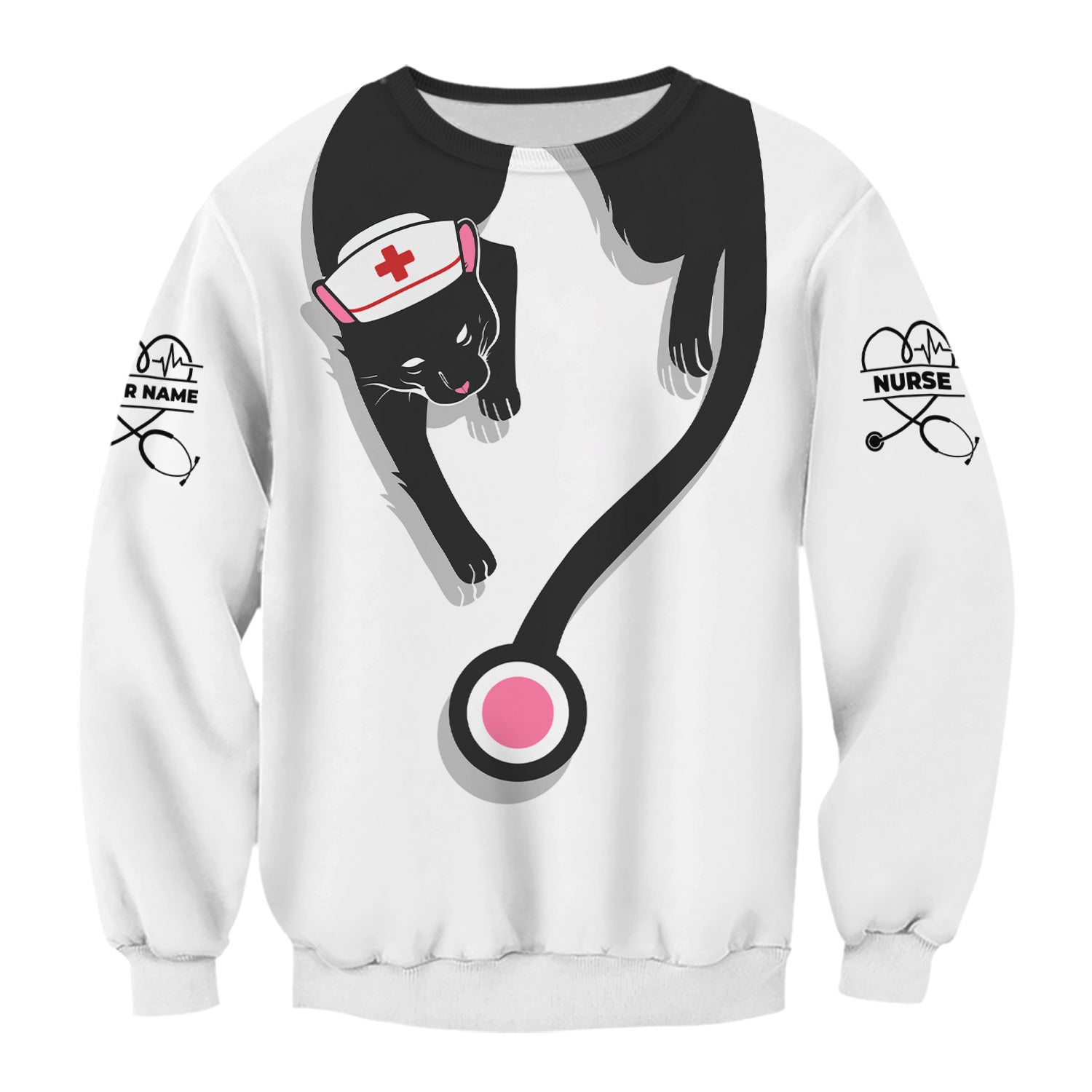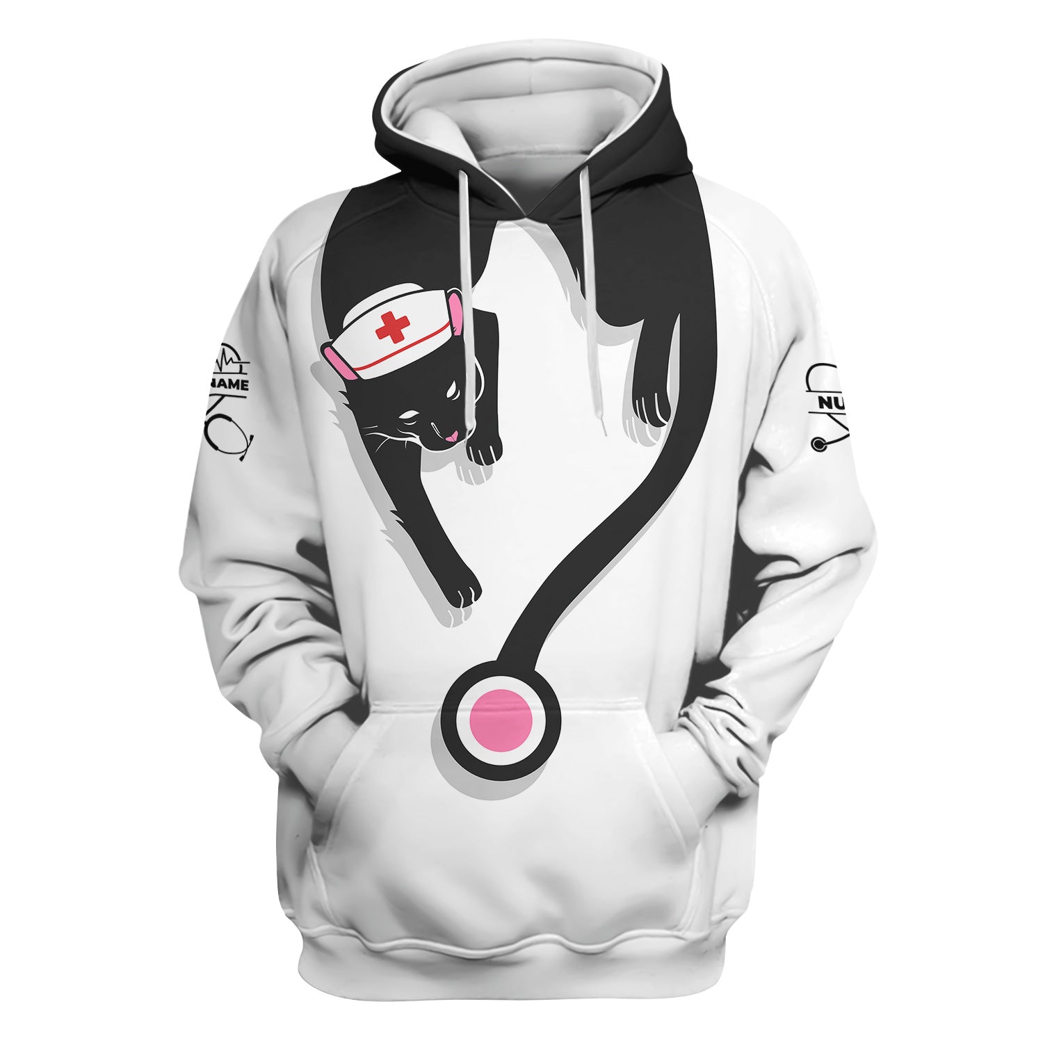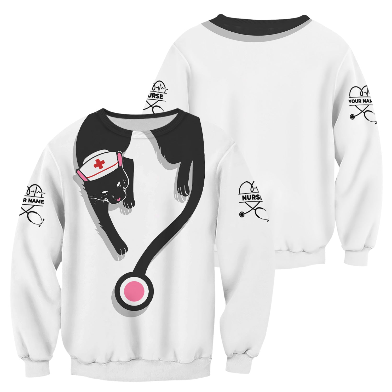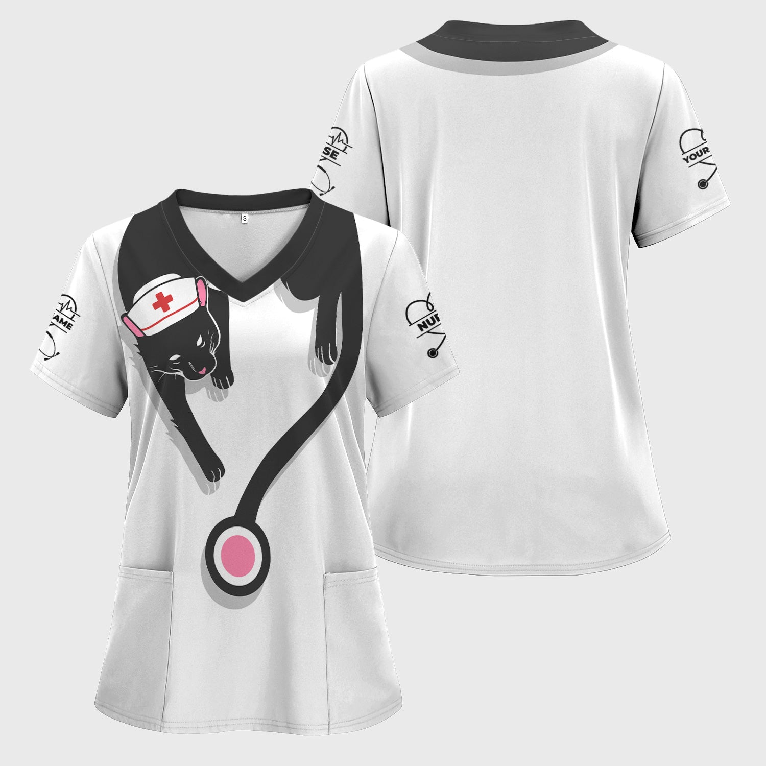 Personalized Black Cat Nurse Shirt - Funny Cat Lover Medical Tee for Women - Gift for RN LPN CNA