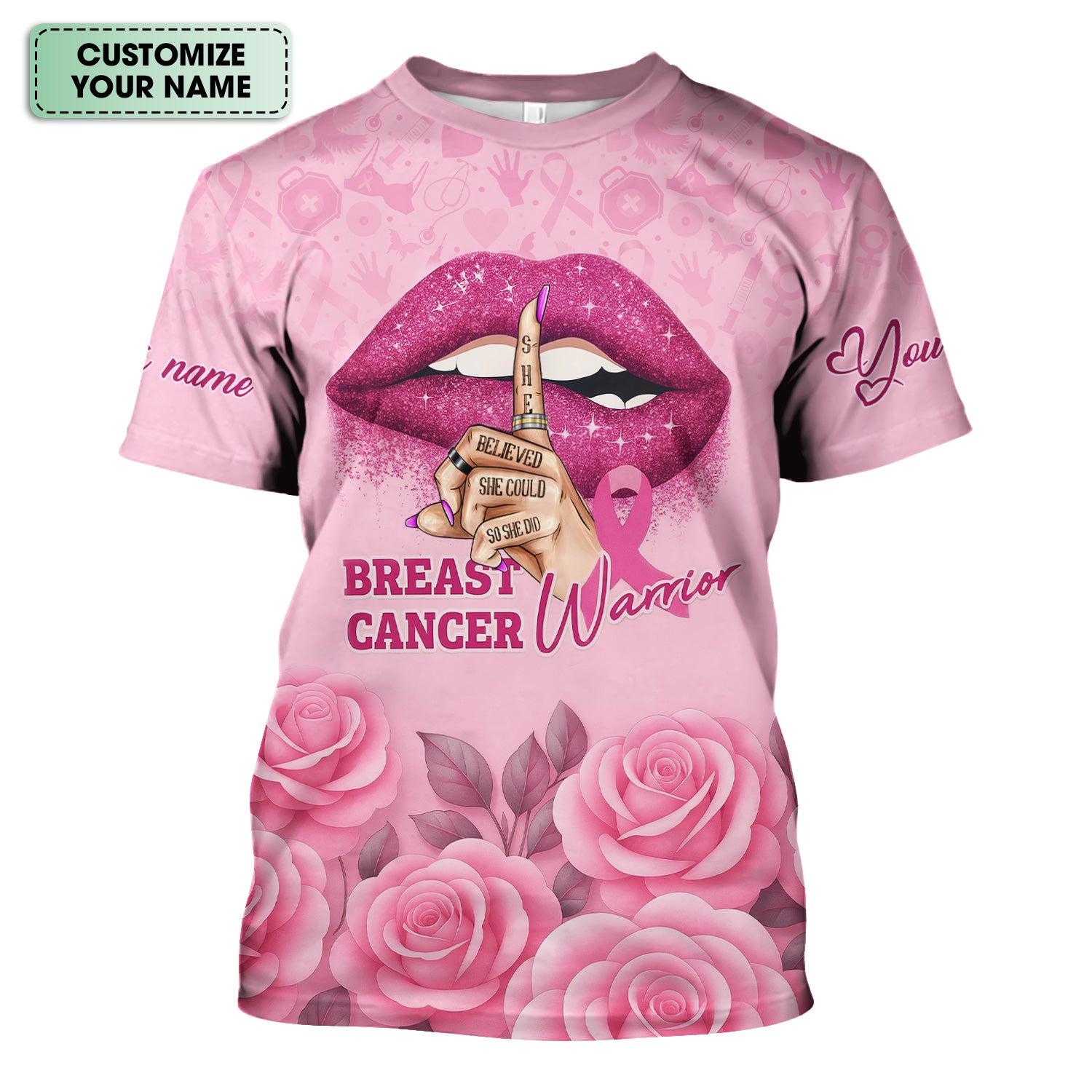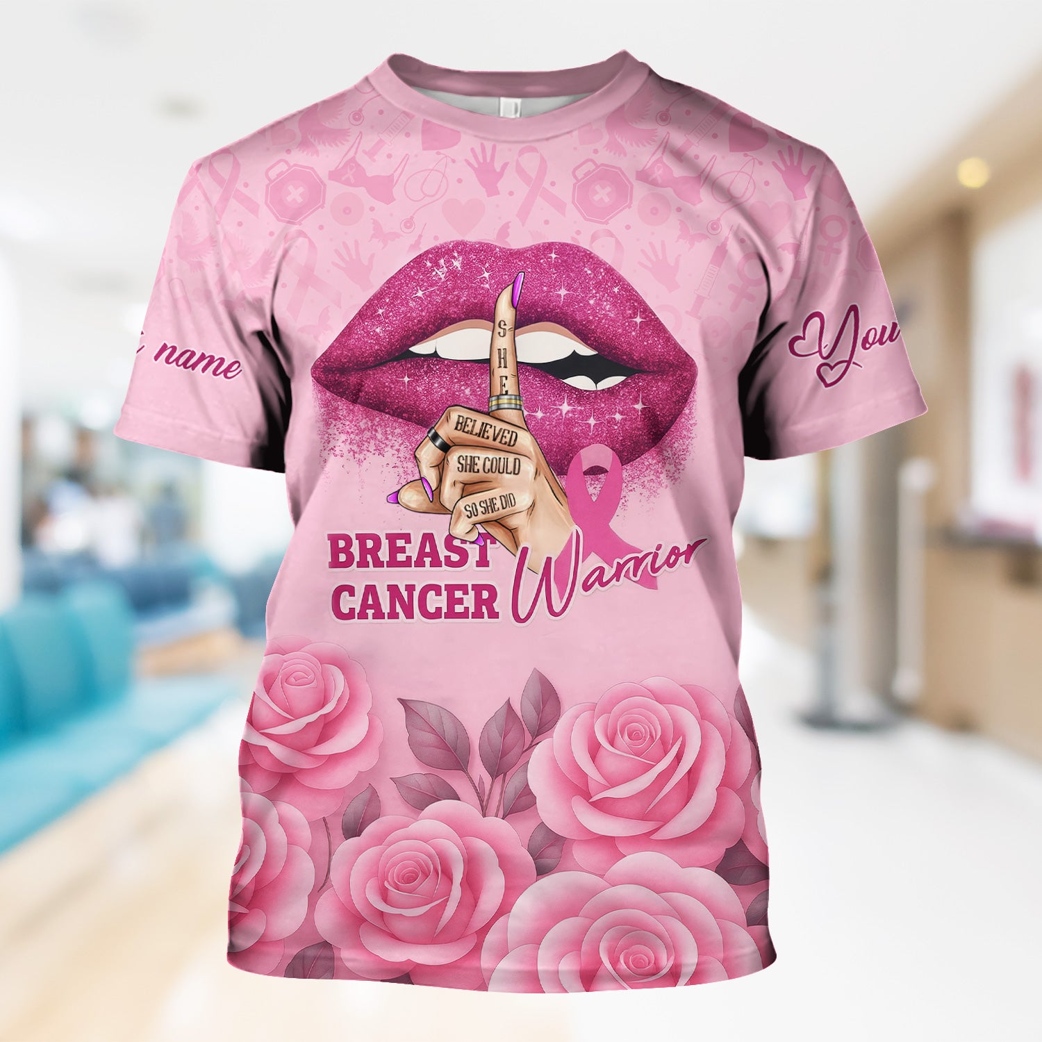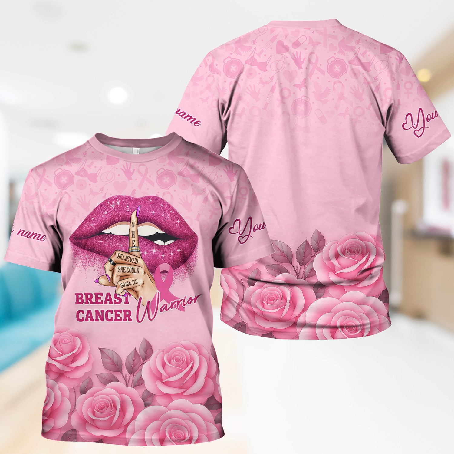 Personalized Breast Cancer Warrior Shirt - She Believed She Could Pink Ribbon Design - Gift for Women RN LPN CNA
