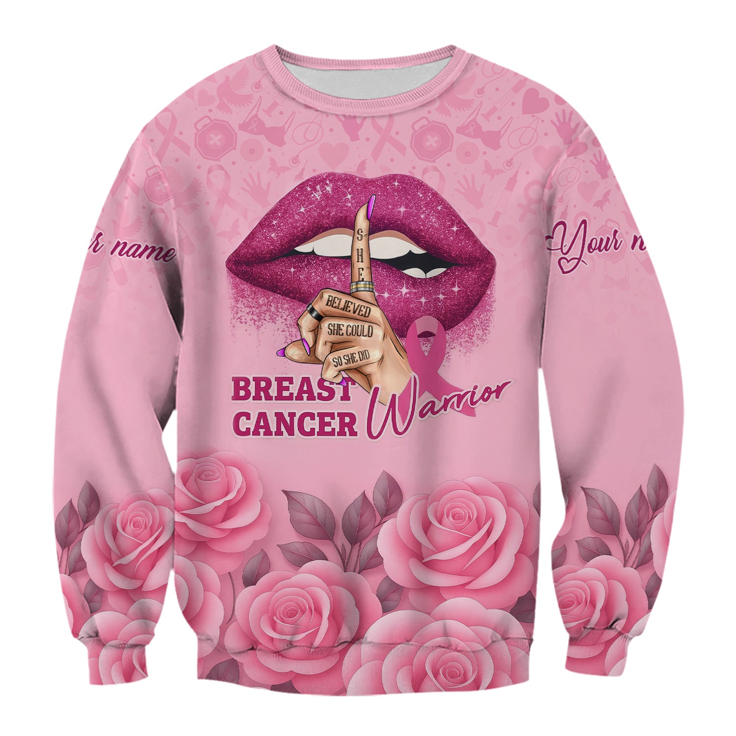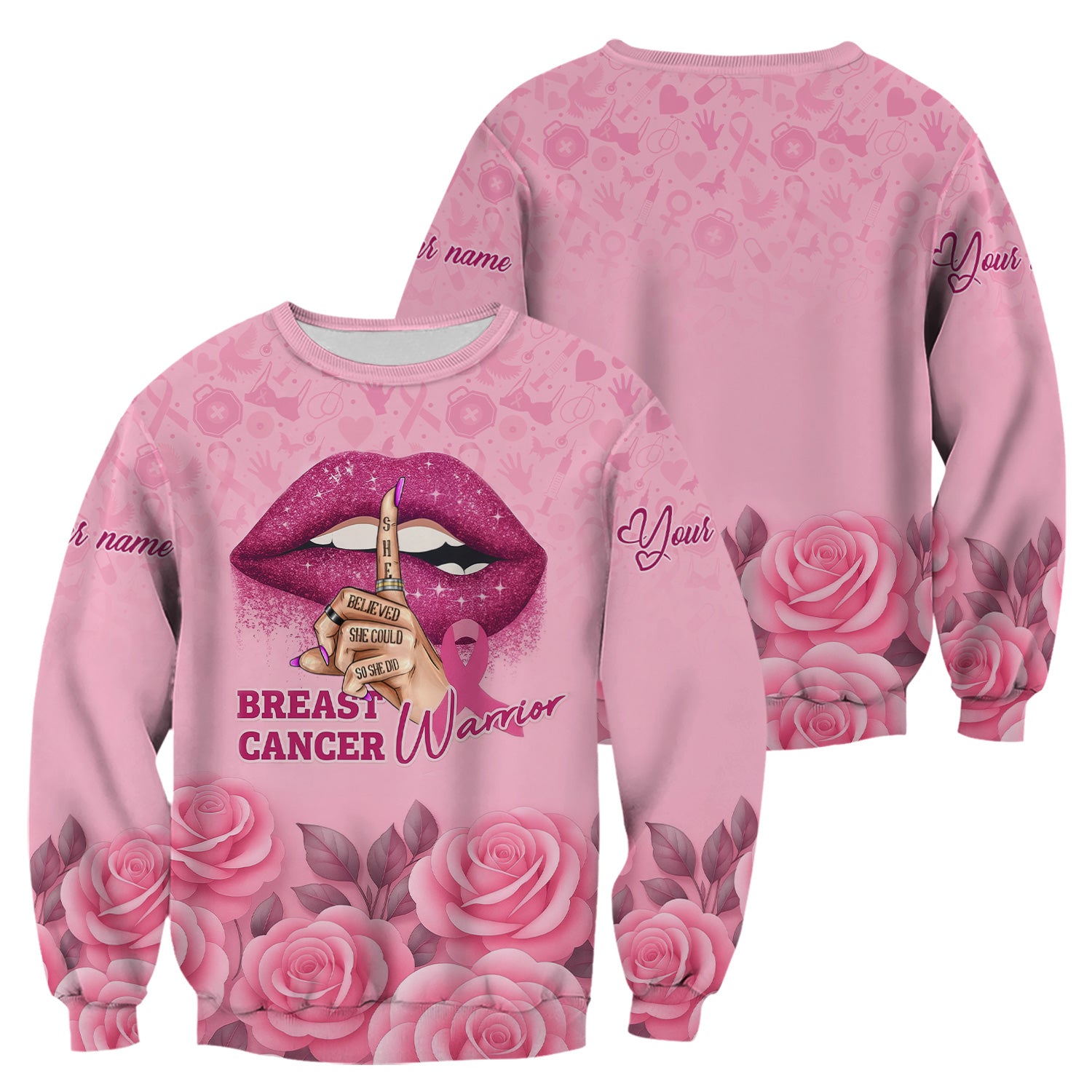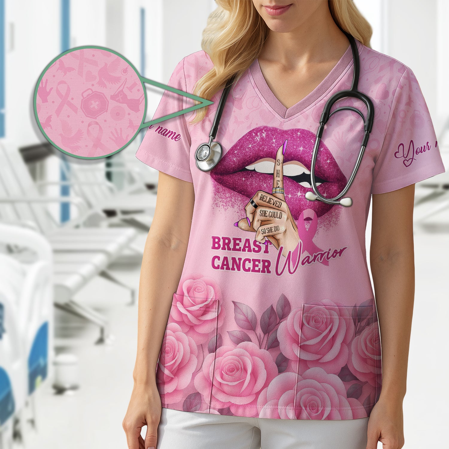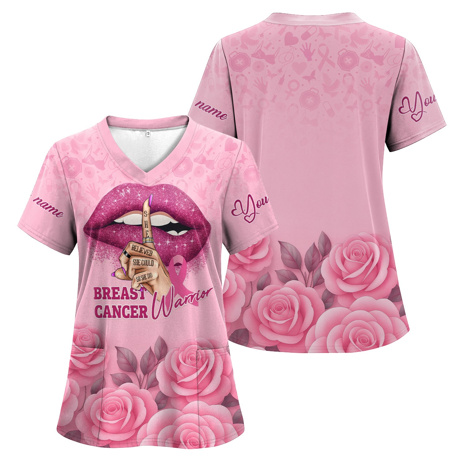 Personalized Breast Cancer Warrior Shirt - She Believed She Could Pink Ribbon Design - Gift for Women RN LPN CNA