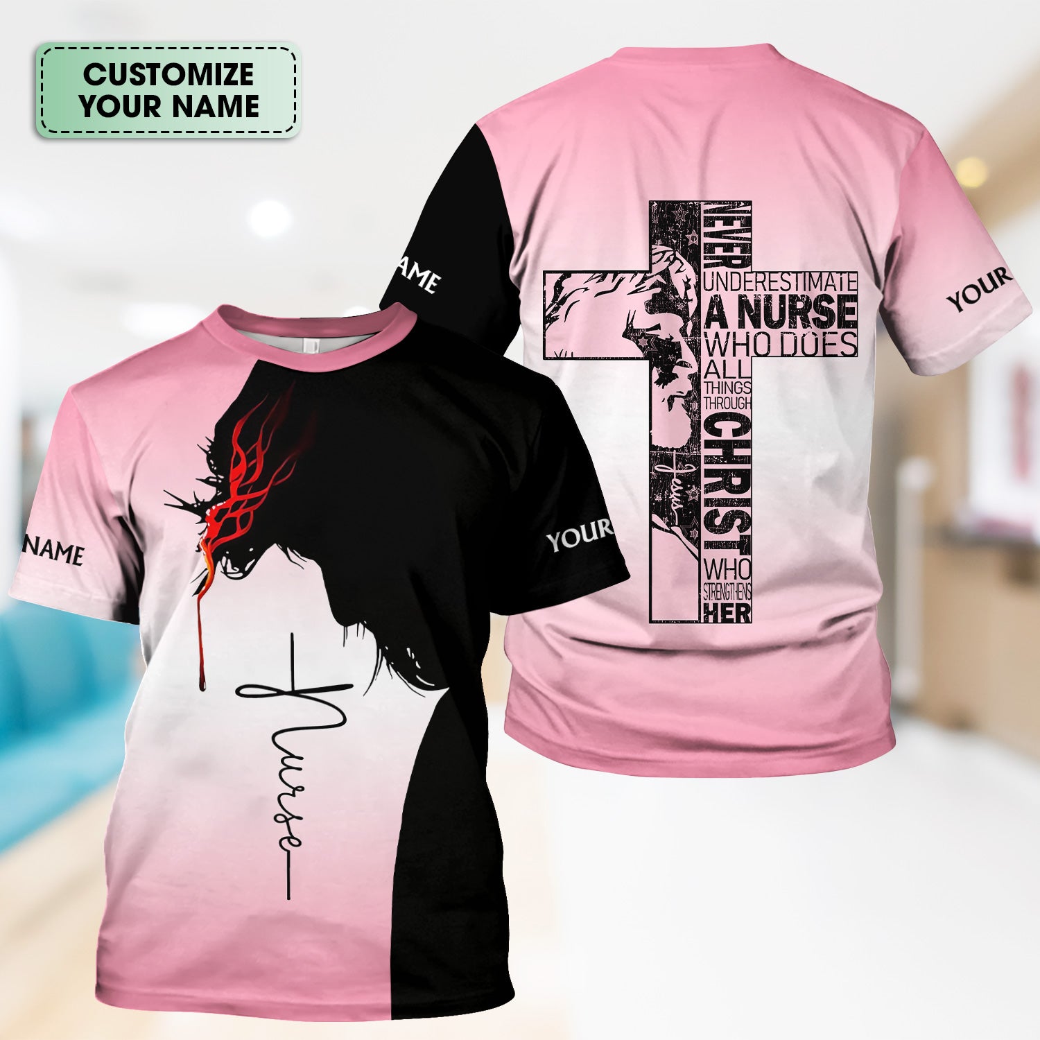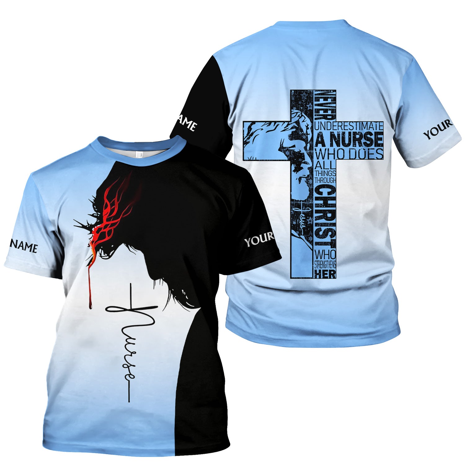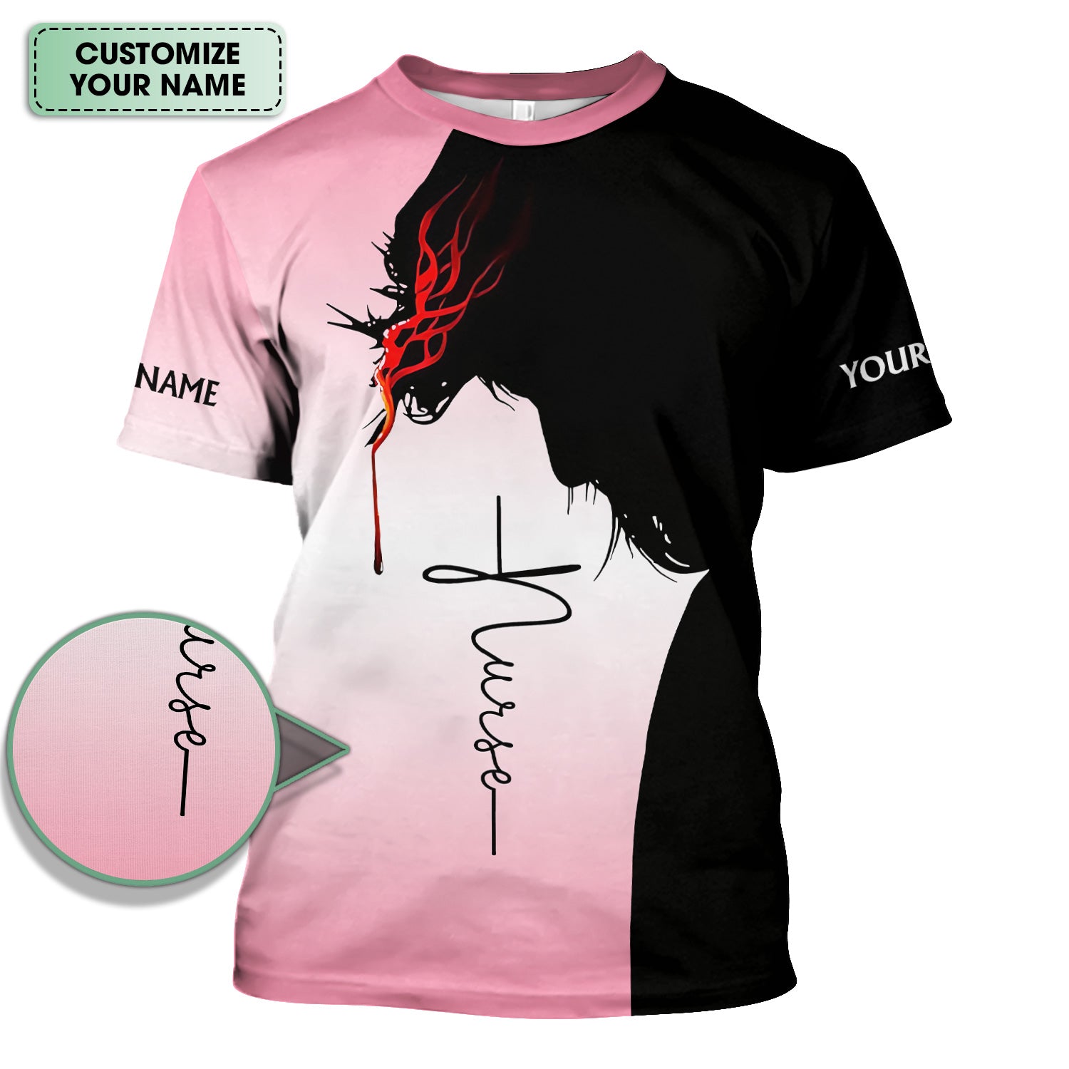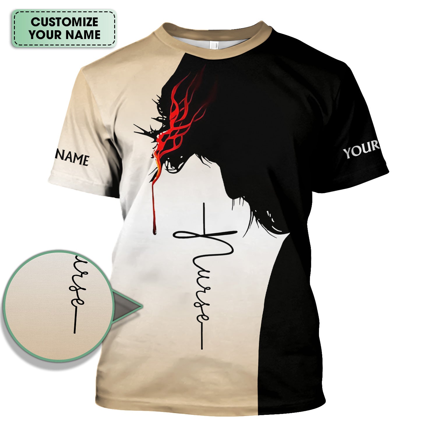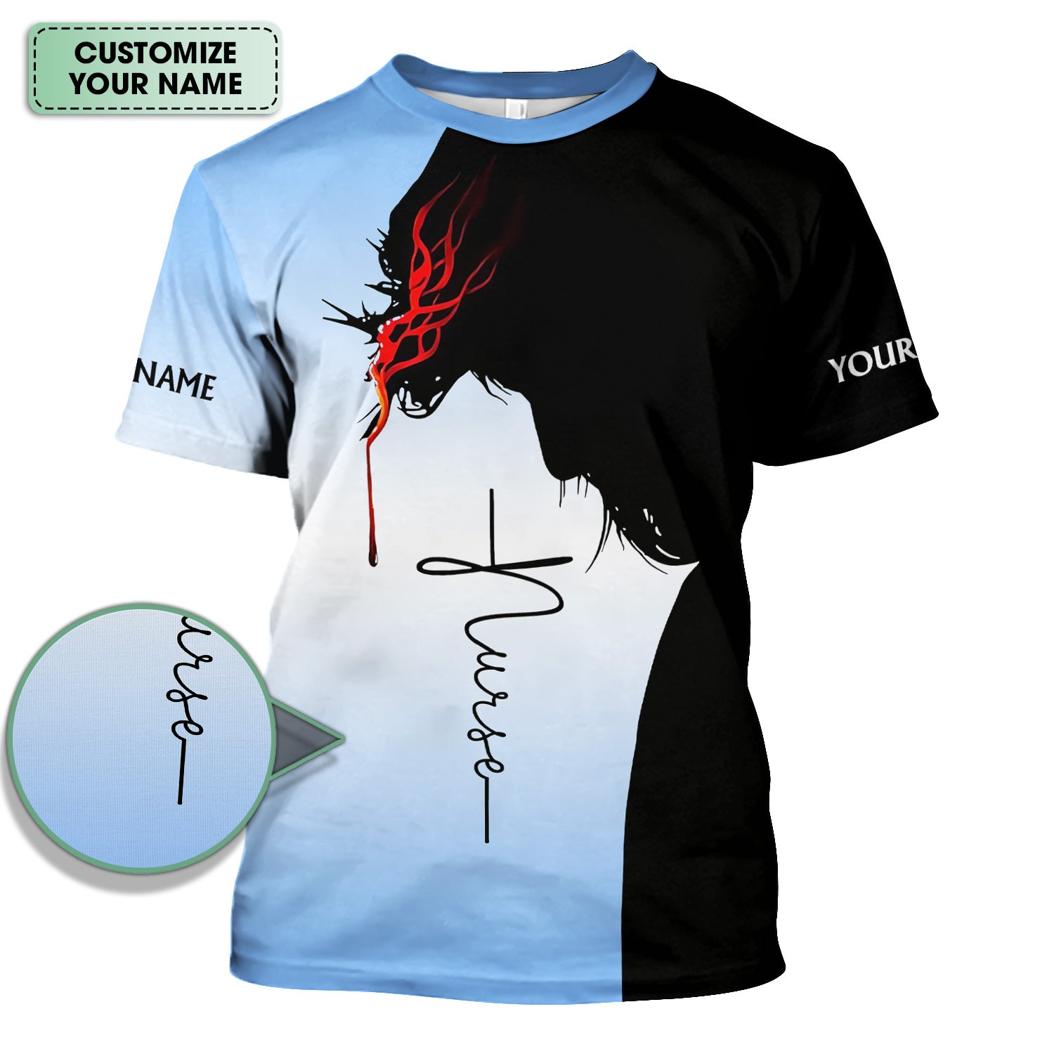 Personalized Christian Nurse Scrub Top - Christian Cross & Jesus Faith Design - Gift for RN LPN CNA