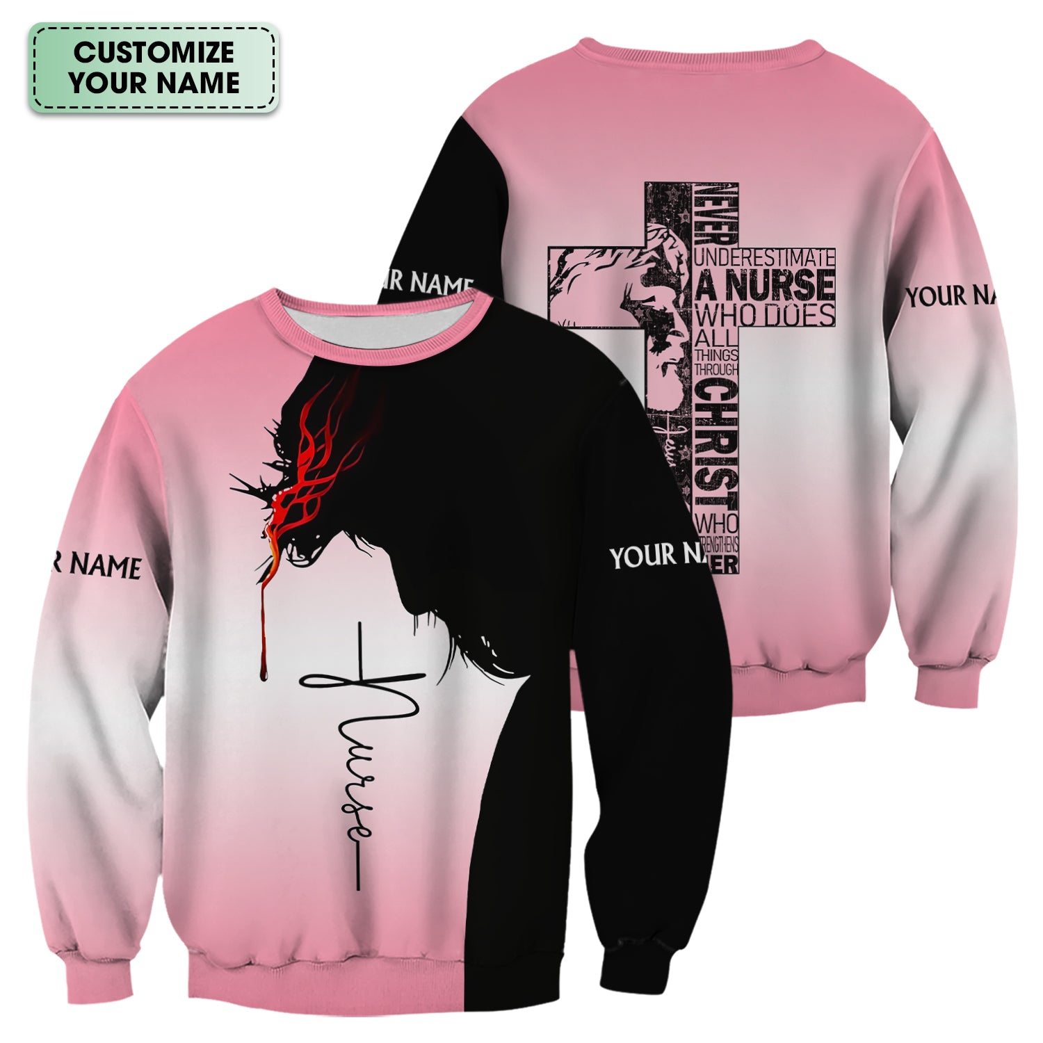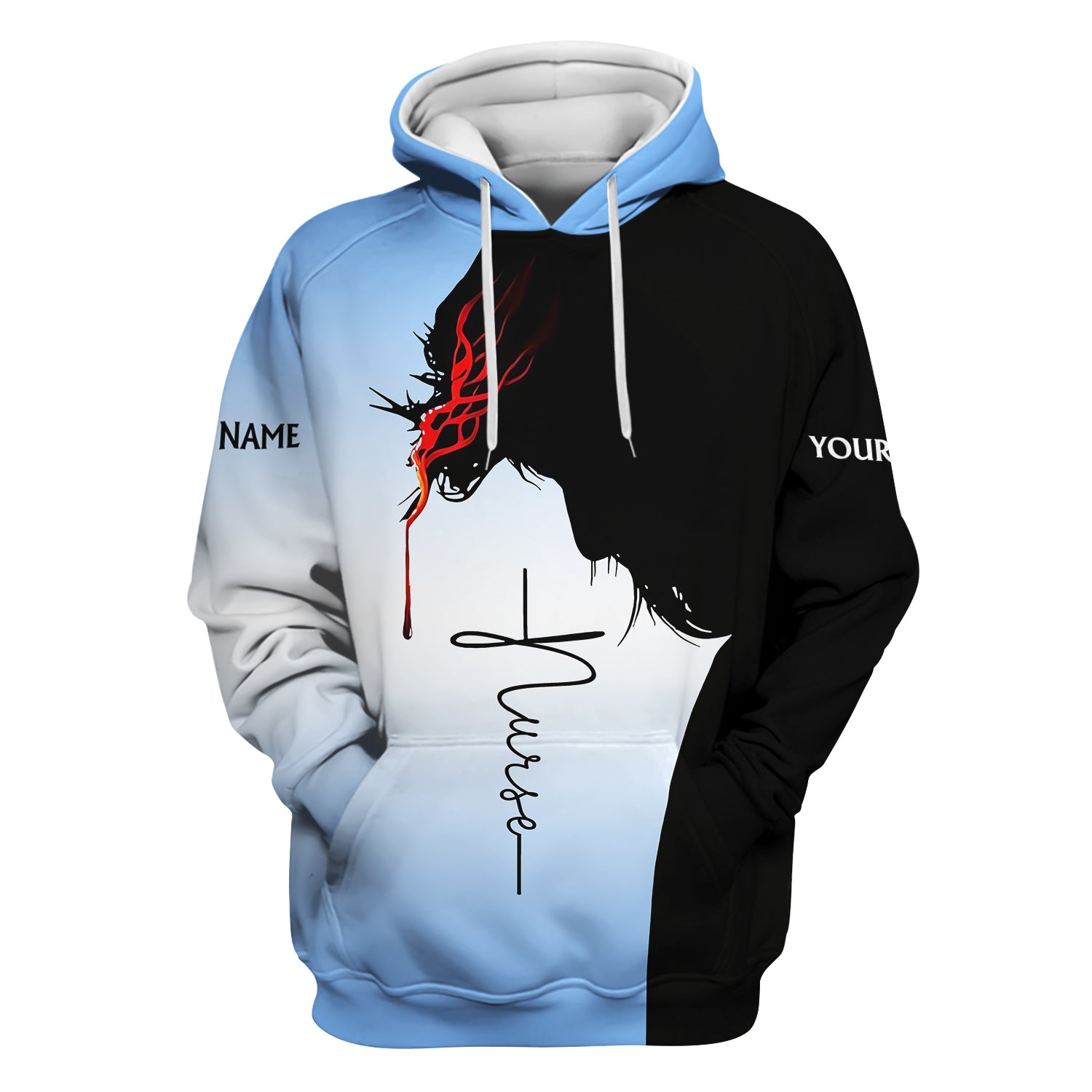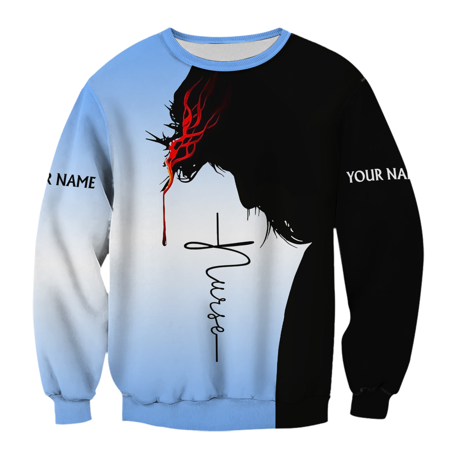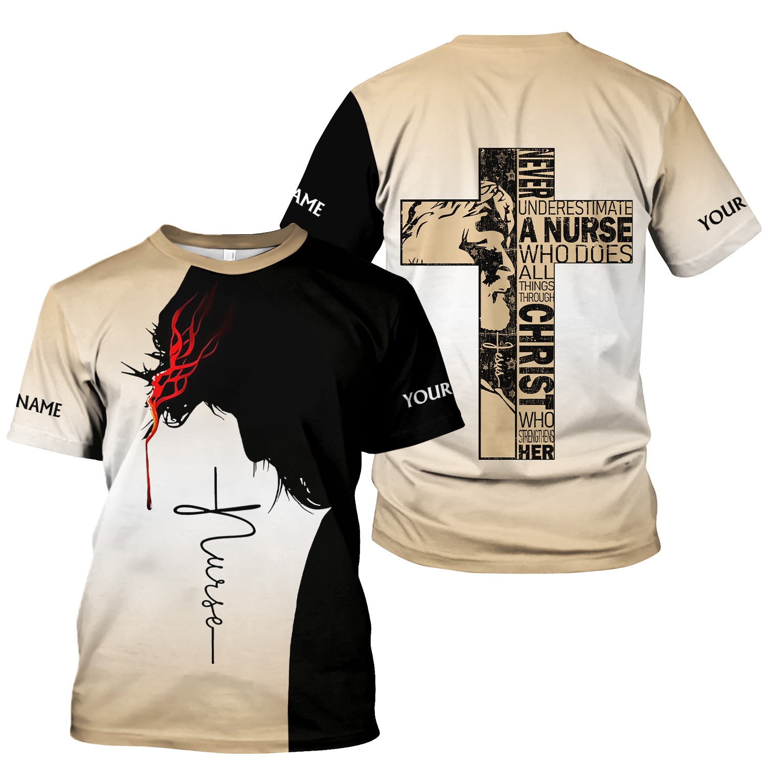 Personalized Christian Nurse Scrub Top - Christian Cross & Jesus Faith Design - Gift for RN LPN CNA