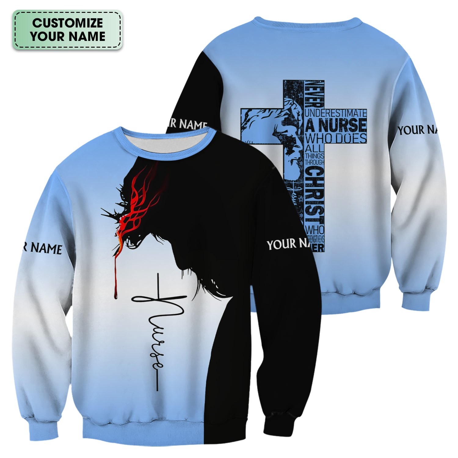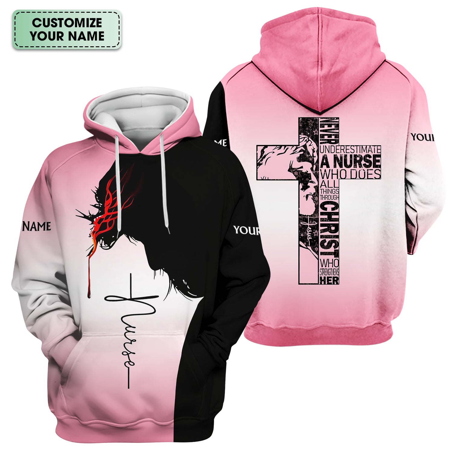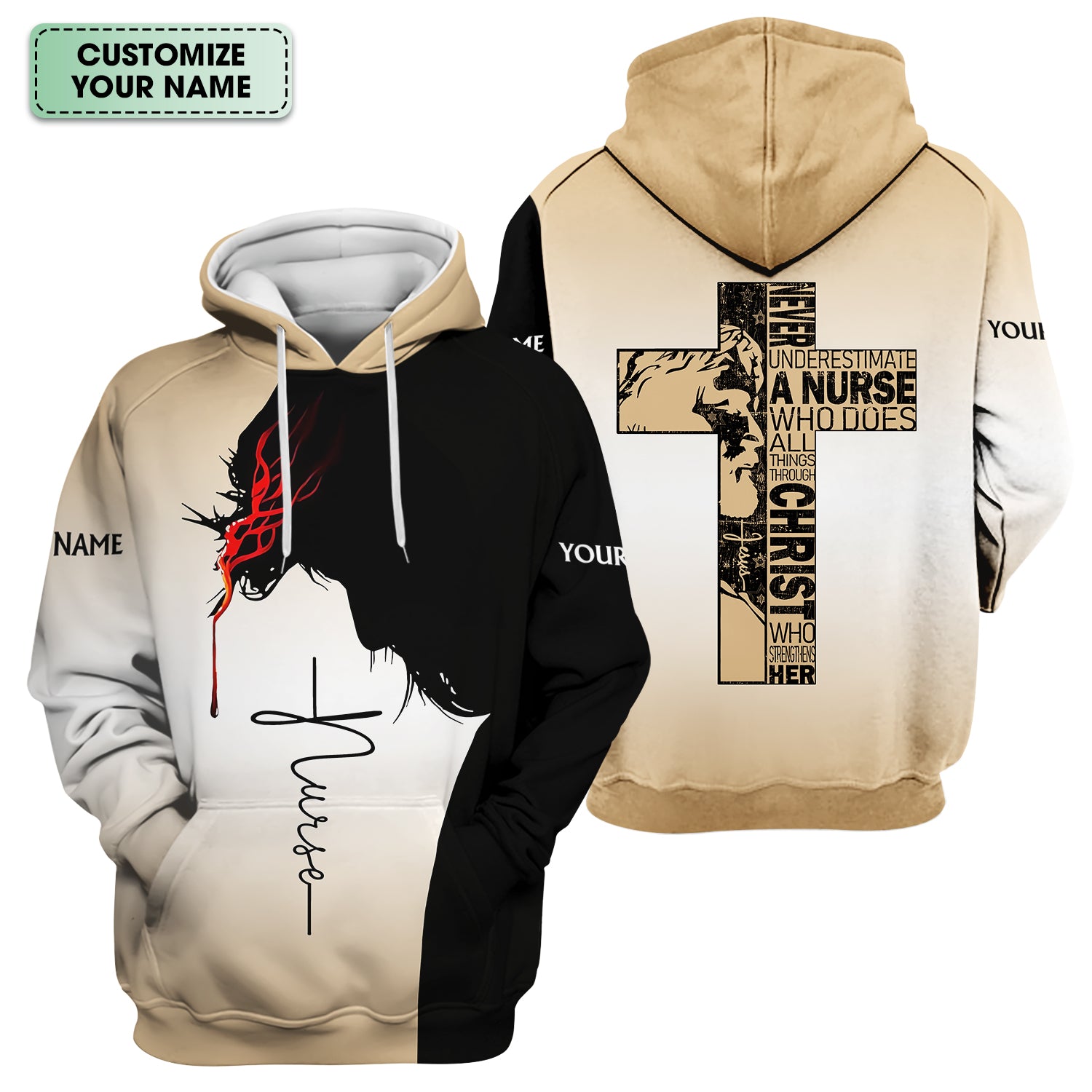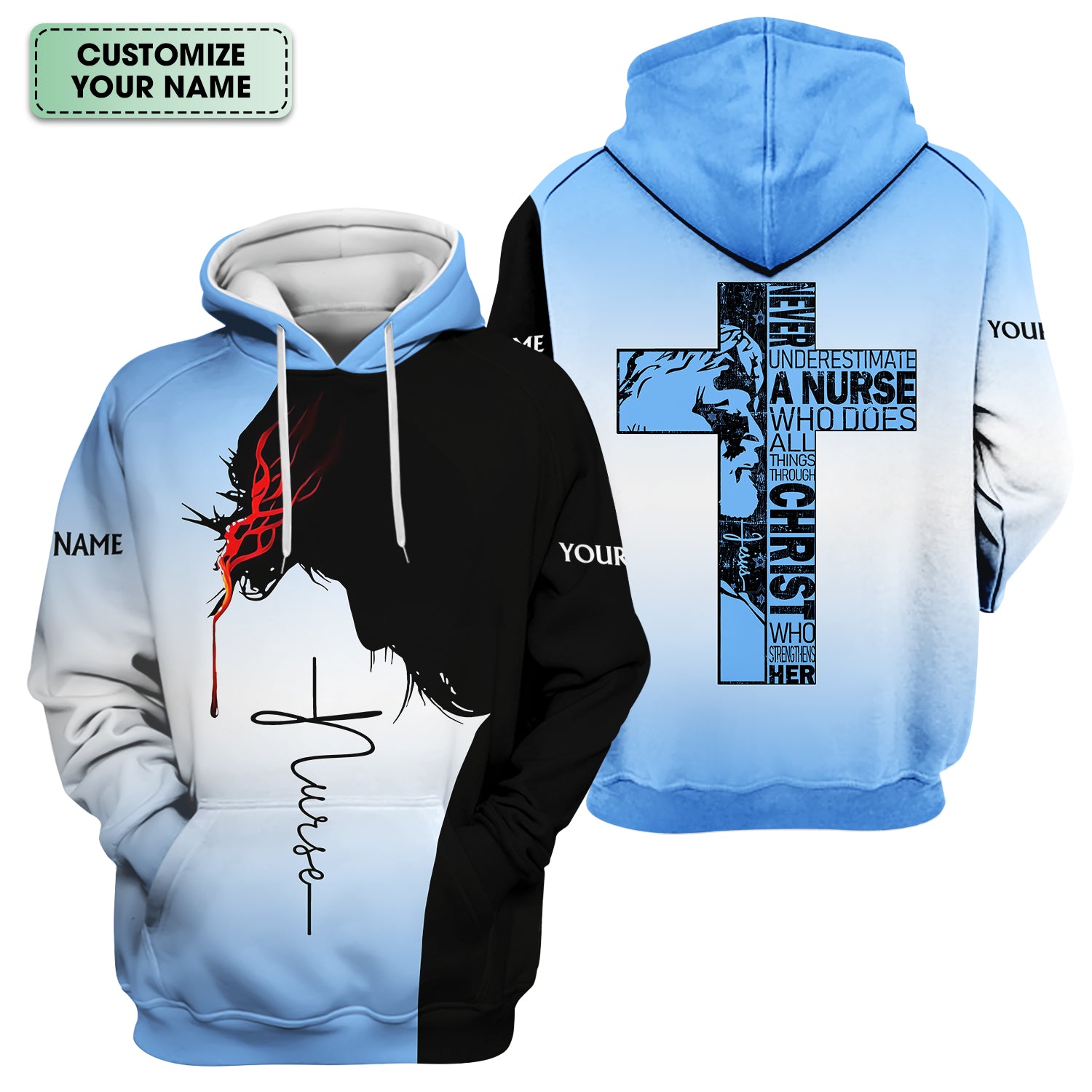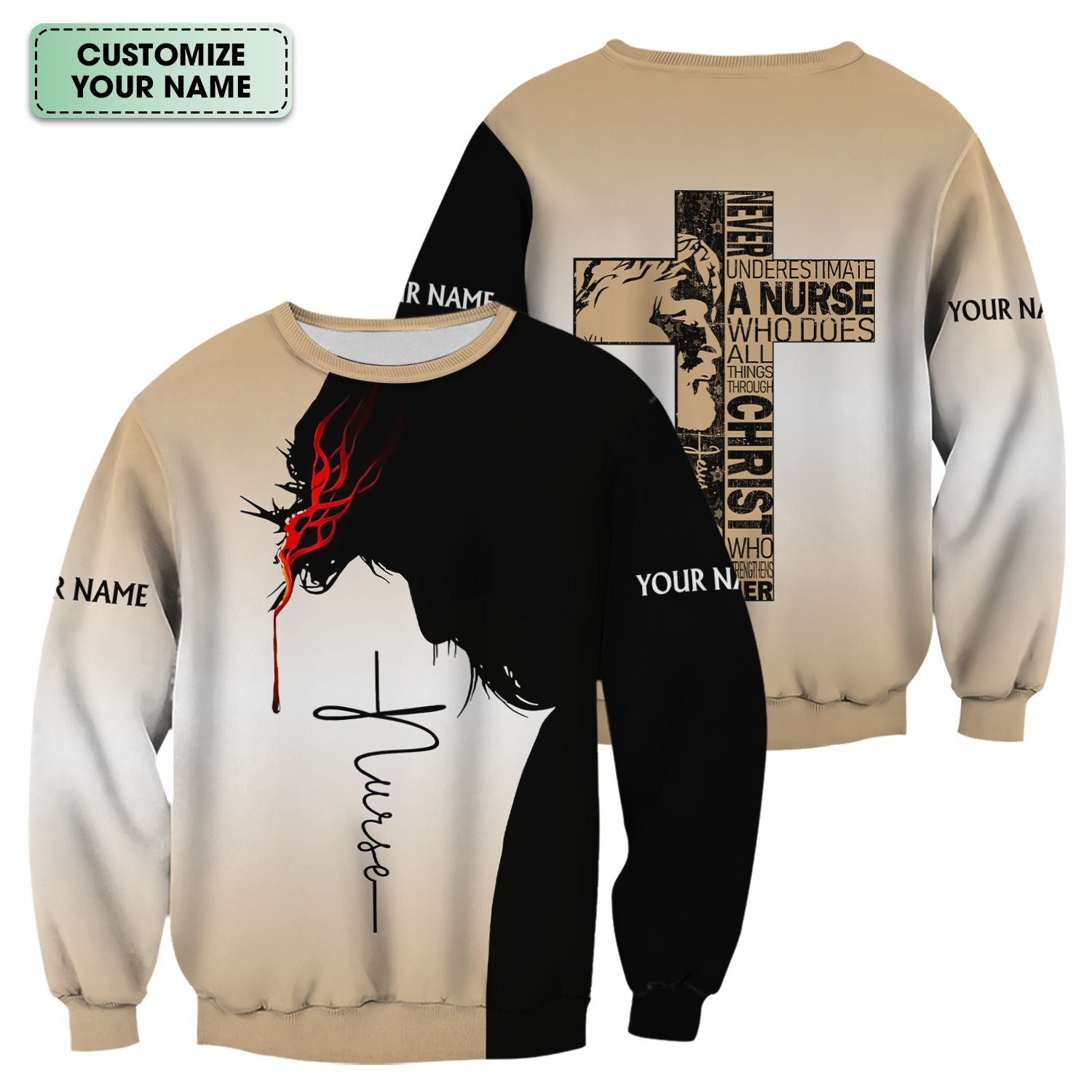 Personalized Christian Nurse Scrub Top - Christian Cross & Jesus Faith Design - Gift for RN LPN CNA