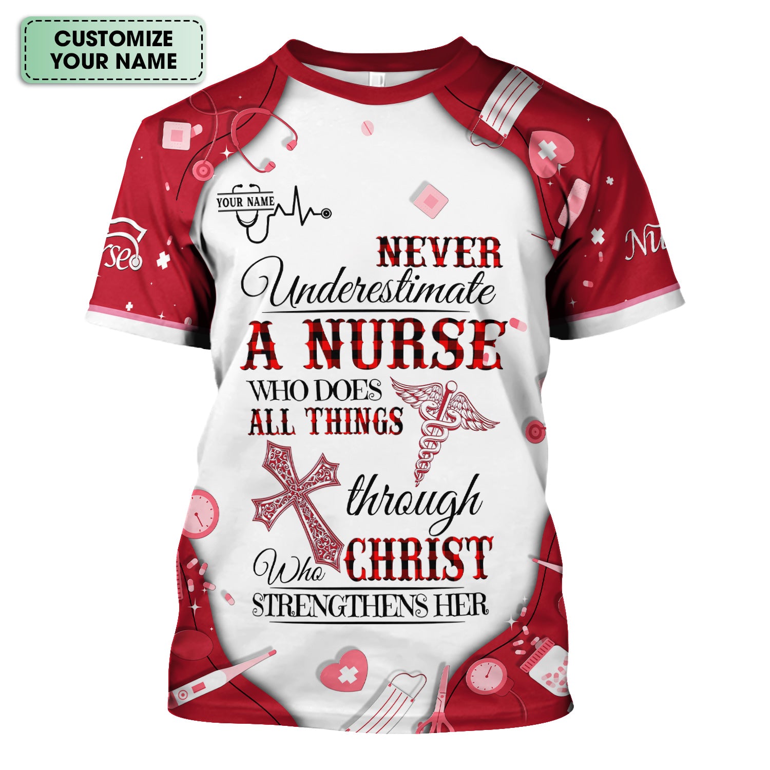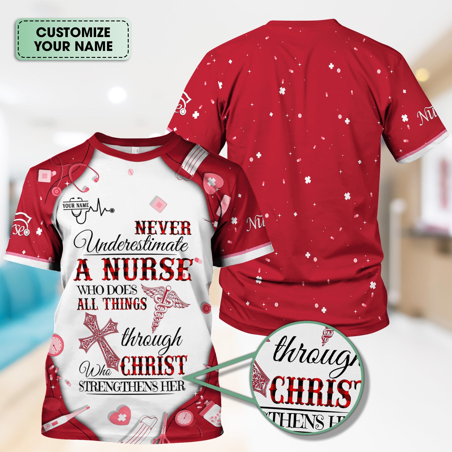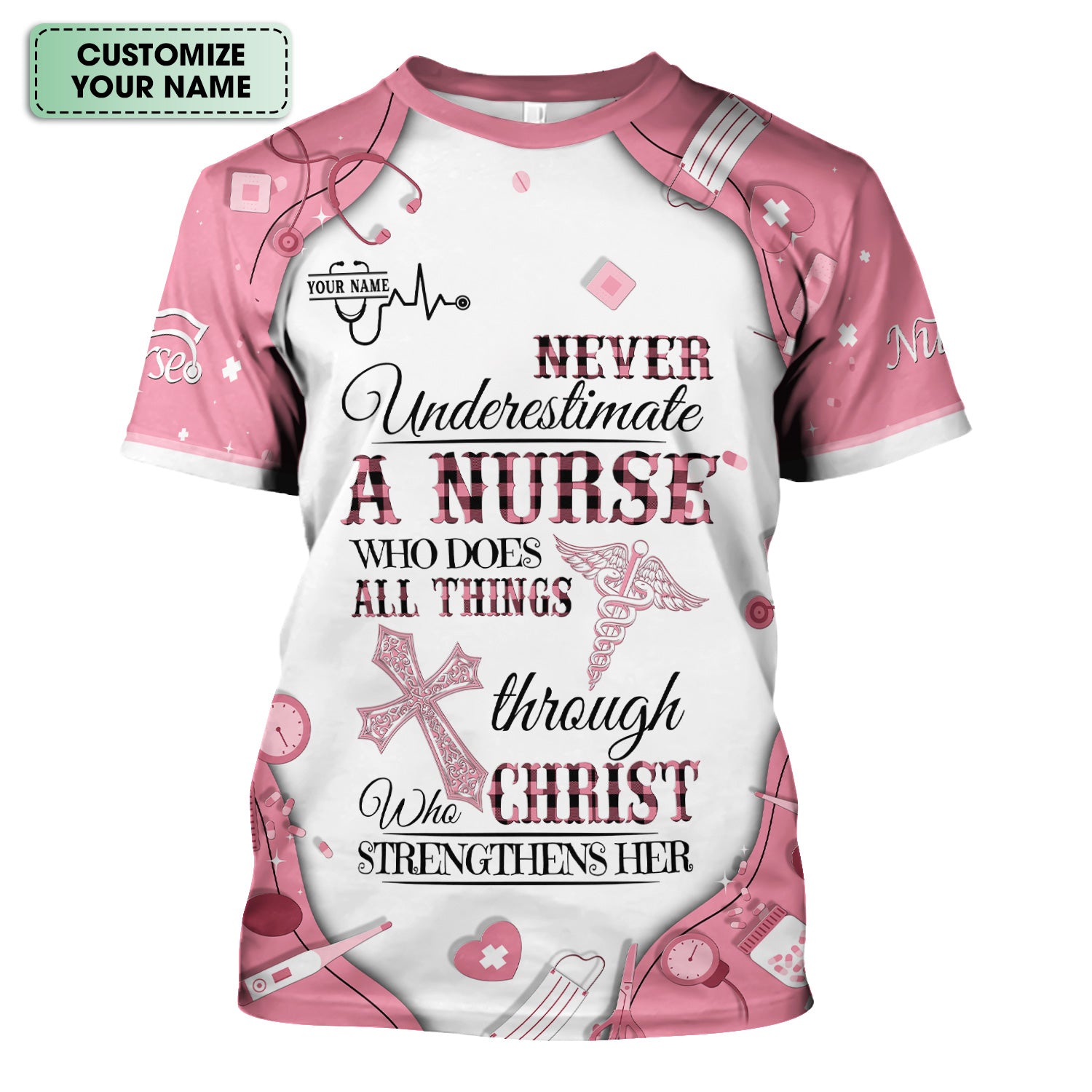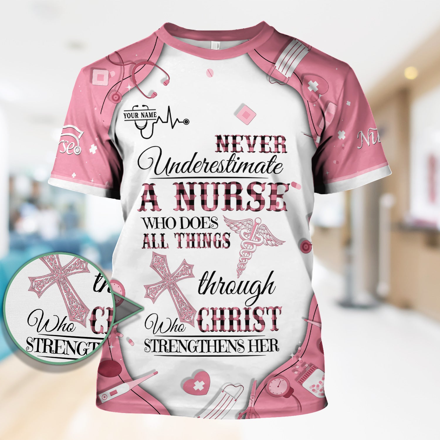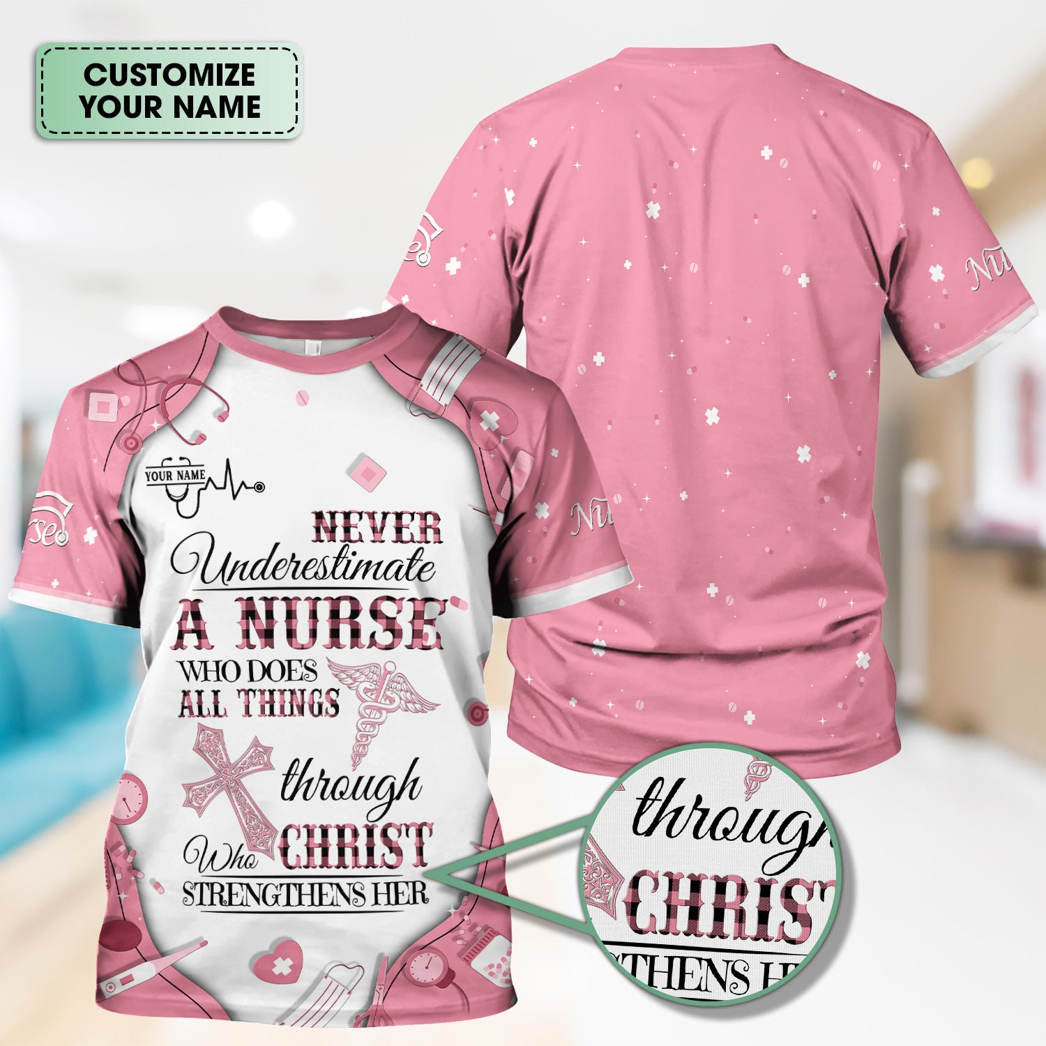 Personalized Christian Nurse Shirt - All Things Through Christ Quote - Faith-Based Medical Gift for RN, LPN, CNA Healthcare Workers