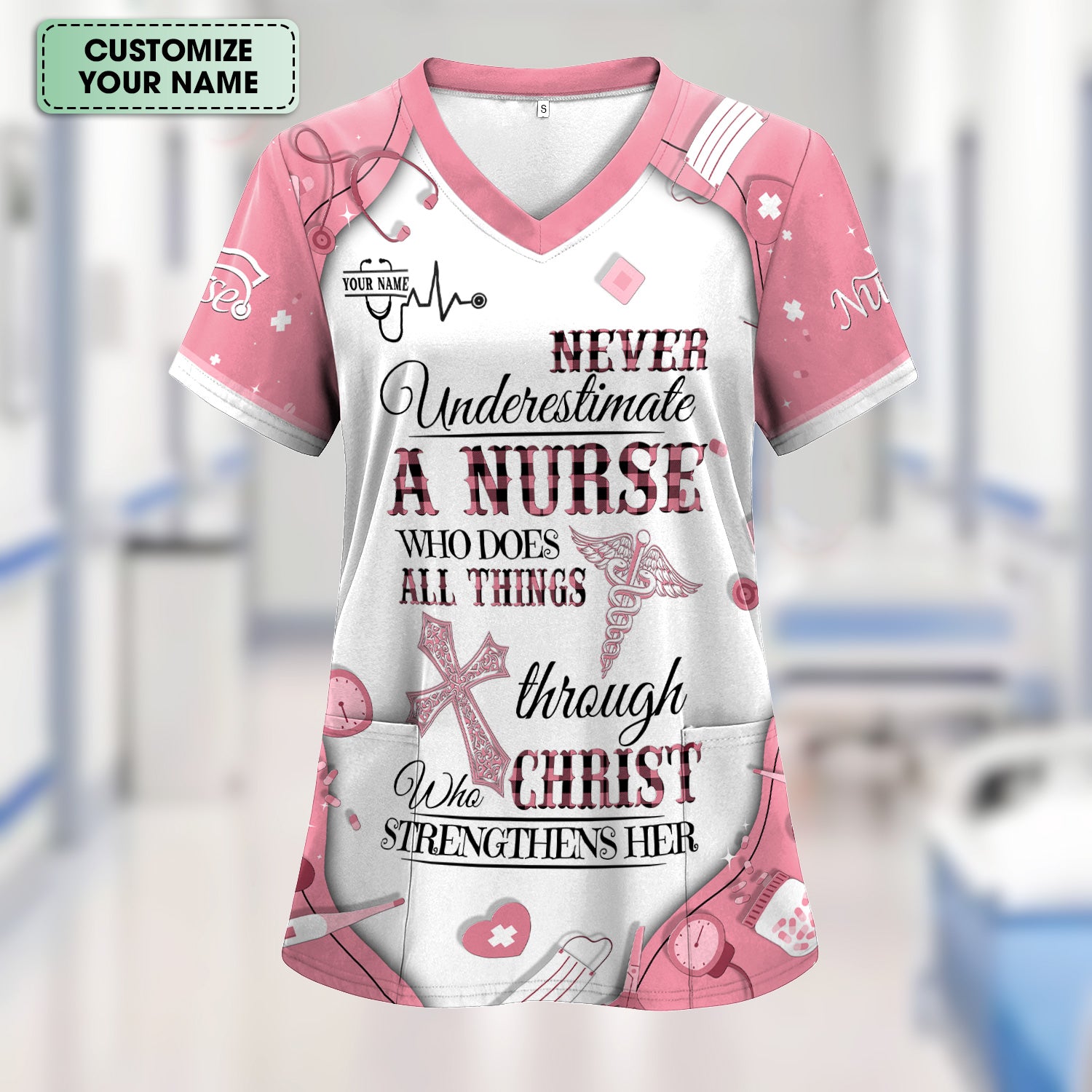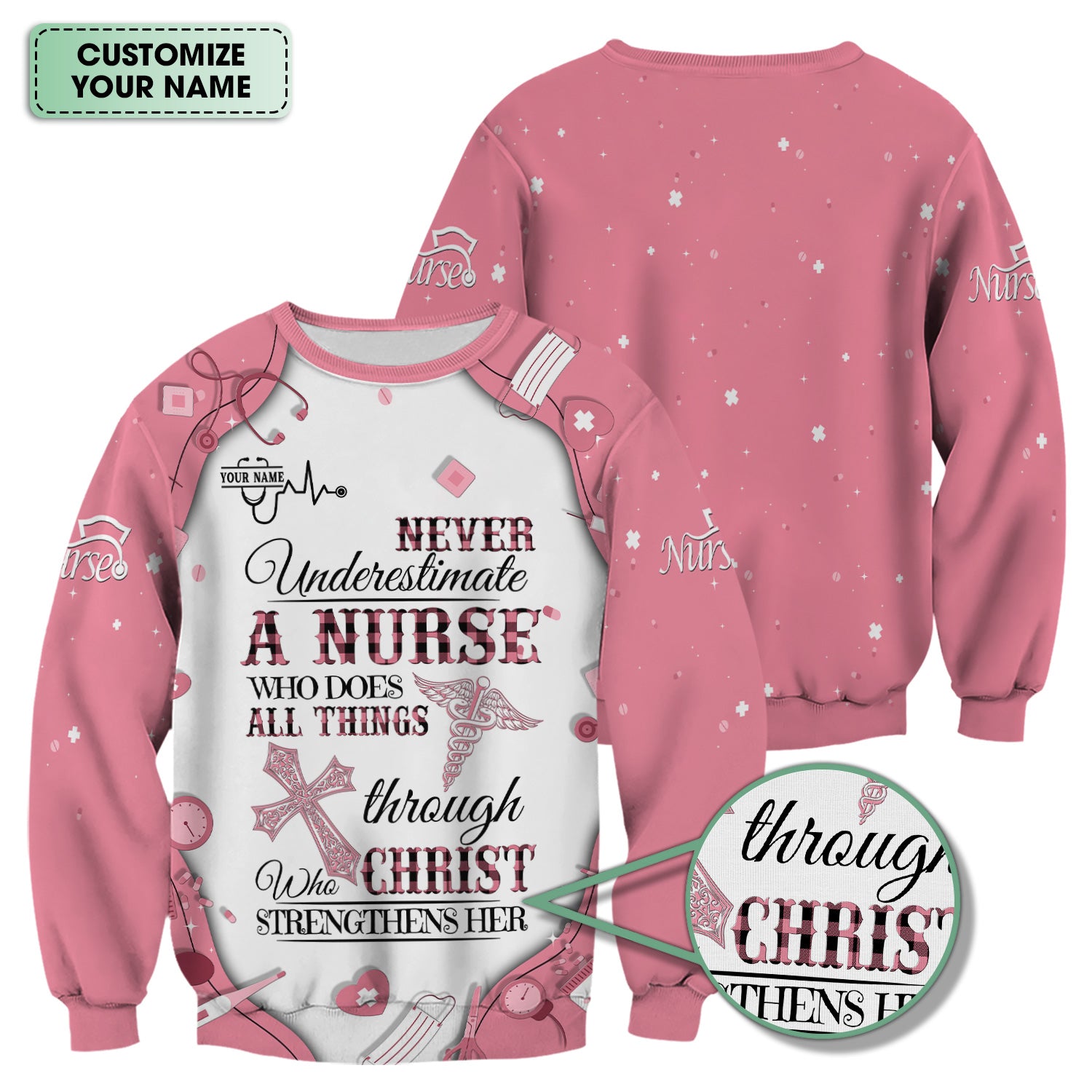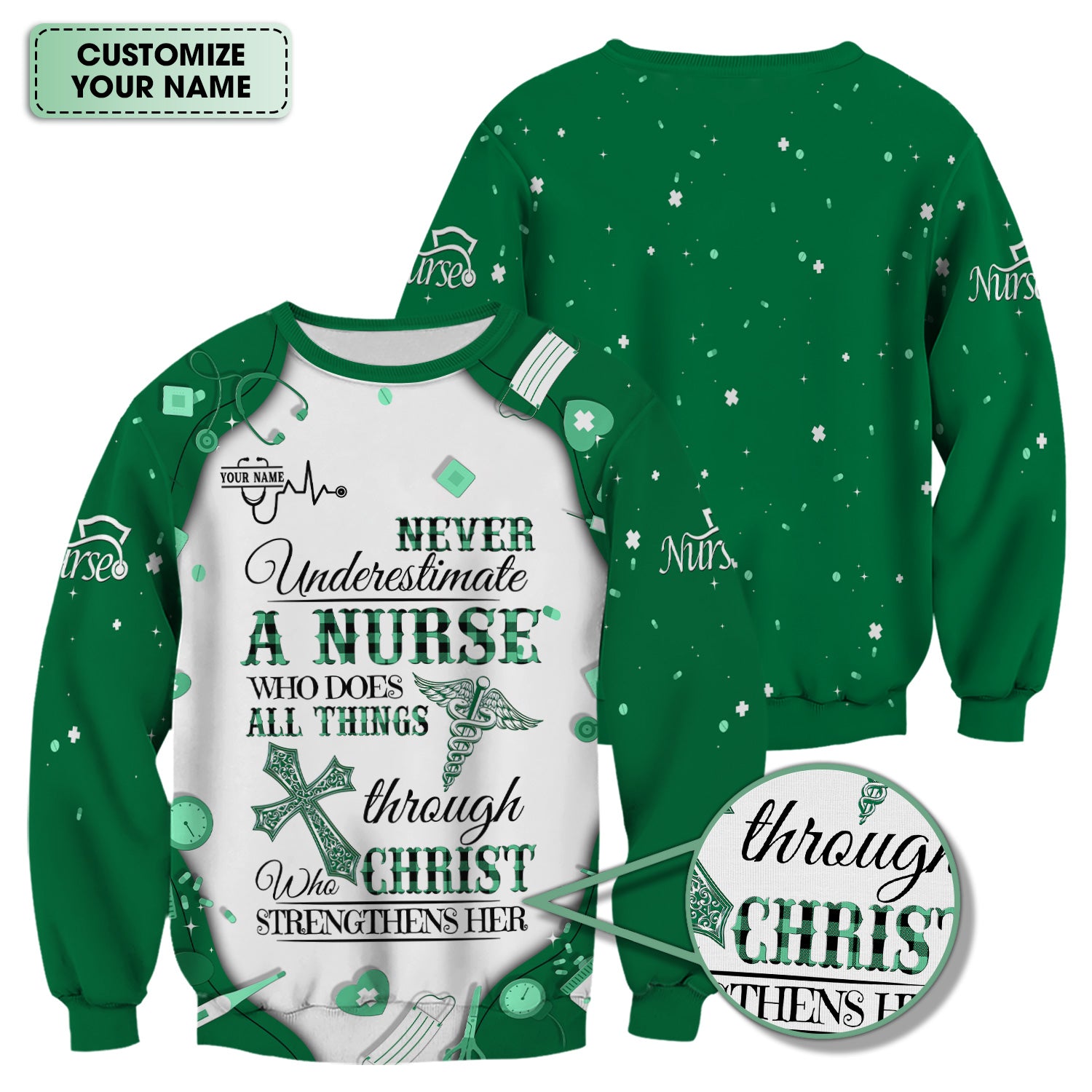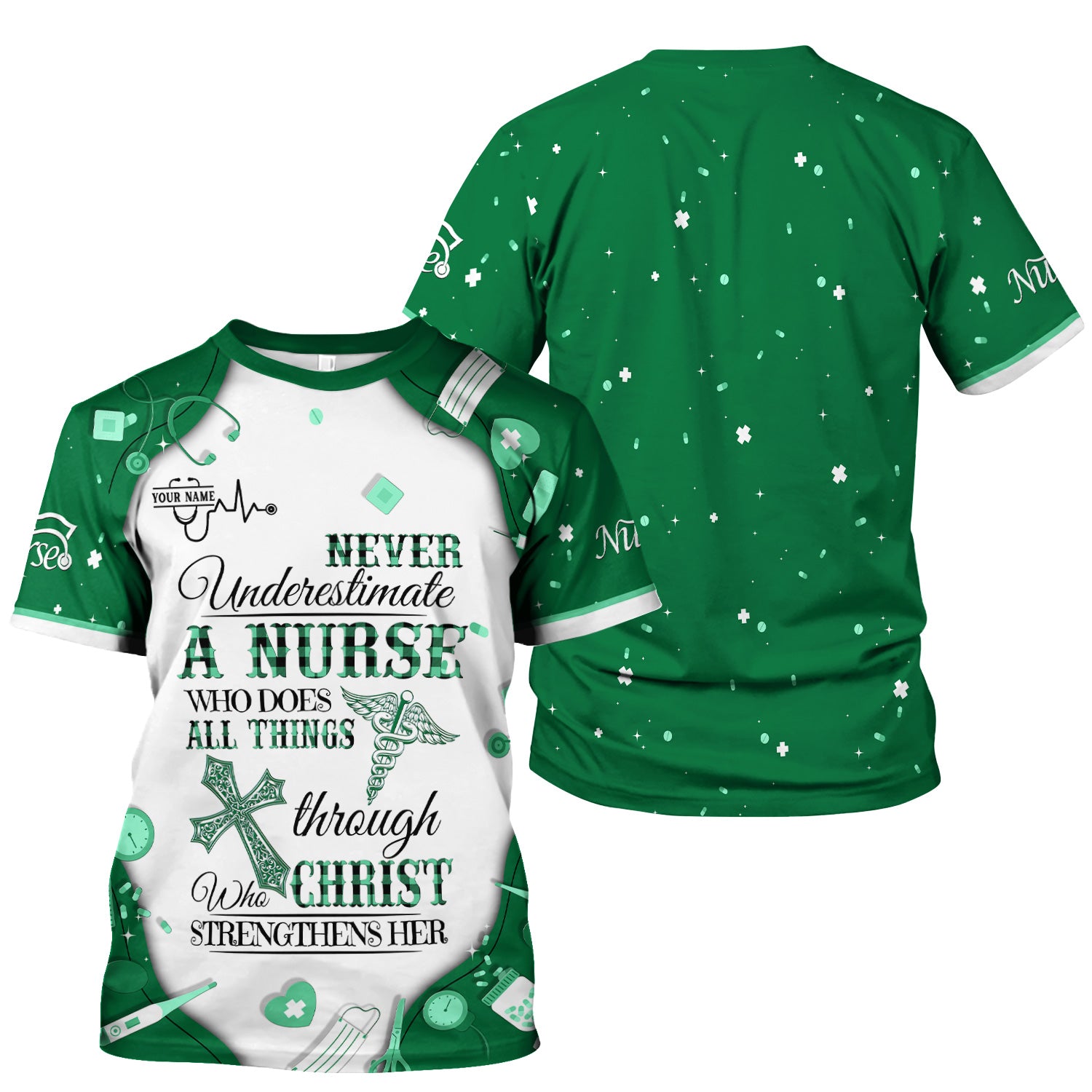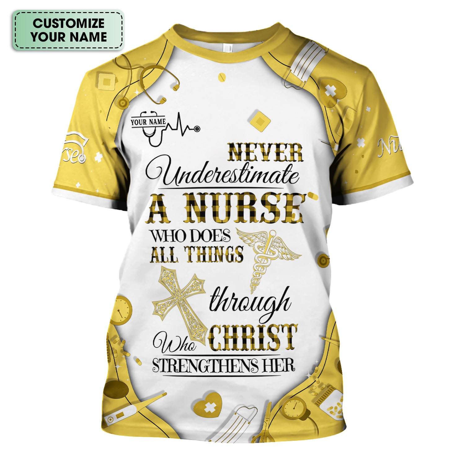 Personalized Christian Nurse Shirt - All Things Through Christ Quote - Faith-Based Medical Gift for RN, LPN, CNA Healthcare Workers