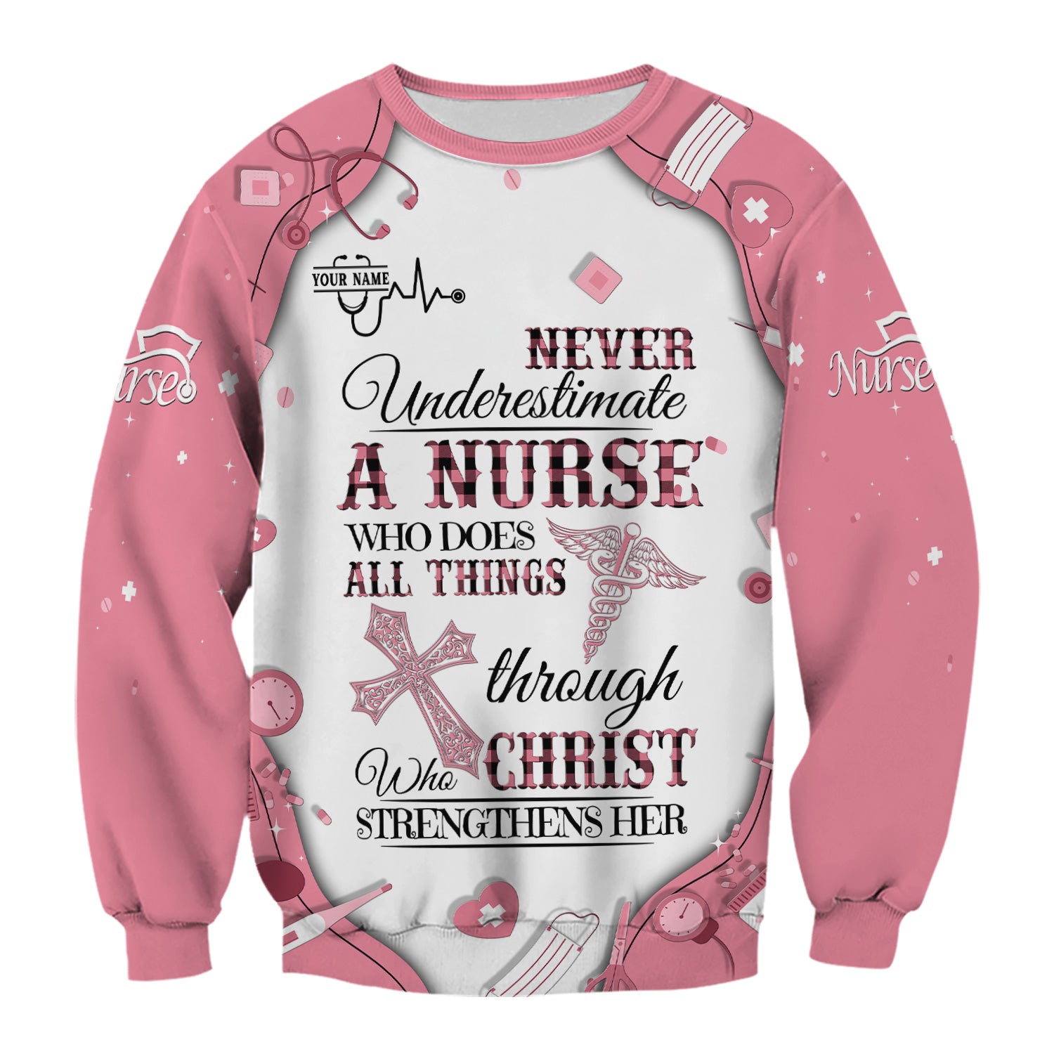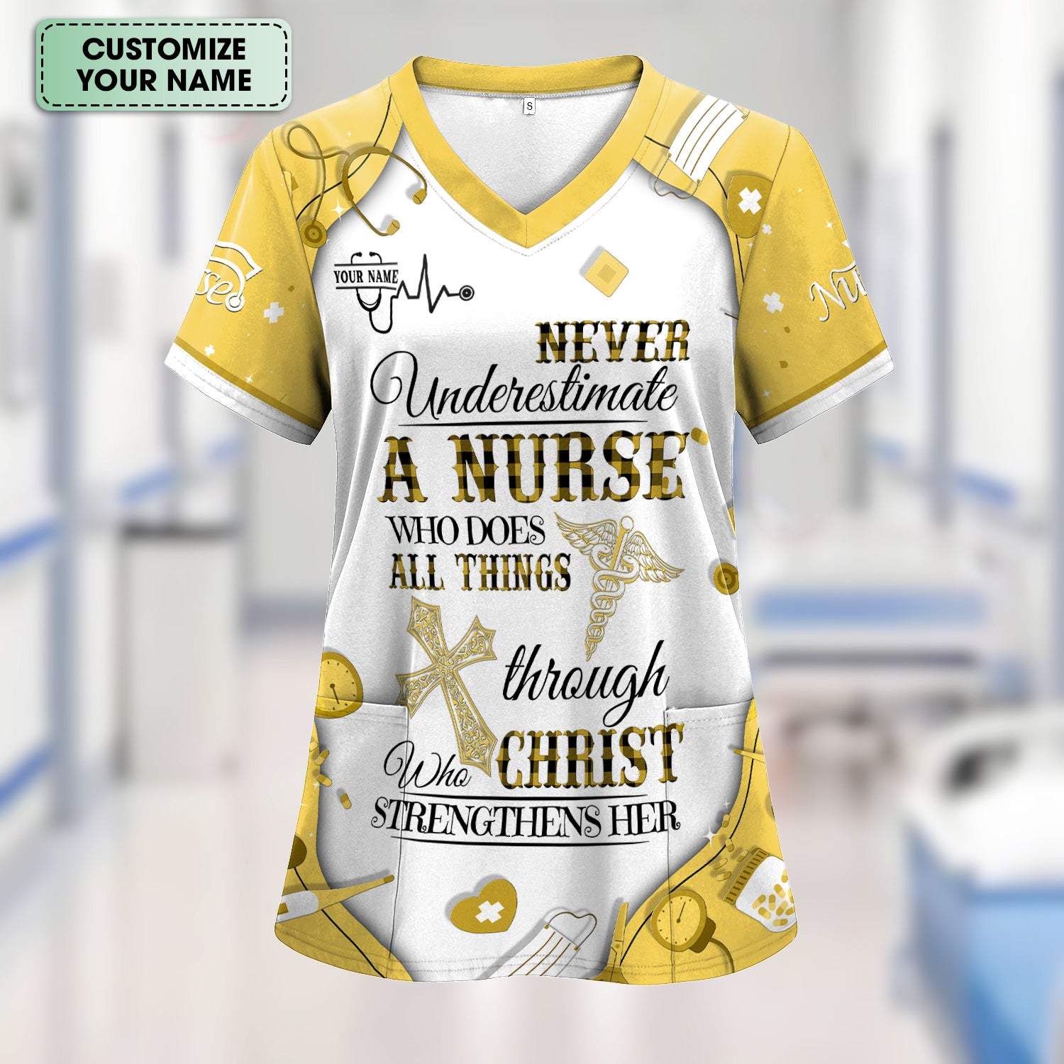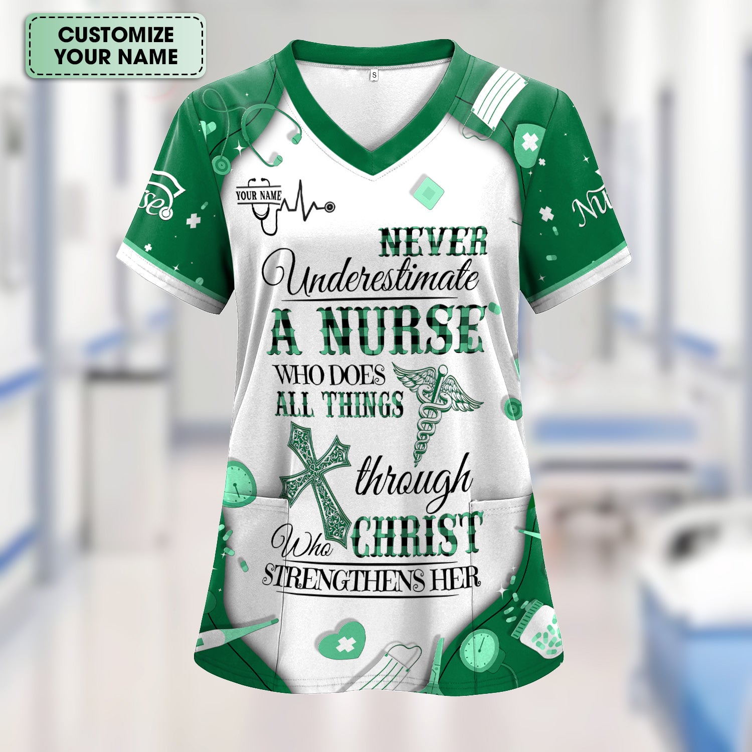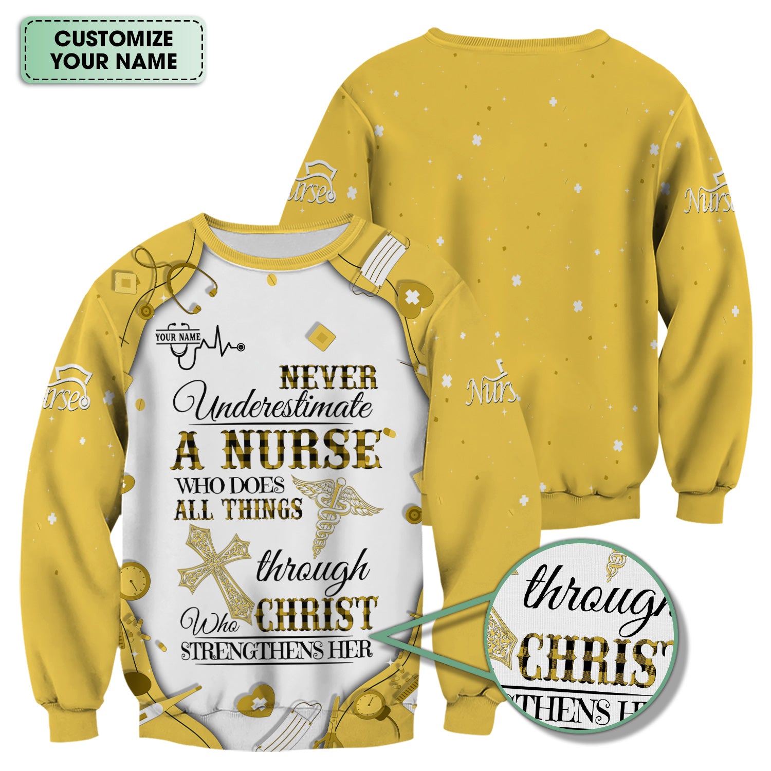 Personalized Christian Nurse Shirt - All Things Through Christ Quote - Faith-Based Medical Gift for RN, LPN, CNA Healthcare Workers