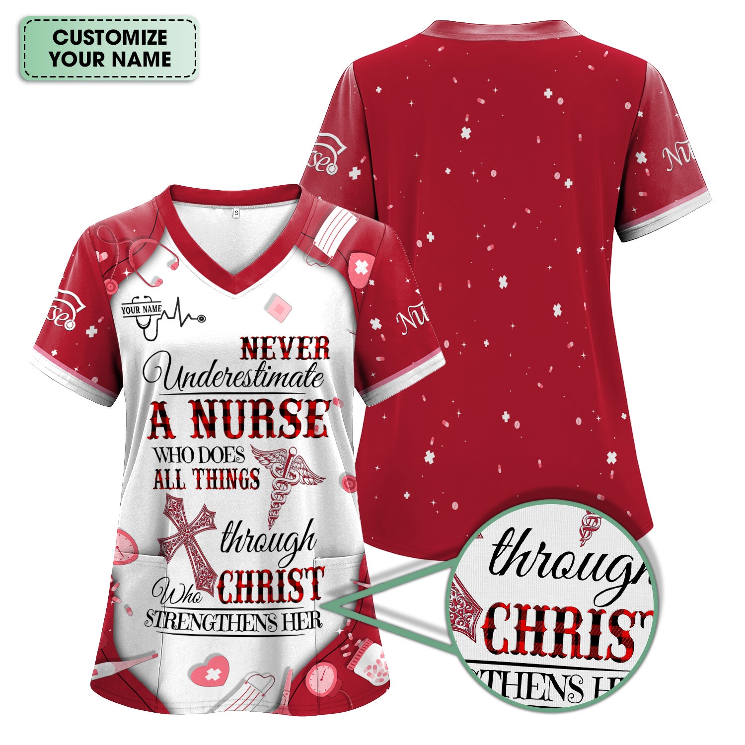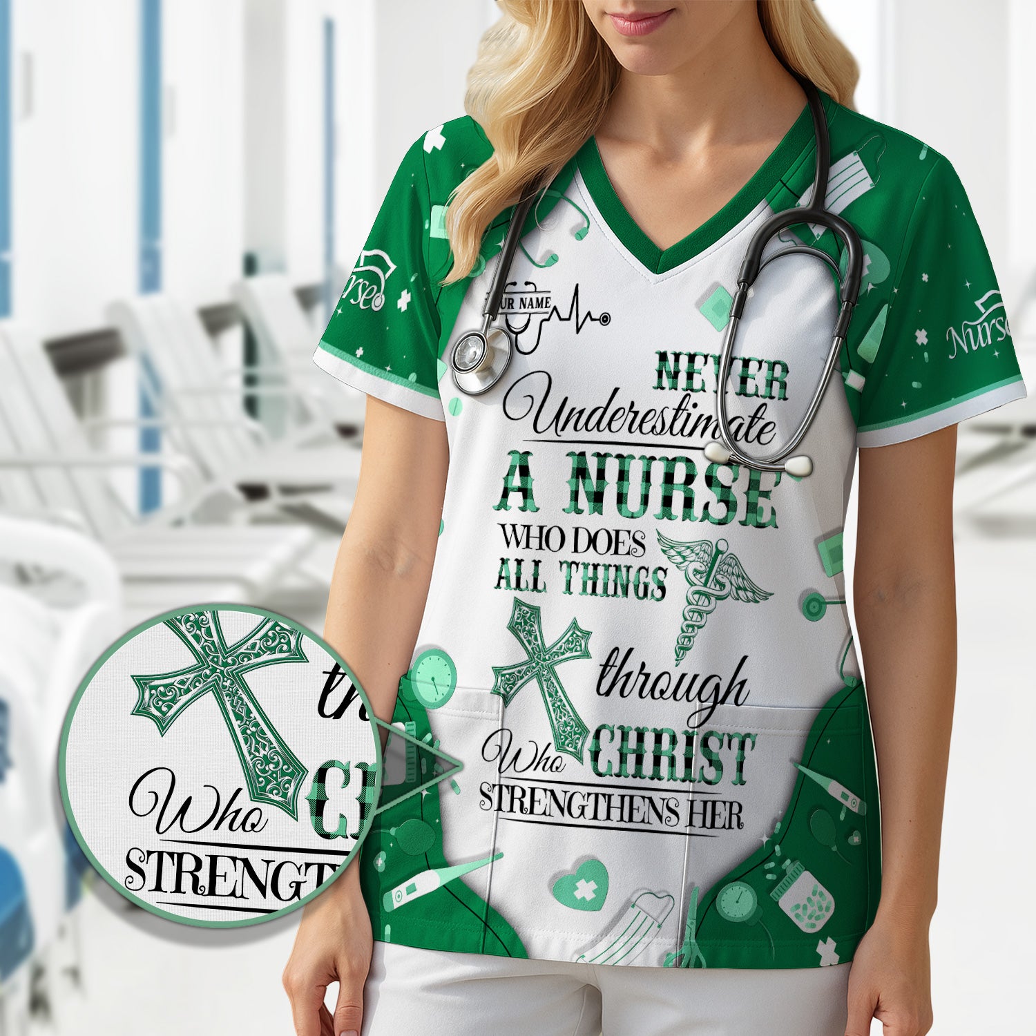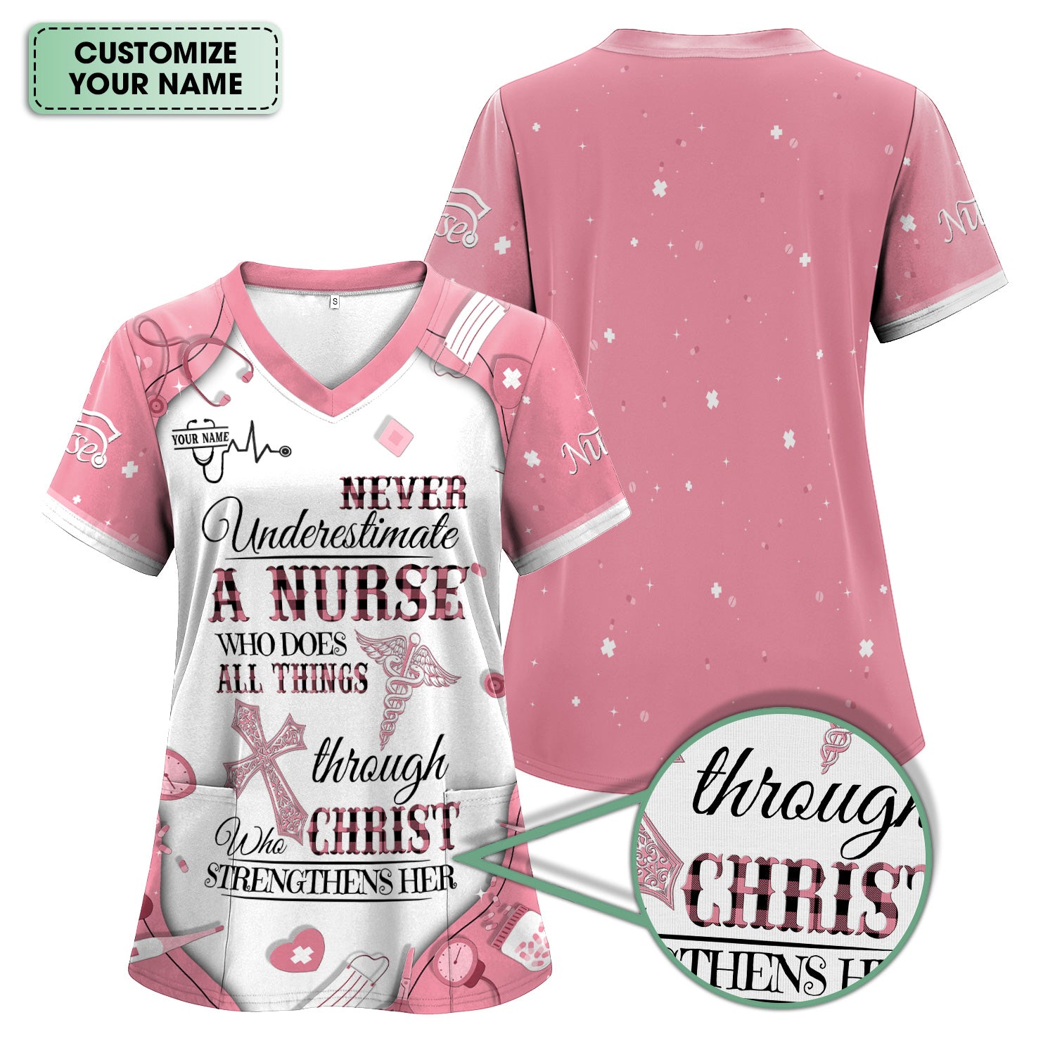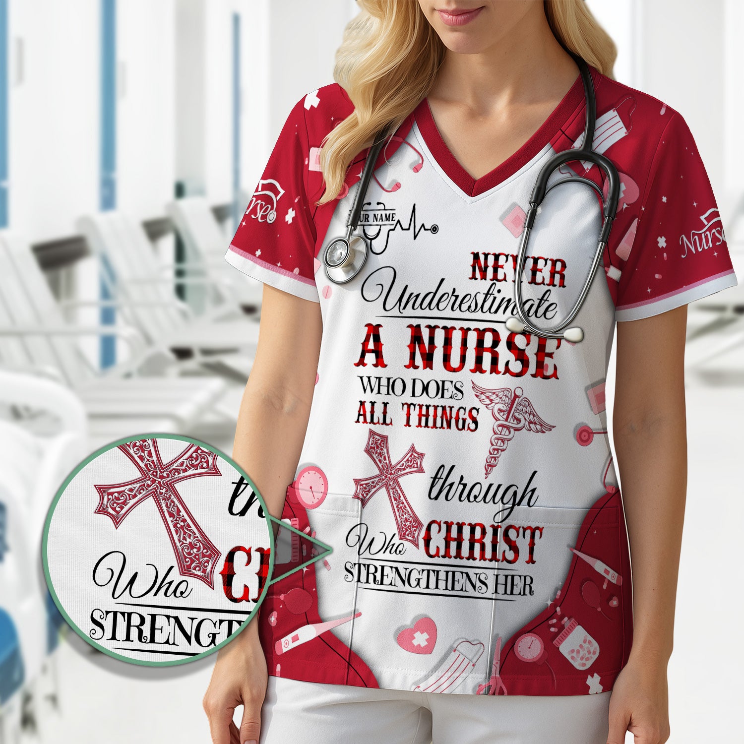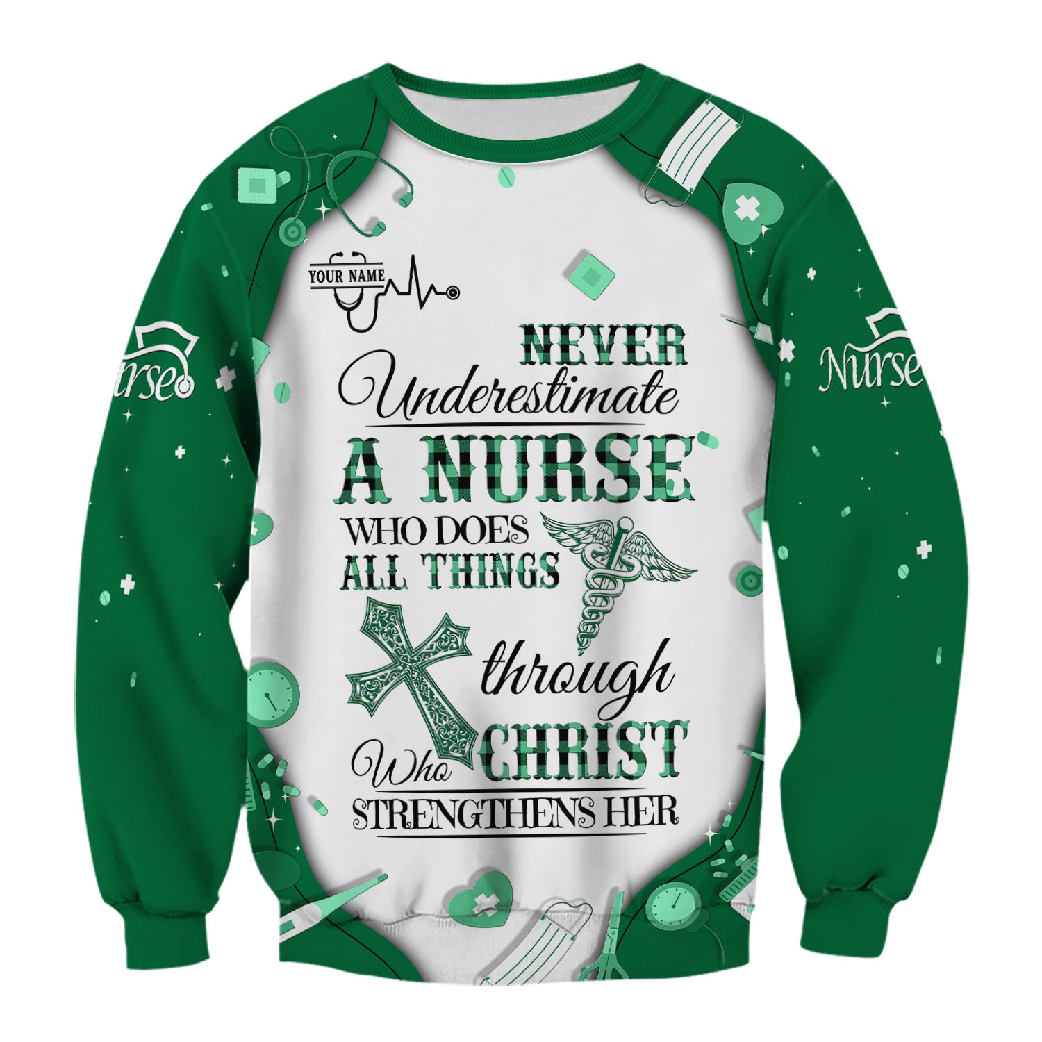 Personalized Christian Nurse Shirt - All Things Through Christ Quote - Faith-Based Medical Gift for RN, LPN, CNA Healthcare Workers