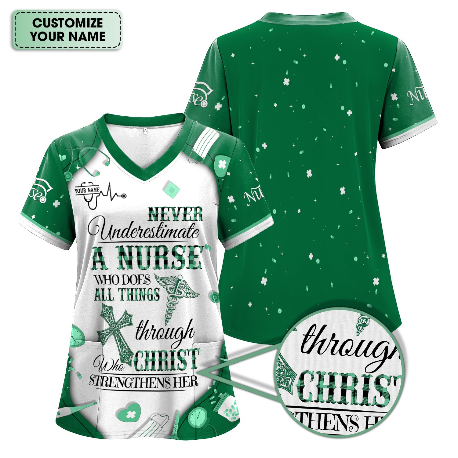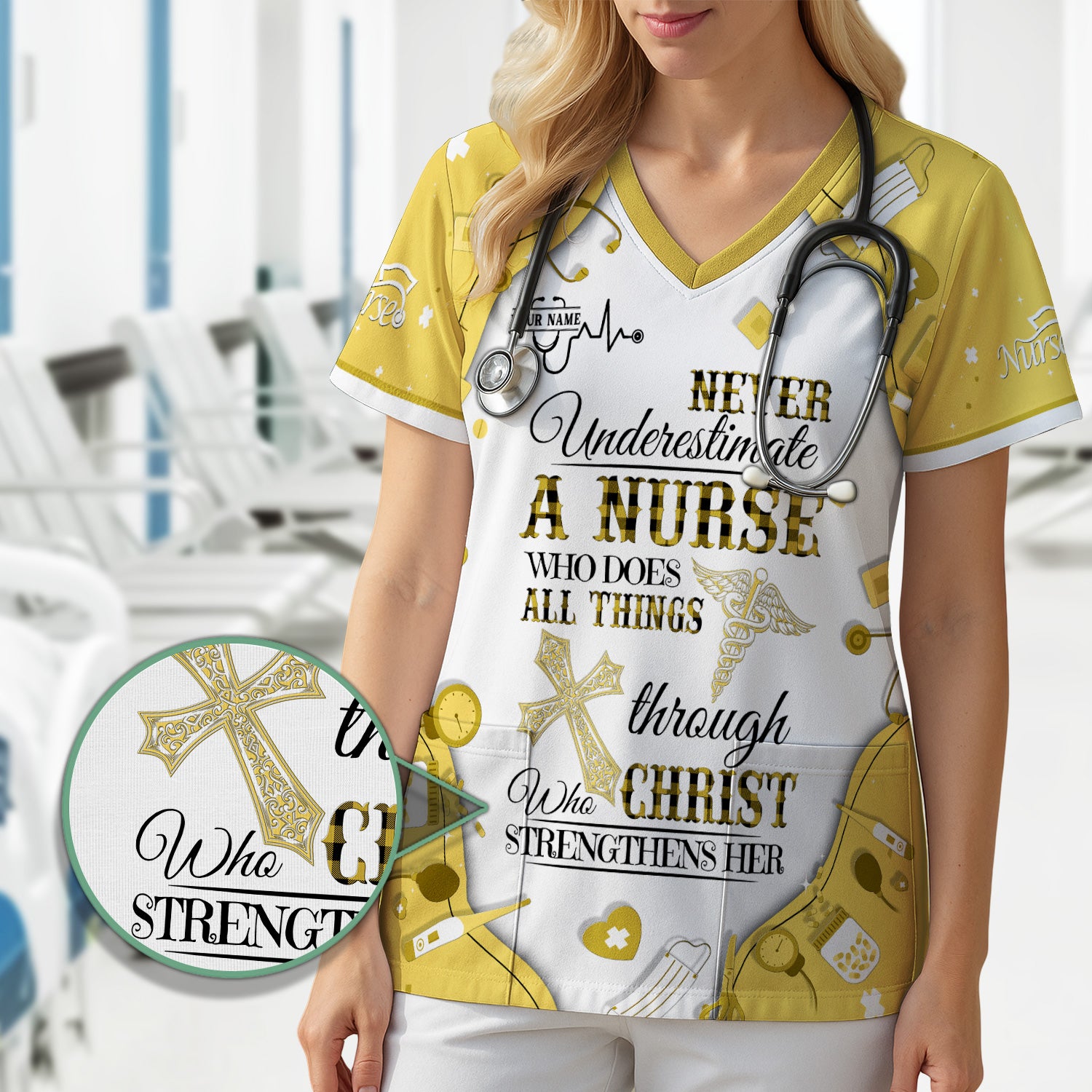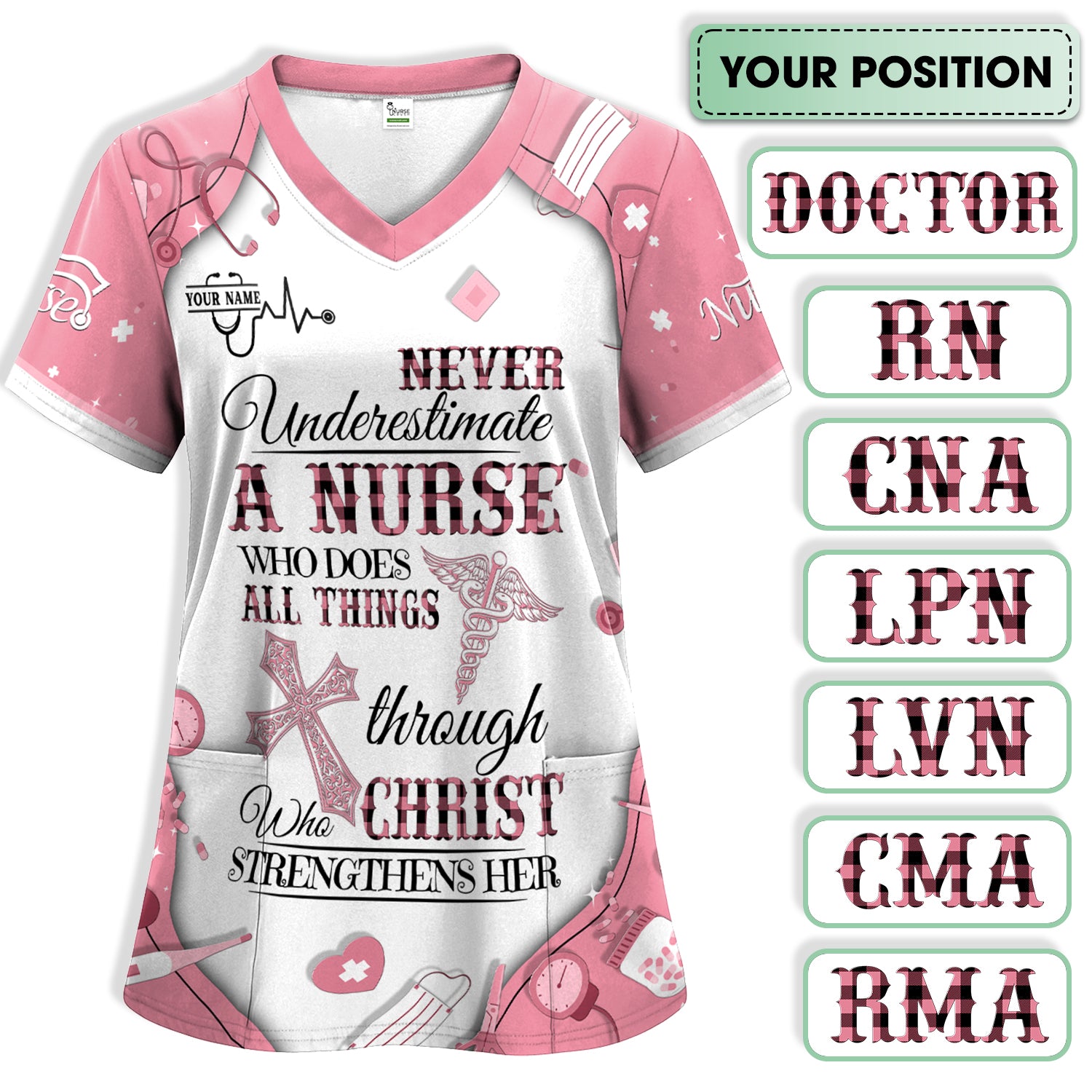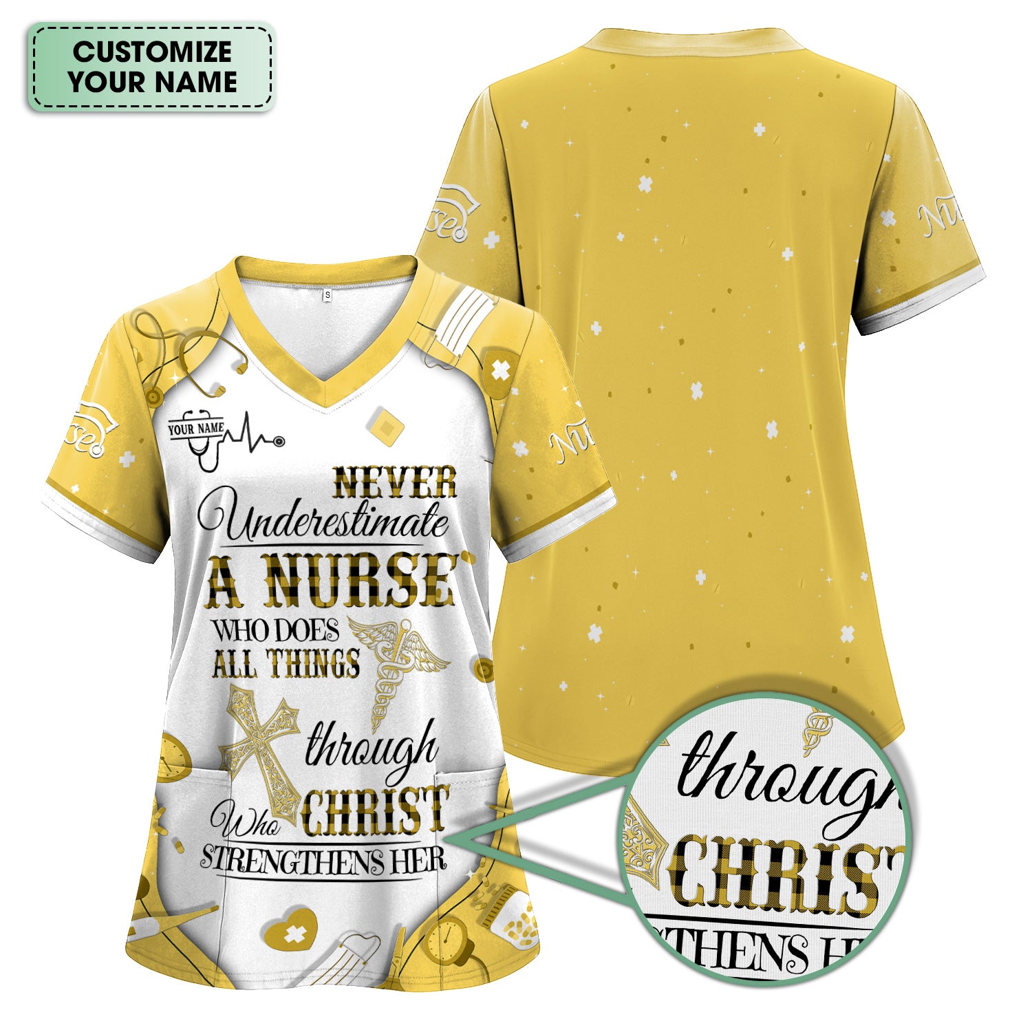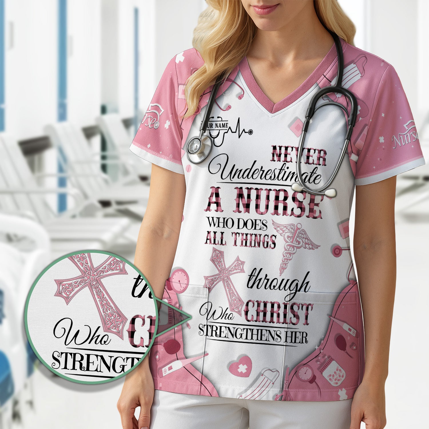 Personalized Christian Nurse Shirt - All Things Through Christ Quote - Faith-Based Medical Gift for RN, LPN, CNA Healthcare Workers