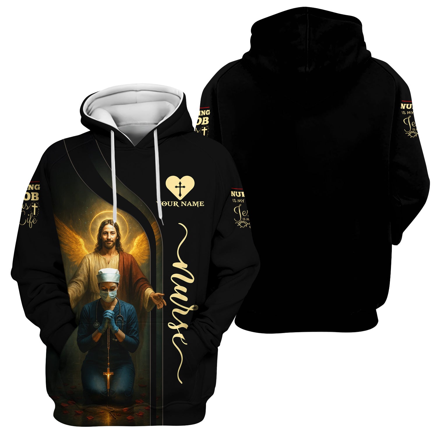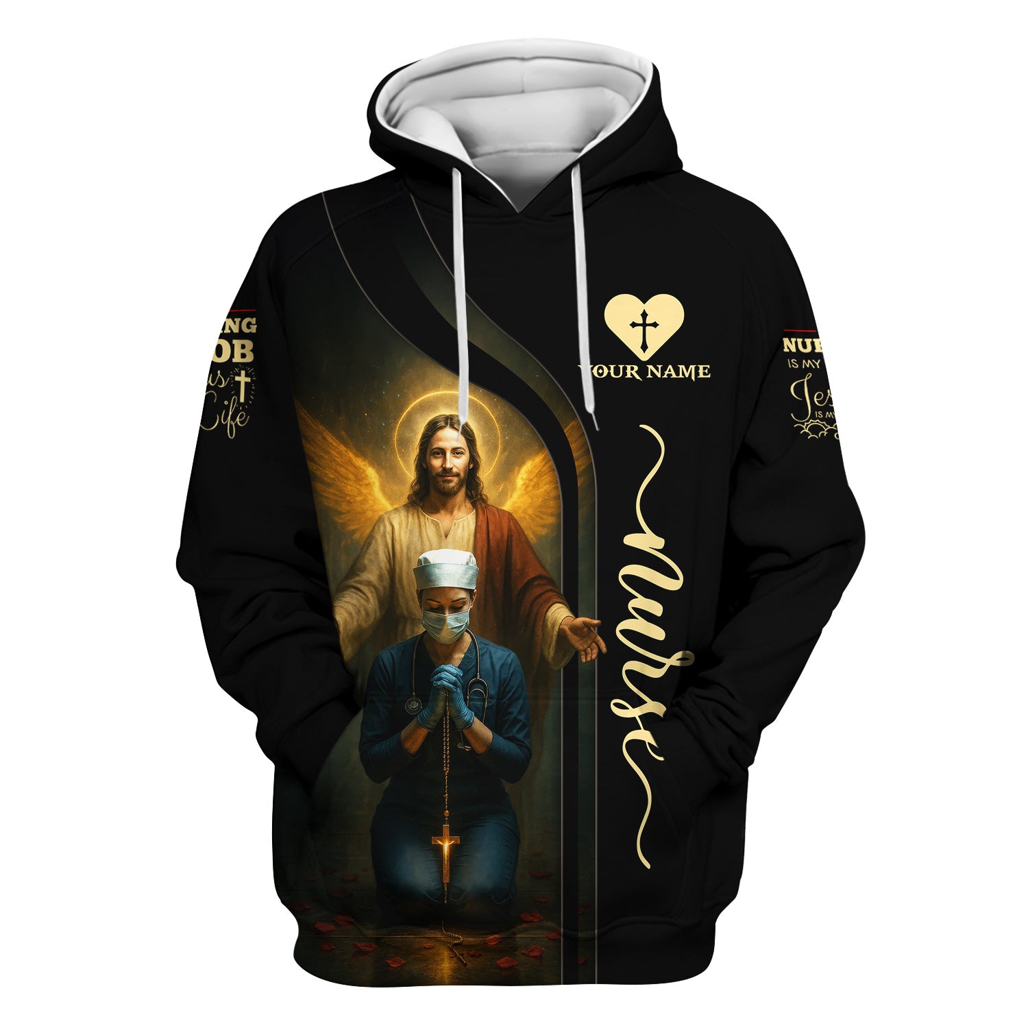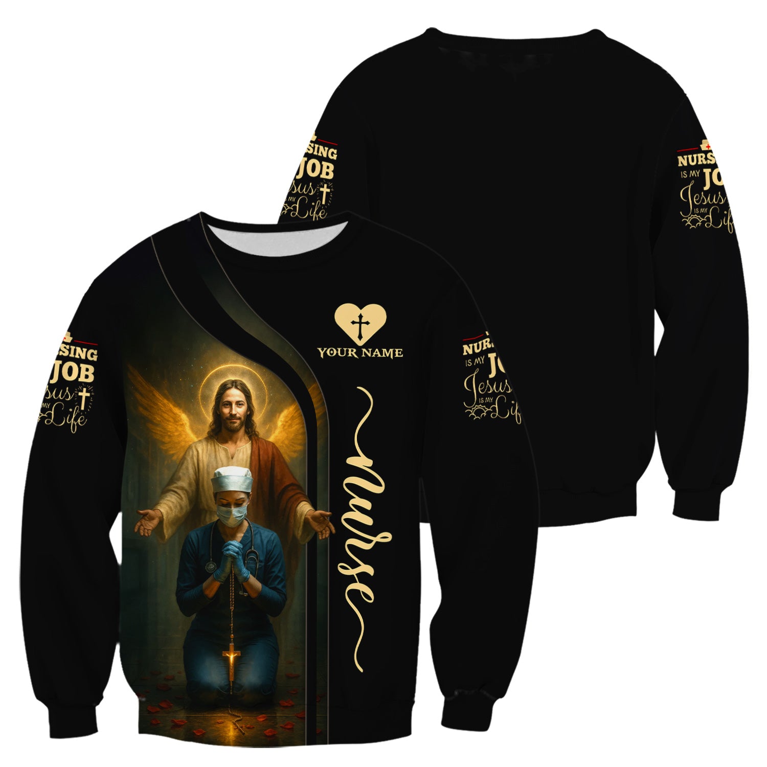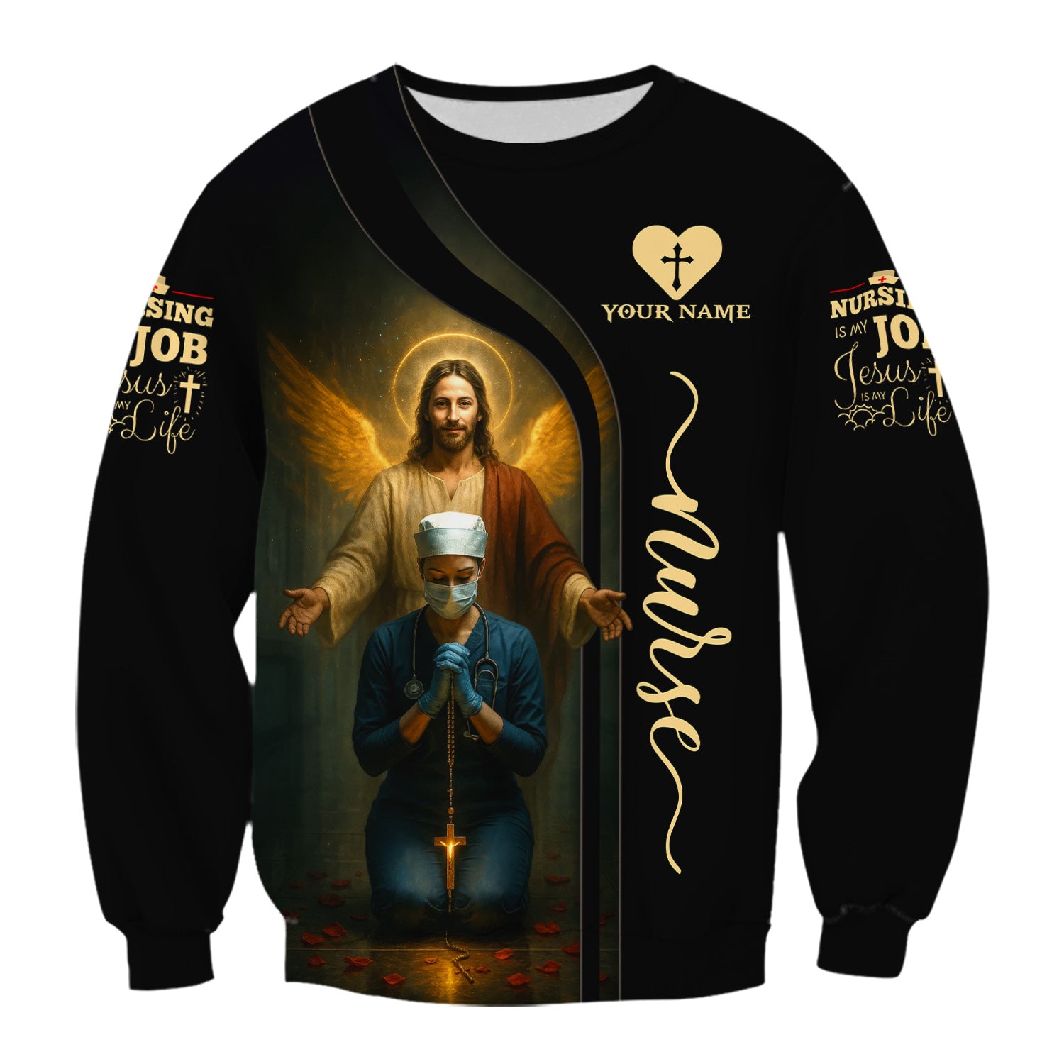 Personalized Christian Nurse Shirt - Jesus and Praying Nurse with Rosary Design - RN LPN CNA Healthcare Workers Gift