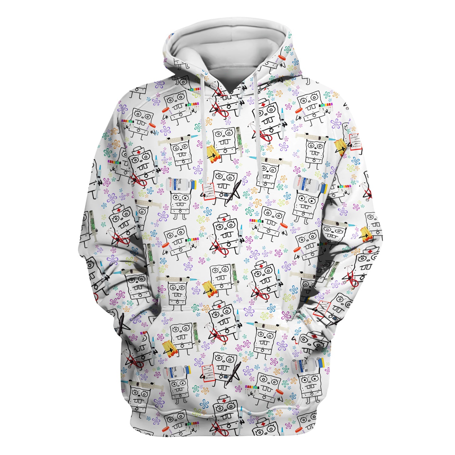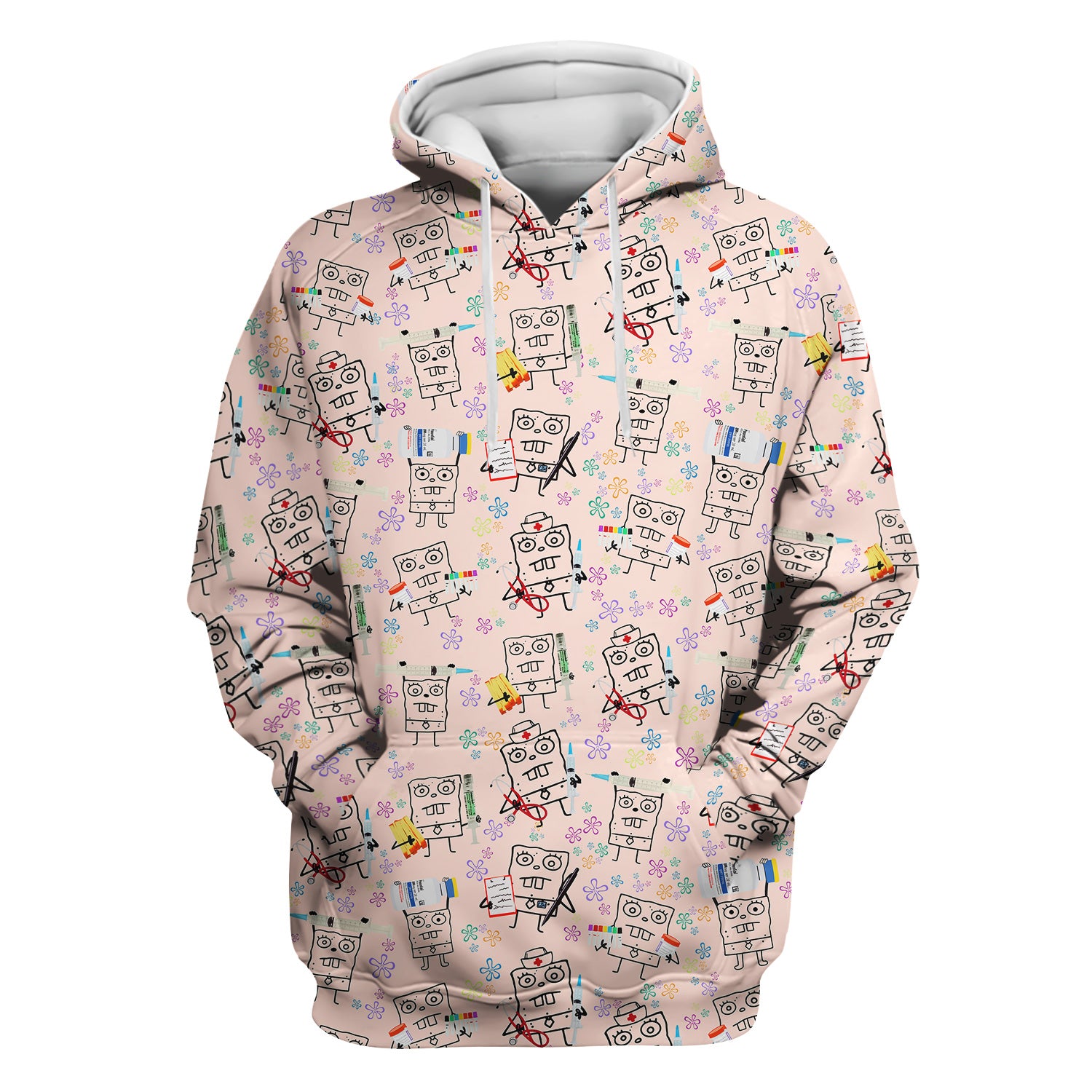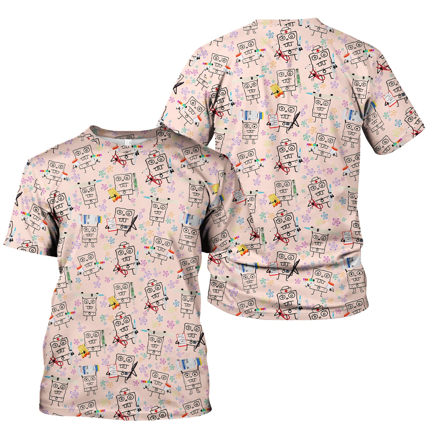 Personalized Doodle Bob Energy Drink Nurse Shirt - Funny Cartoon Medical Graphic Tee - Gift for RN MD RT CNA Paramedic Healthcare Staff