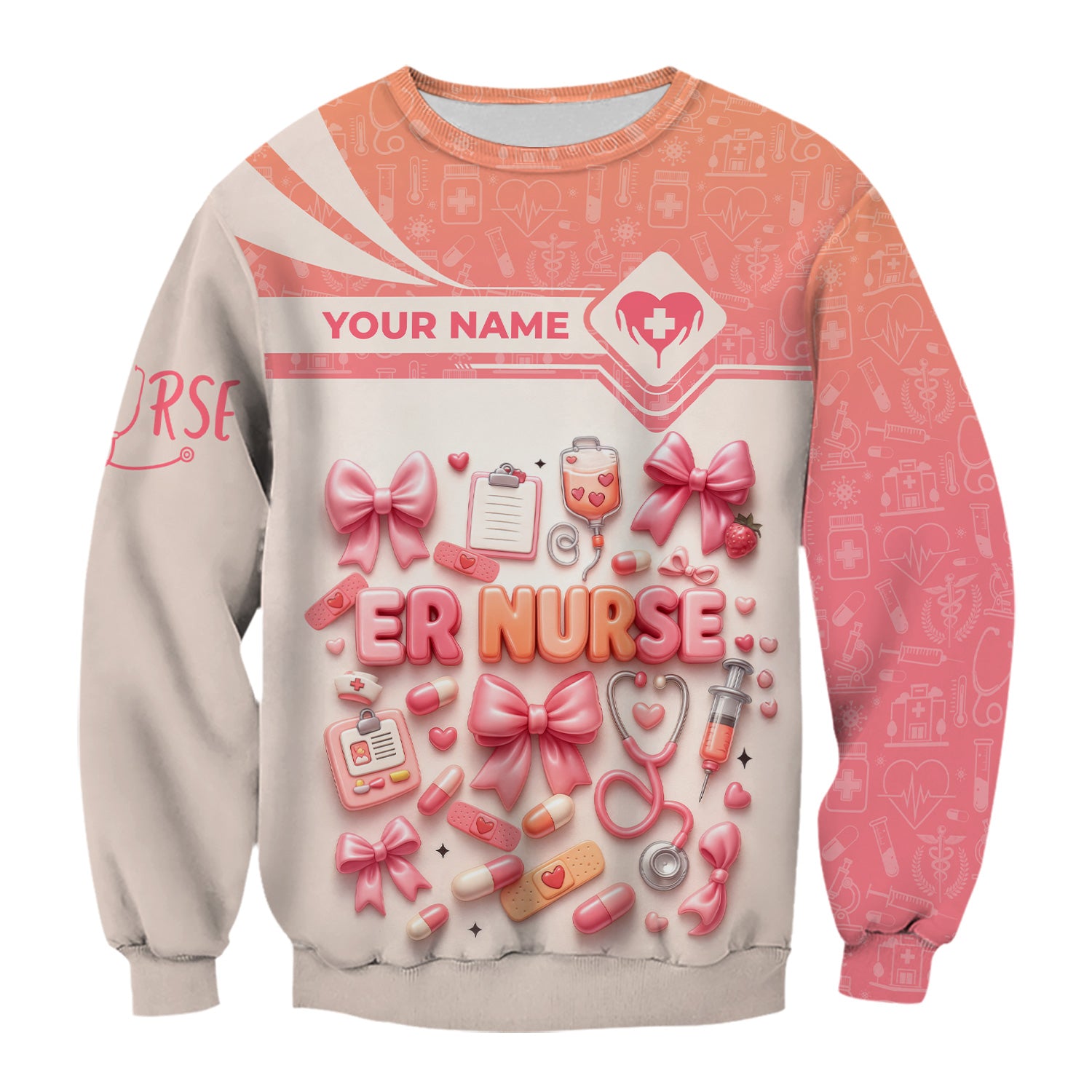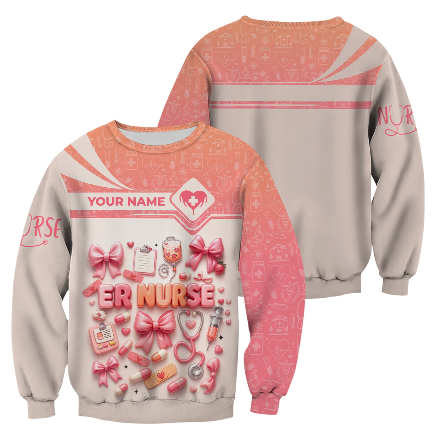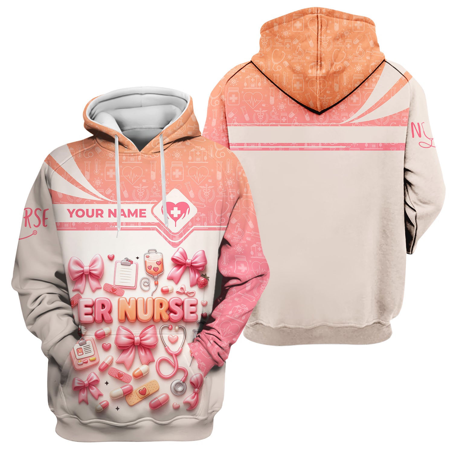 Personalized ER Nurse Scrub Shirt with Name - Cute All Over Print Medical Uniform - Funny Gift for Emergency Room Nurses