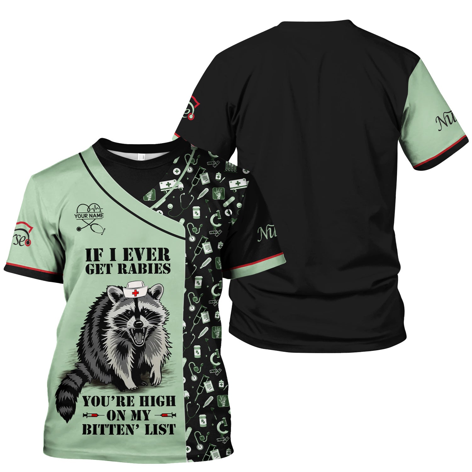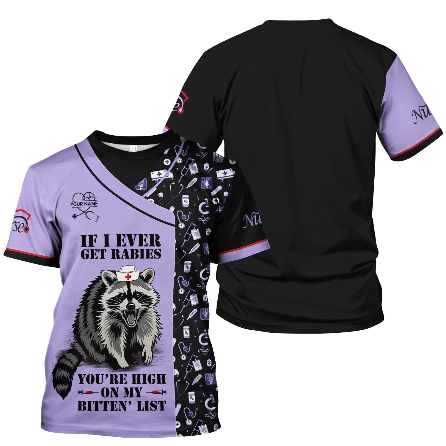 Personalized Funny Nurse Scrub for Women - Raccoon Nurse Graphic Design - Medical Gift for RN LPN CNA Healthcare Staff