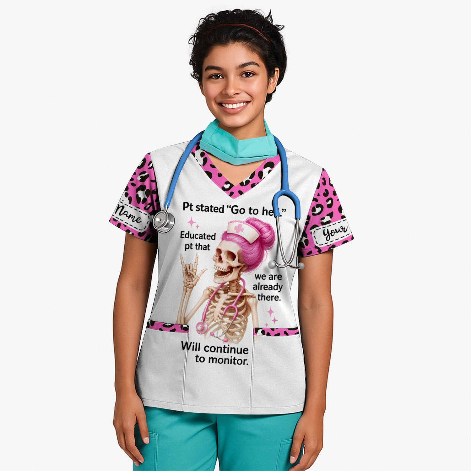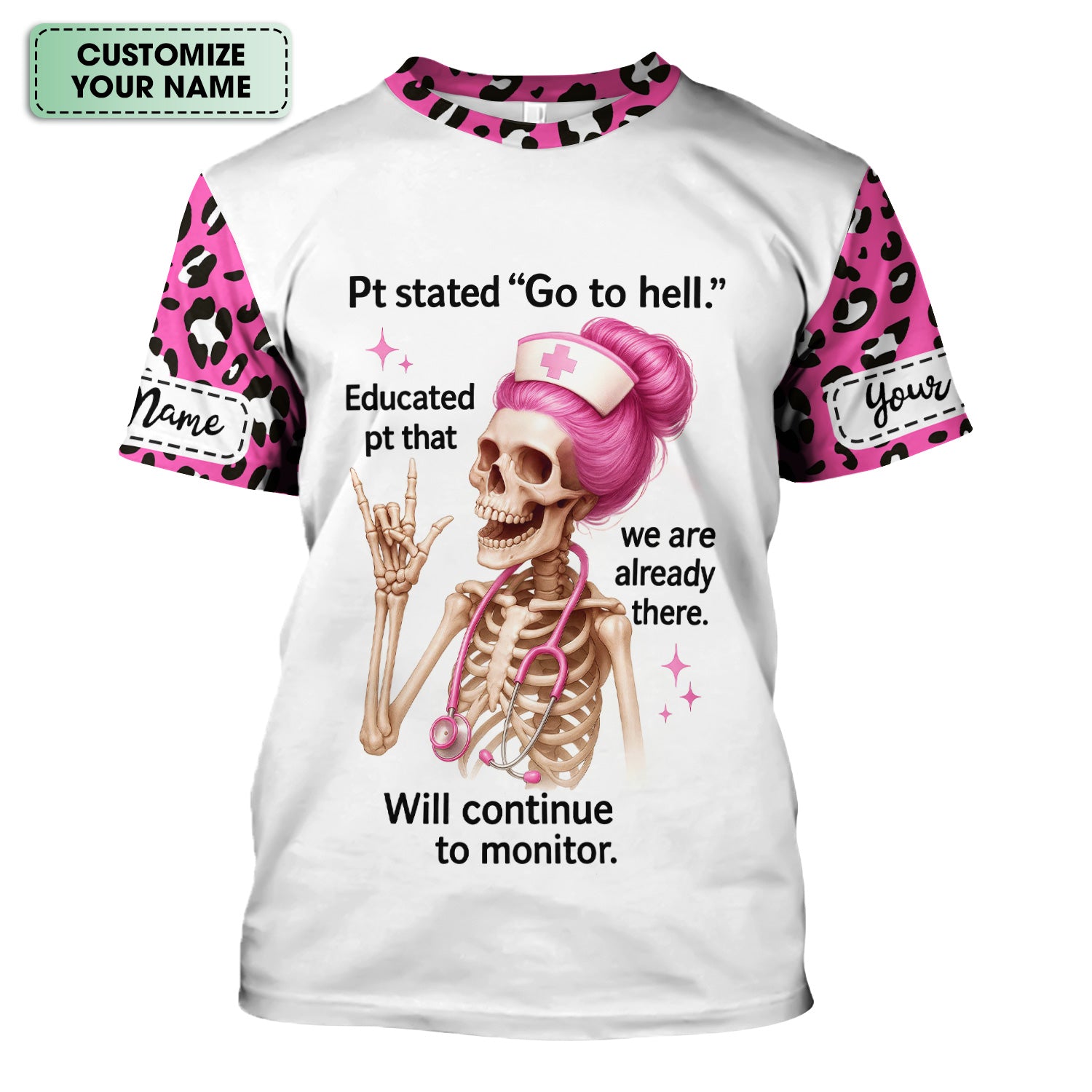 Personalized Funny Nurse Shirt - Pink Skeleton & Sarcastic Quote Design - Hilarious Gift for RN, LPN, Healthcare Workers