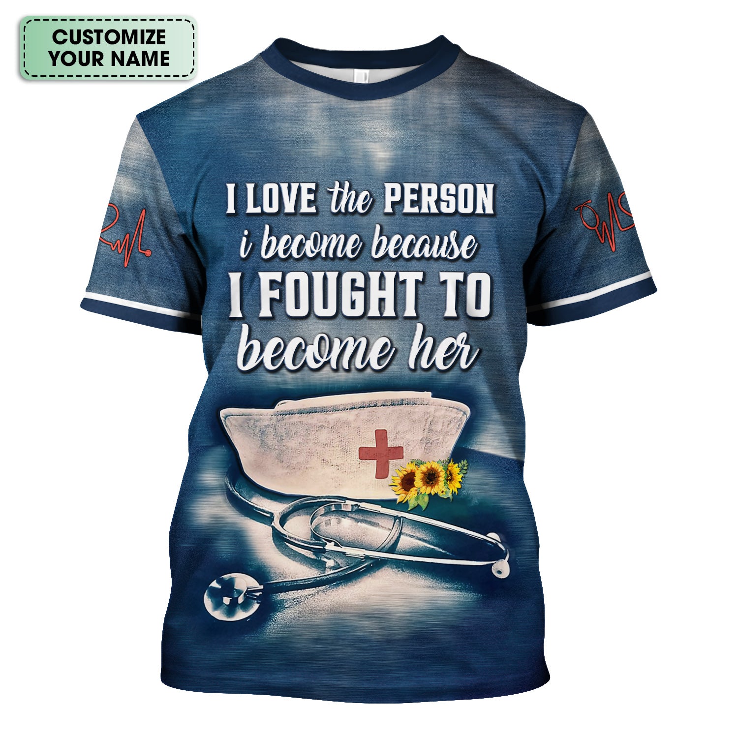 Personalized Inspirational RN Nurse Shirt - I Fought to Become Her Quote - Custom Name Gift for Registered Nurses CNA LPN
