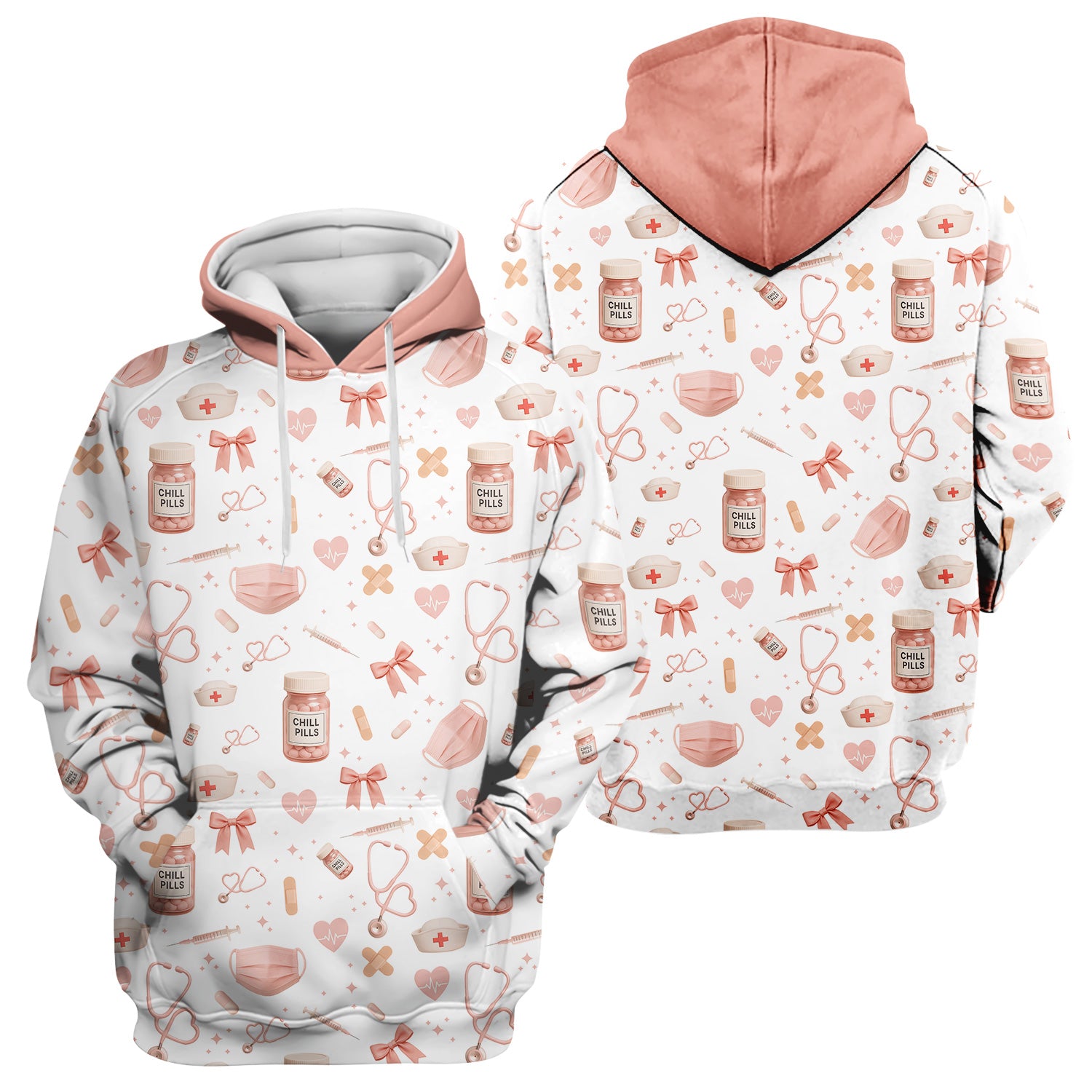 Personalized Kawaii Nurse T-Shirt - Funny Pink Medical Pattern Tee - Gift for RN LPN Nursing Student