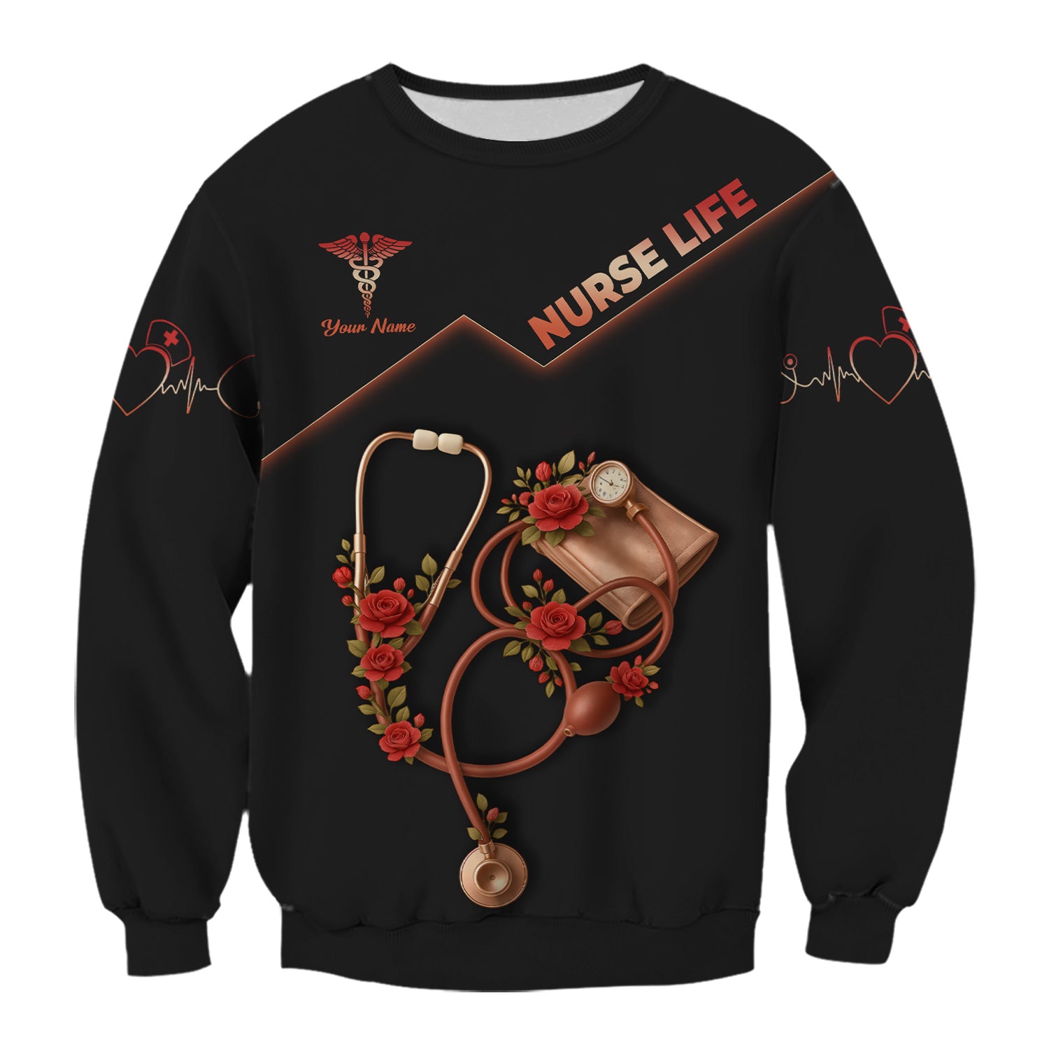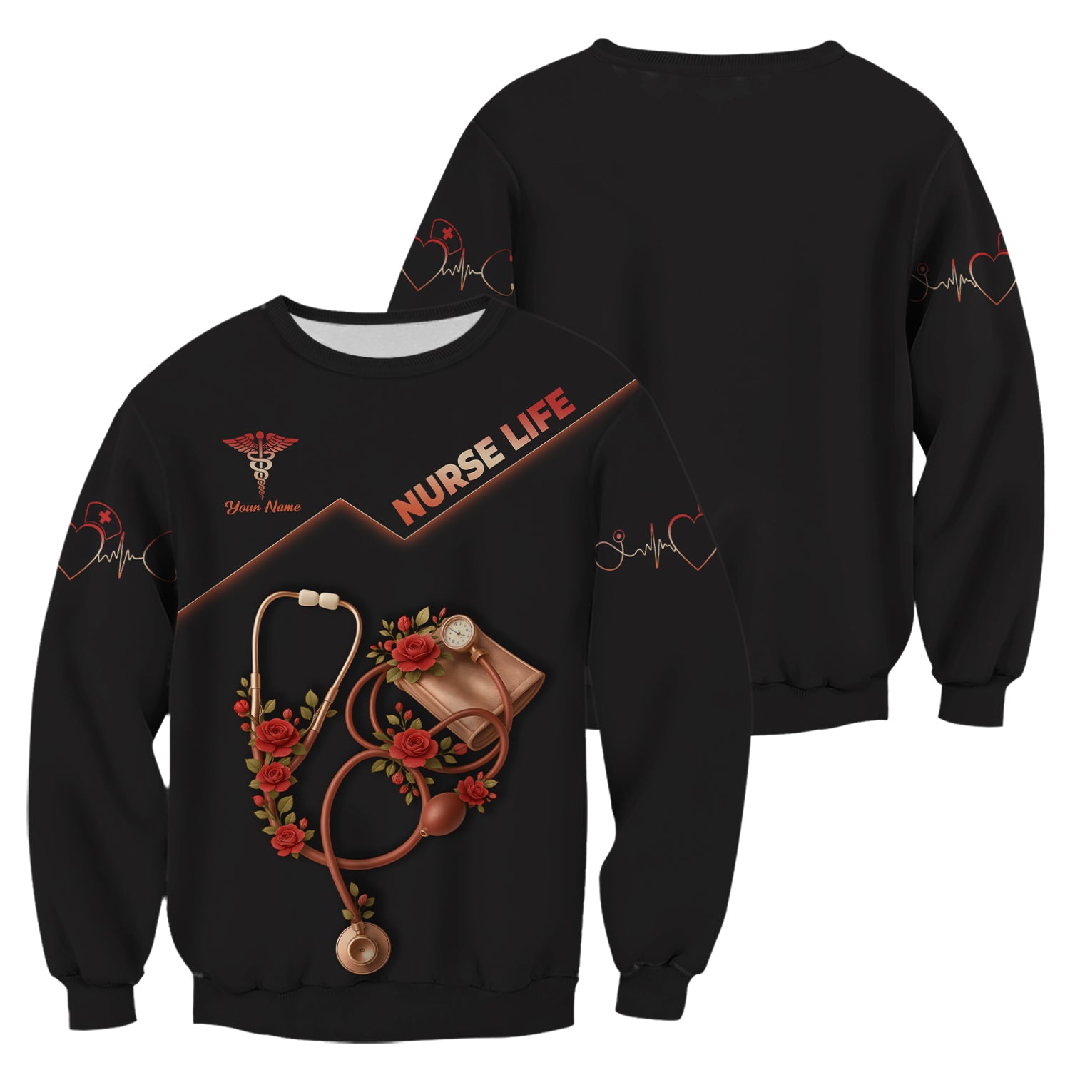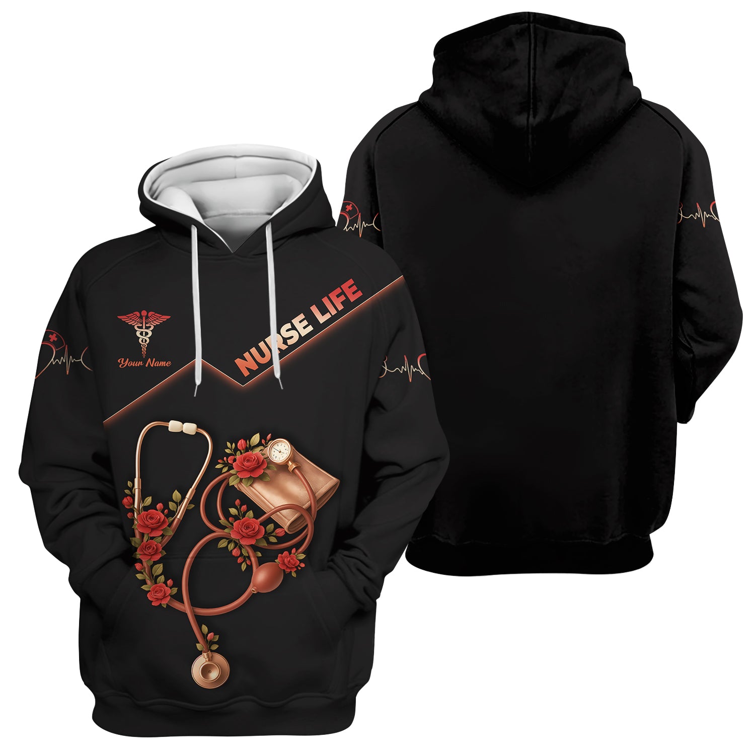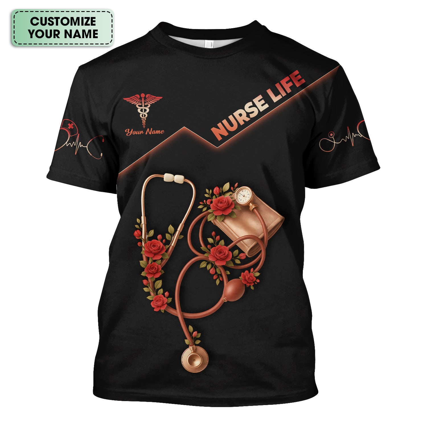 Personalized Nurse Life Shirt - Customizable Nursing Graphic Tee with Roses and Stethoscope - Gift for RN LPN CNA