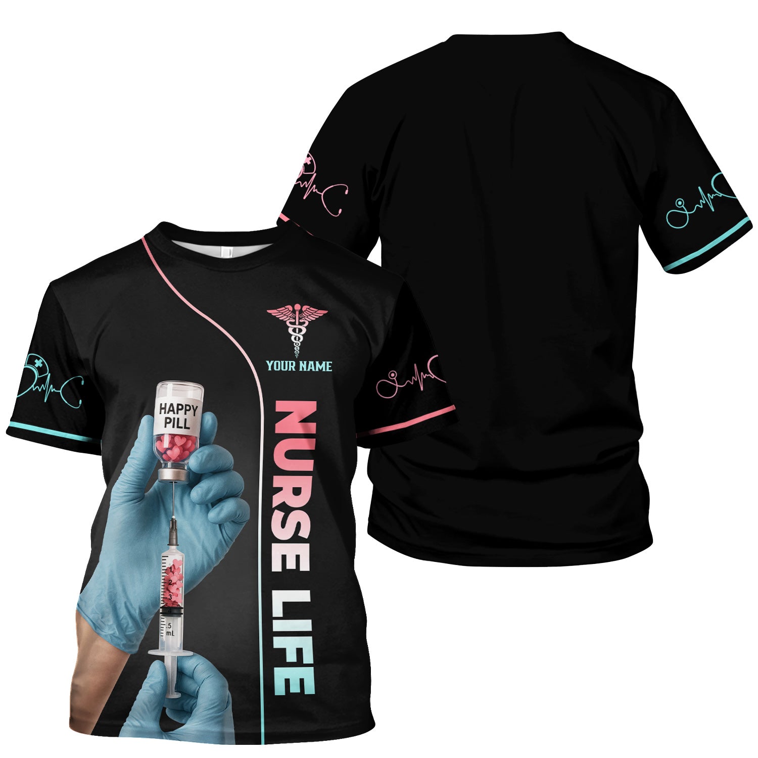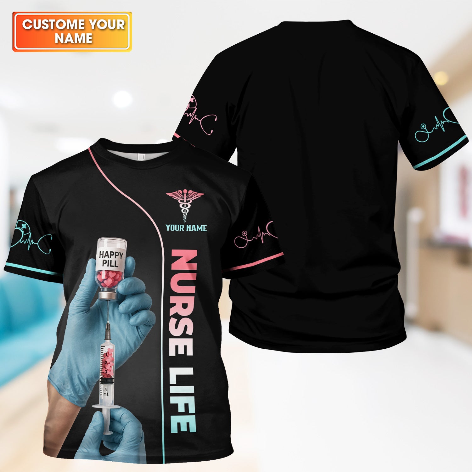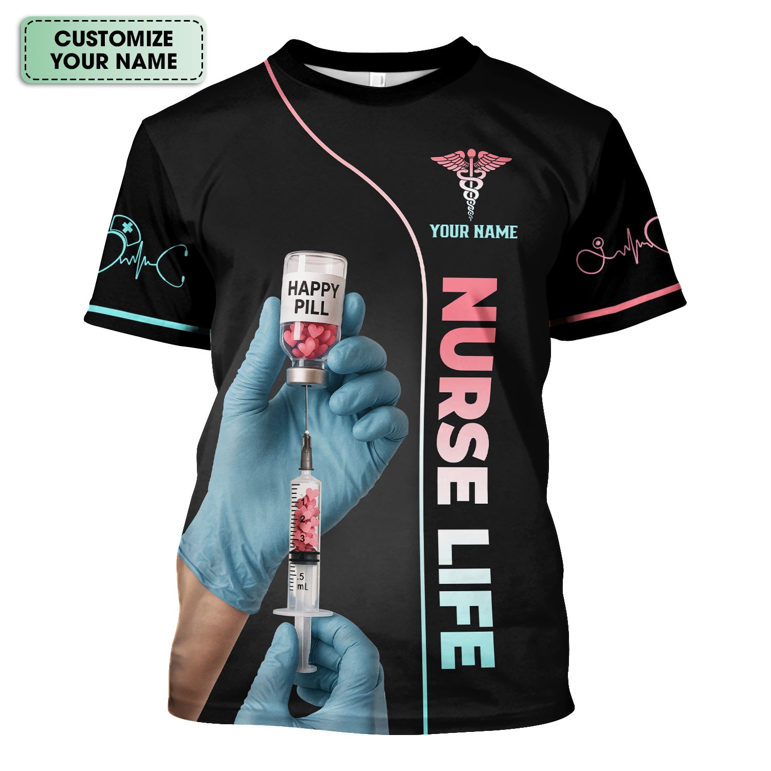 Personalized Nurse Life Shirt - Funny Happy Pill Graphic Tee for Nurses - Gift for Women RN CNA LPN