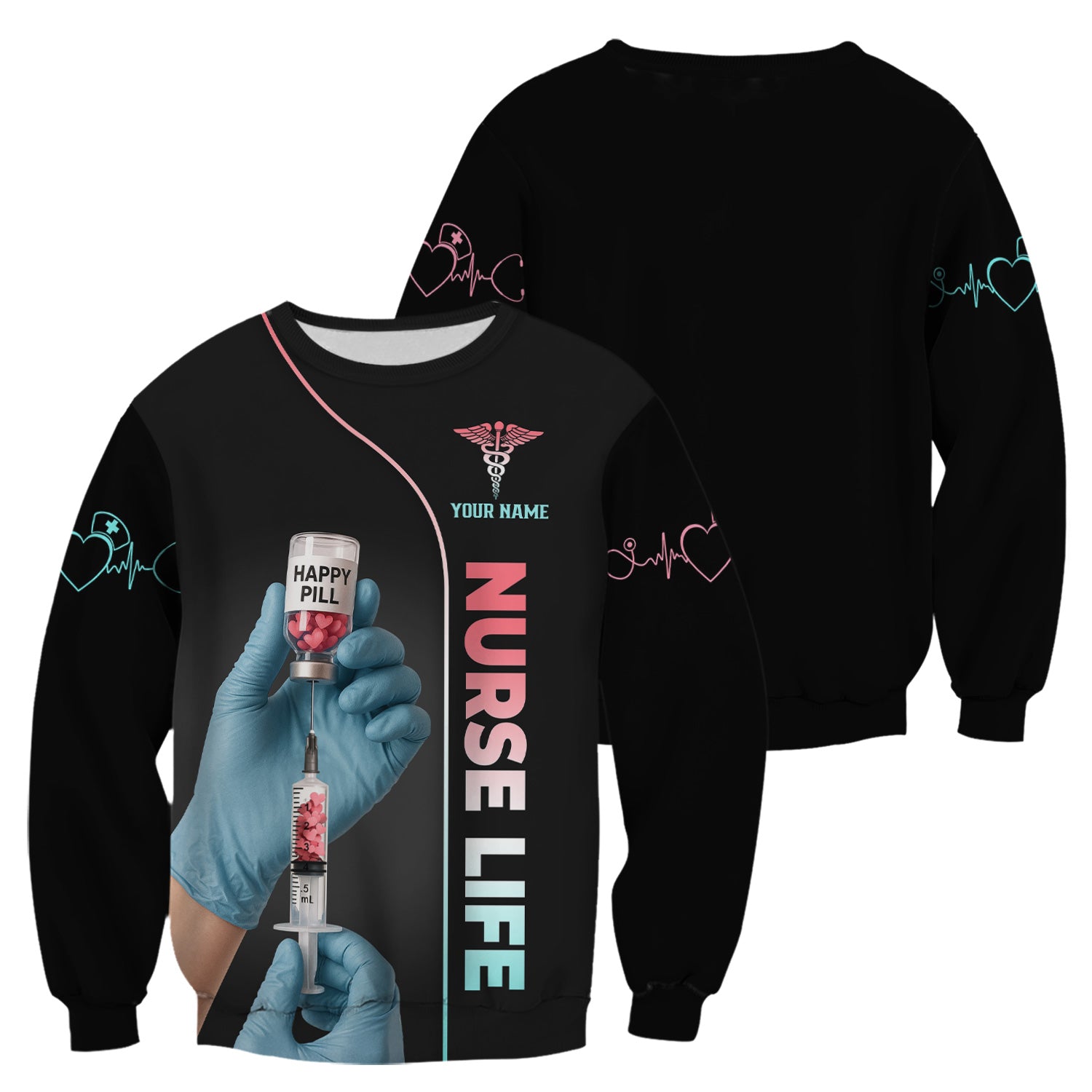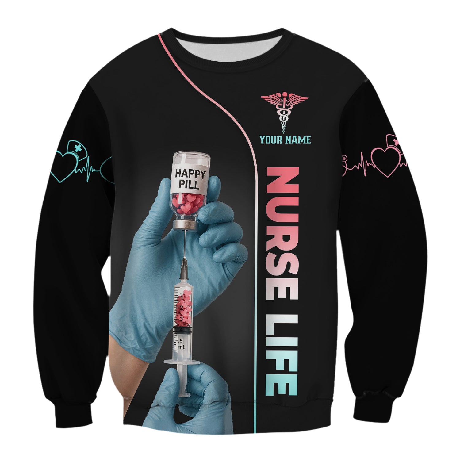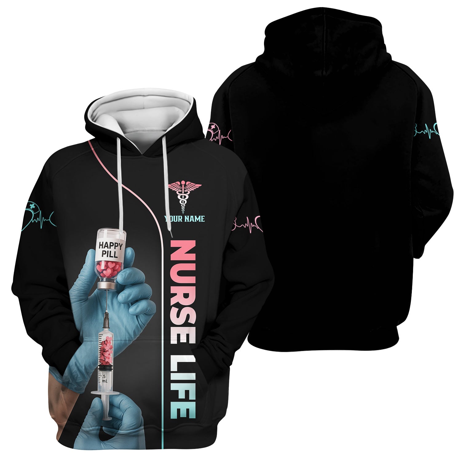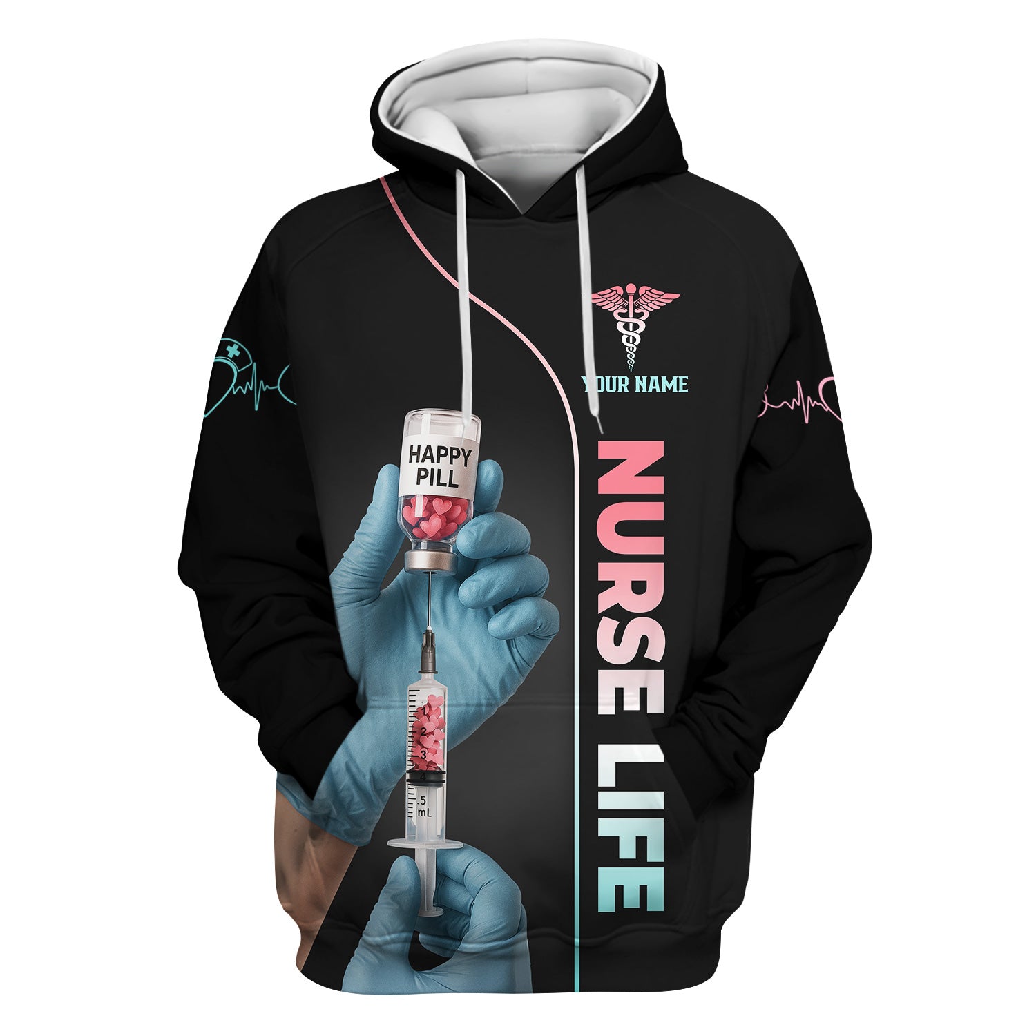 Personalized Nurse Life Shirt - Funny Happy Pill Graphic Tee for Nurses - Gift for Women RN CNA LPN